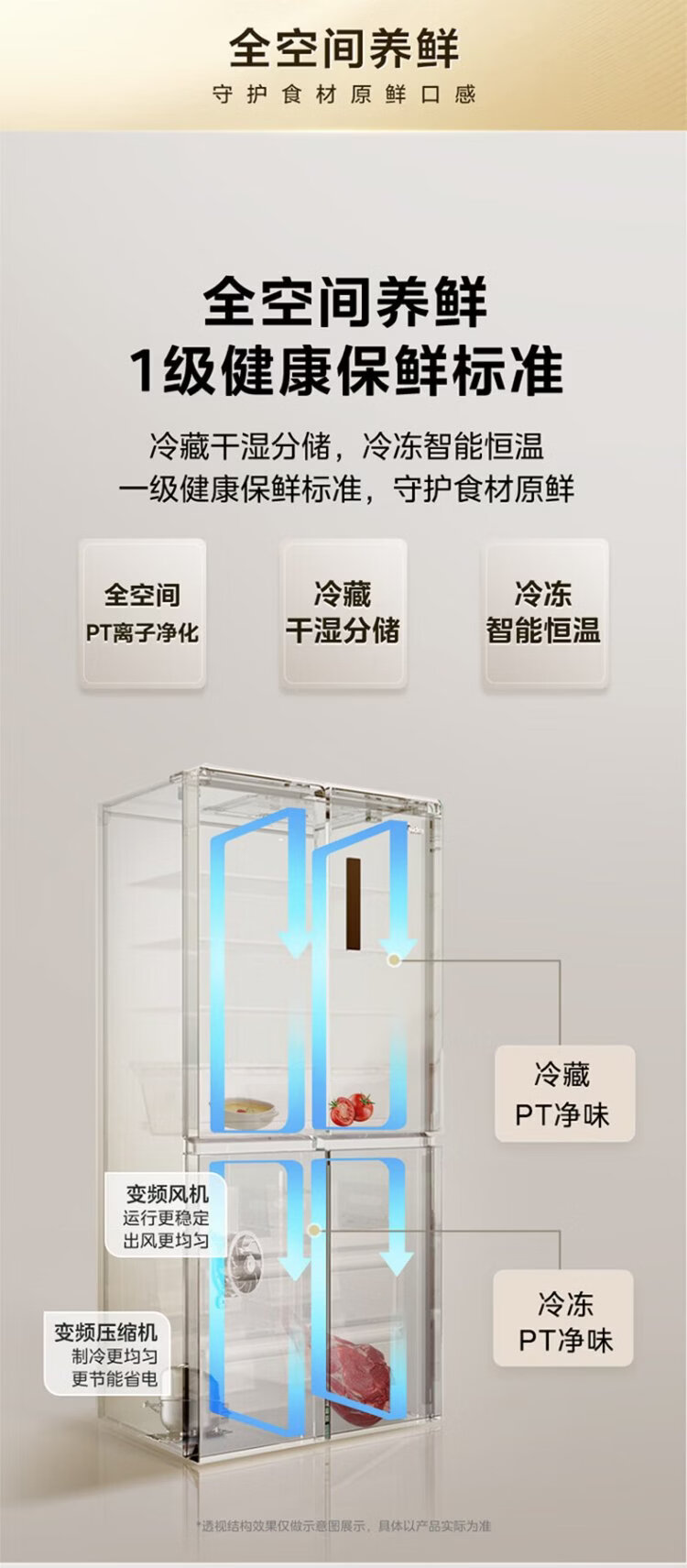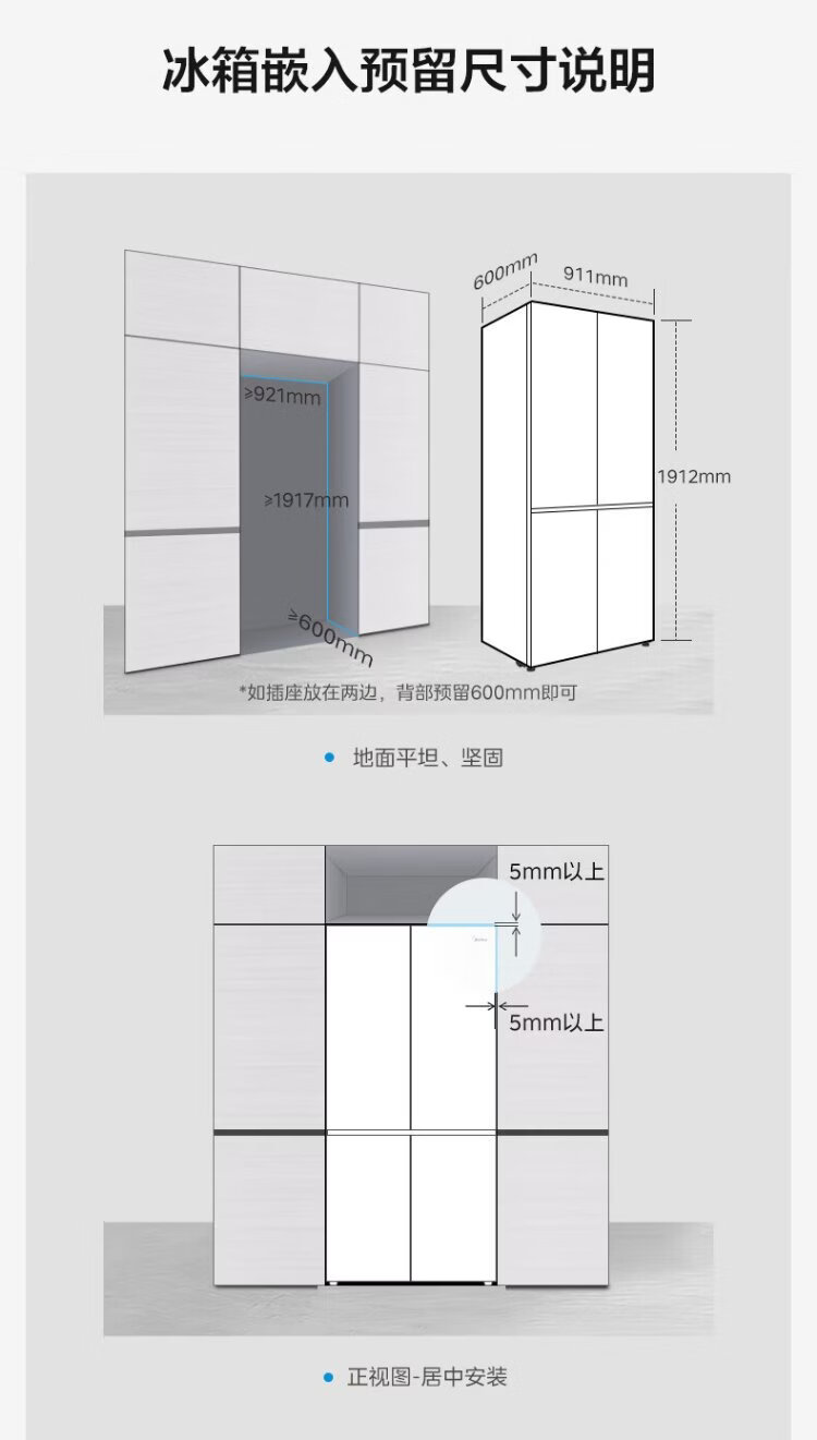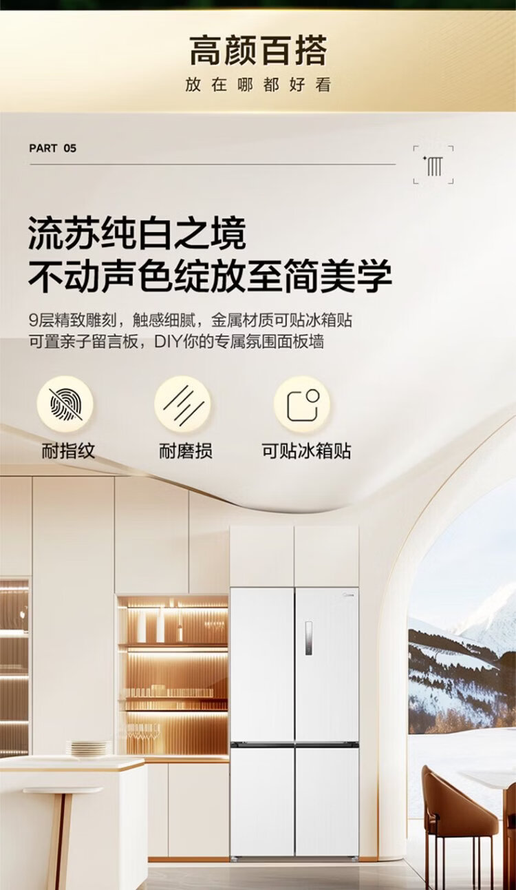 Midea 571 flat-screen fully embedded cross-fold four-door first-class energy-efficiency air-cooled frost-free bottom cooling large-capacity household refrigerator BCD-571WUSPZM (E) renewal subsidy