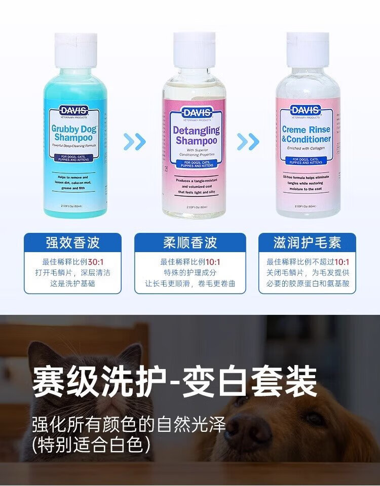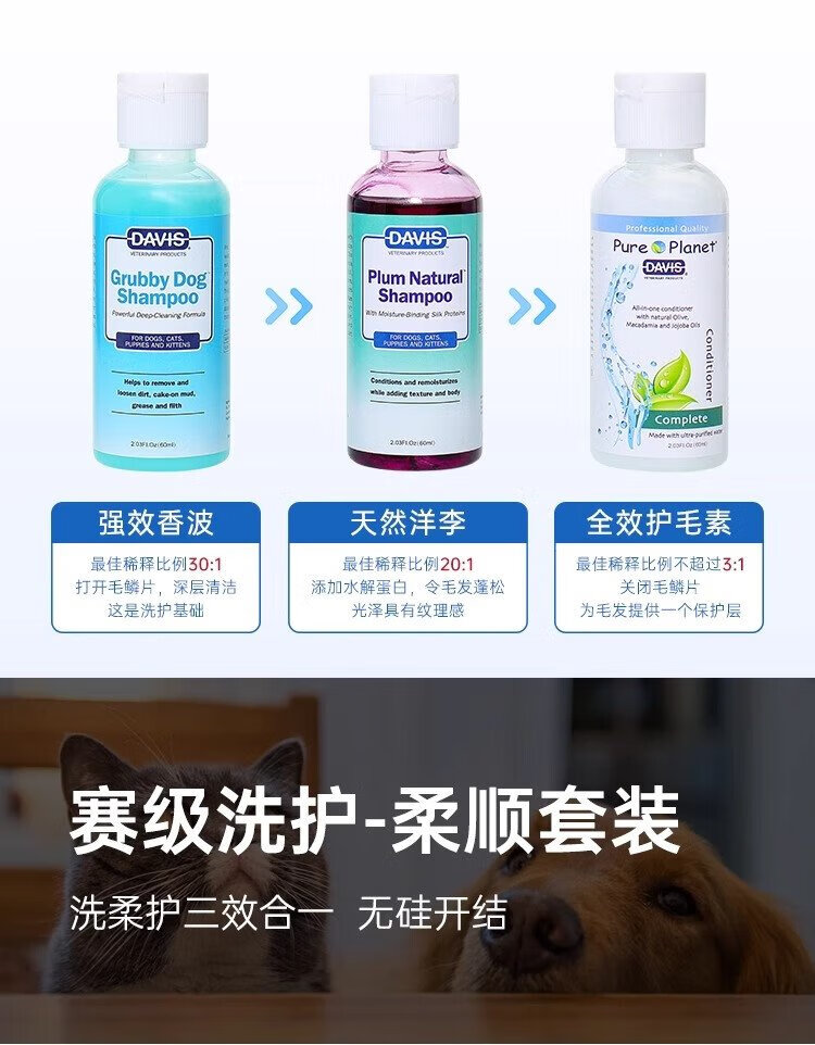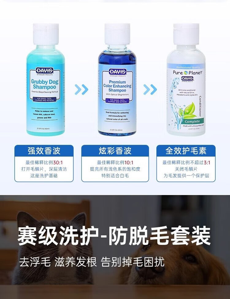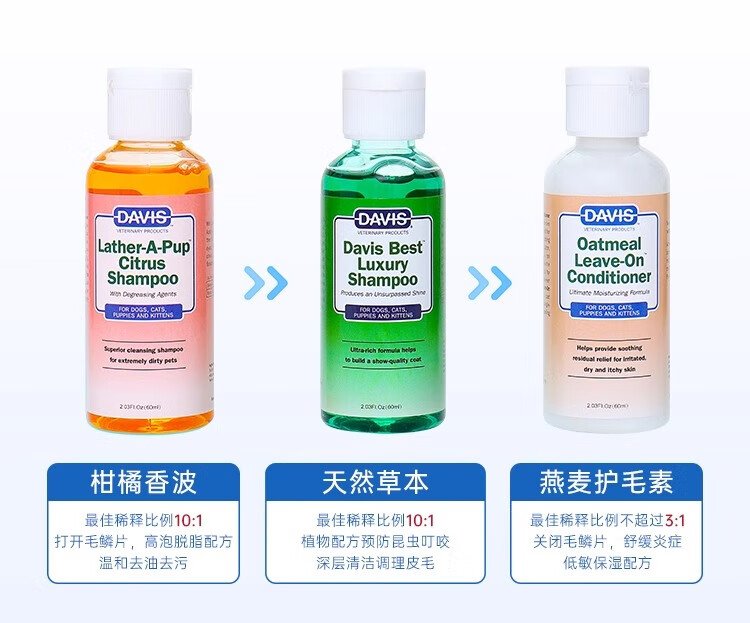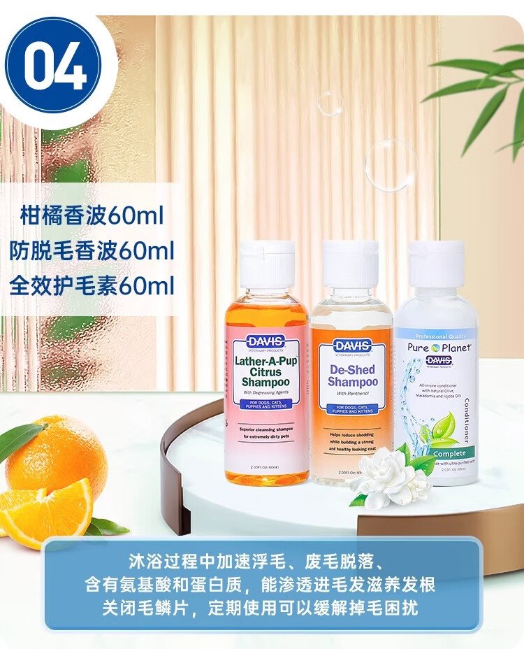 DAVIS Davis Pets Oil Cleansing Travel Size Dog and Cat Shower Gel Conditioner Bath 2 Bottles 60ml