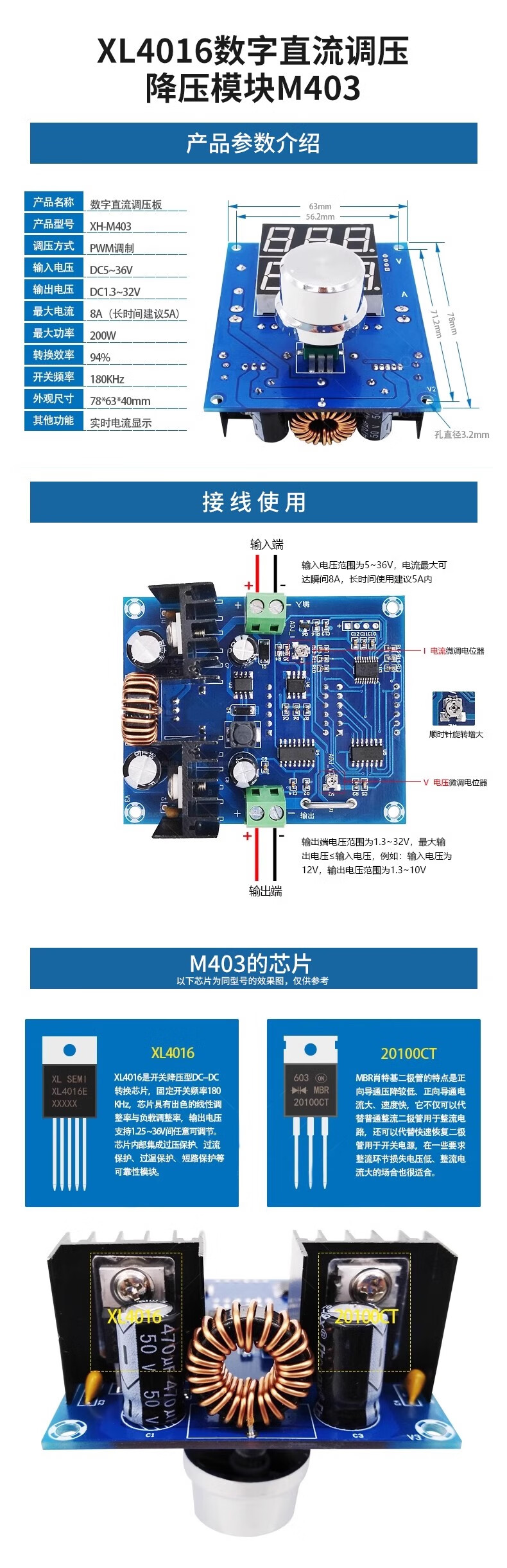 Qidi XL4016E1 step-down module with digital display 8A with voltage stabilization and step-down module DC-DC high-power DC voltage regulator board XL4016 digital DC voltage regulator and step-down module M403