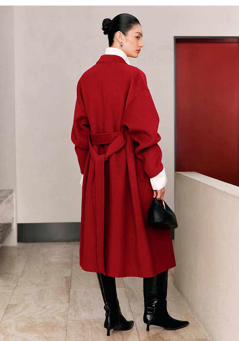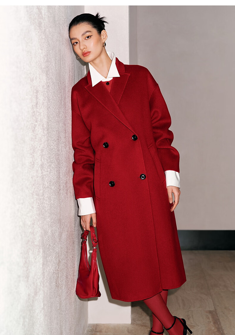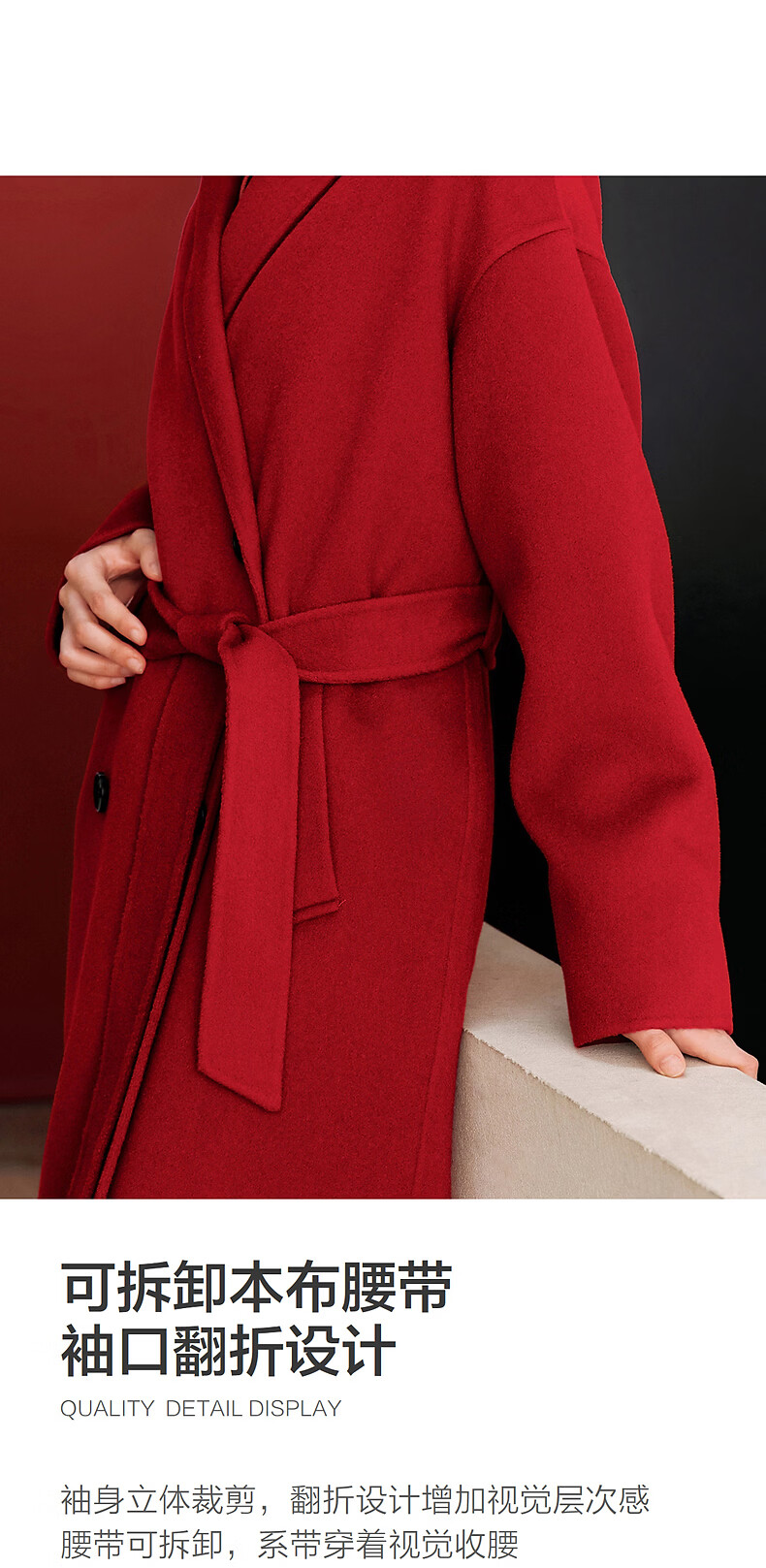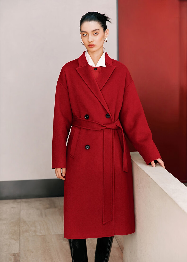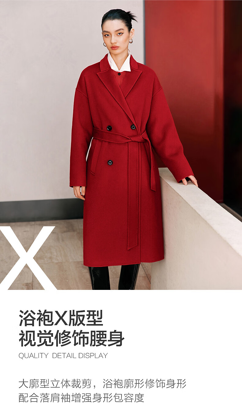 PEACEBIRD Women's Woolen Coat Zhenmao Series Classic Bathrobe Style Coat Jacket Fashion Red M