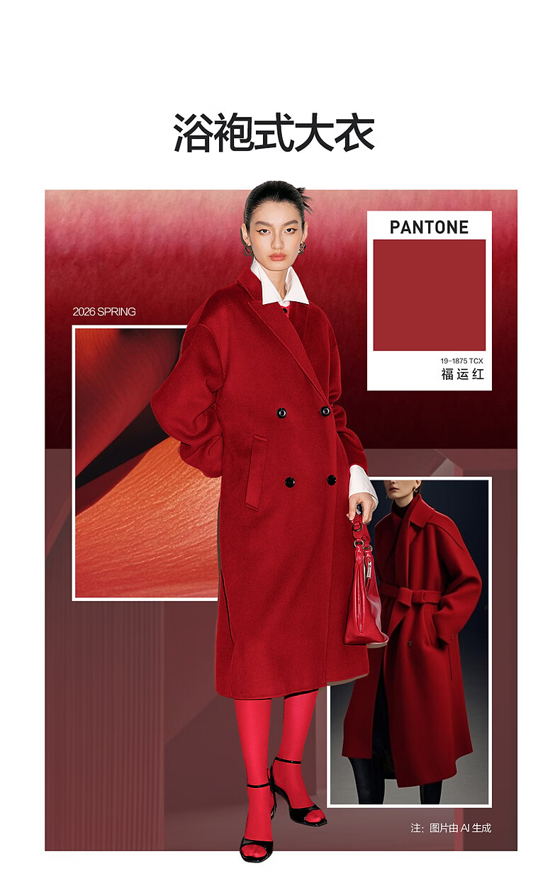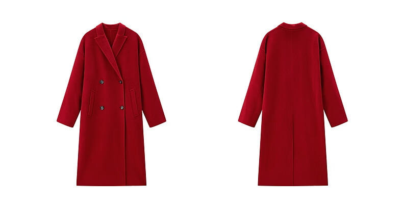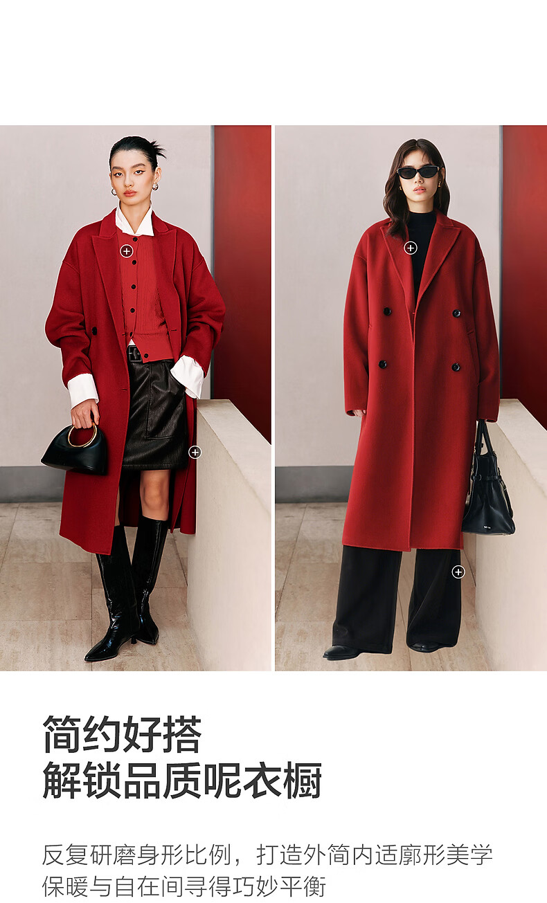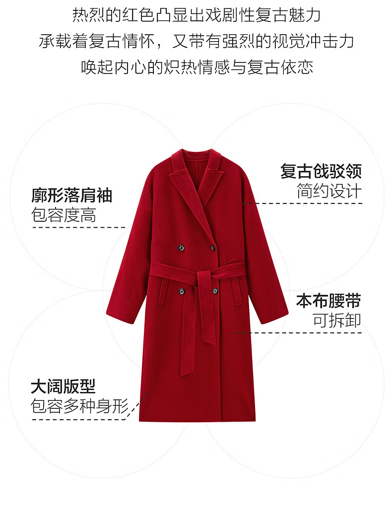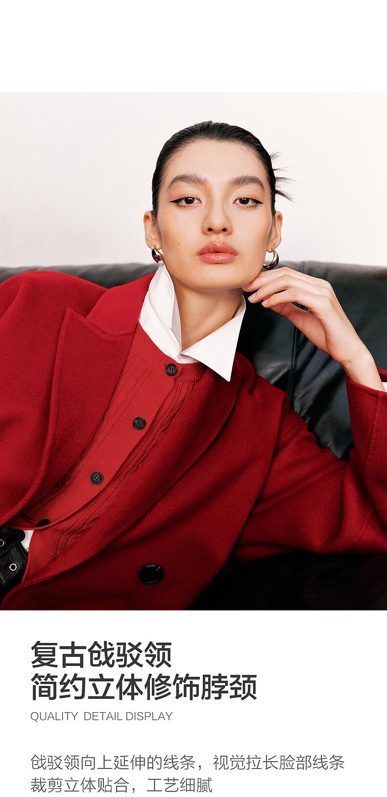 PEACEBIRD Women's Woolen Coat Zhenmao Series Classic Bathrobe Style Coat Jacket Fashion Red M
