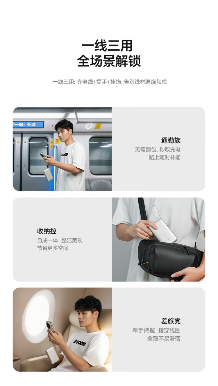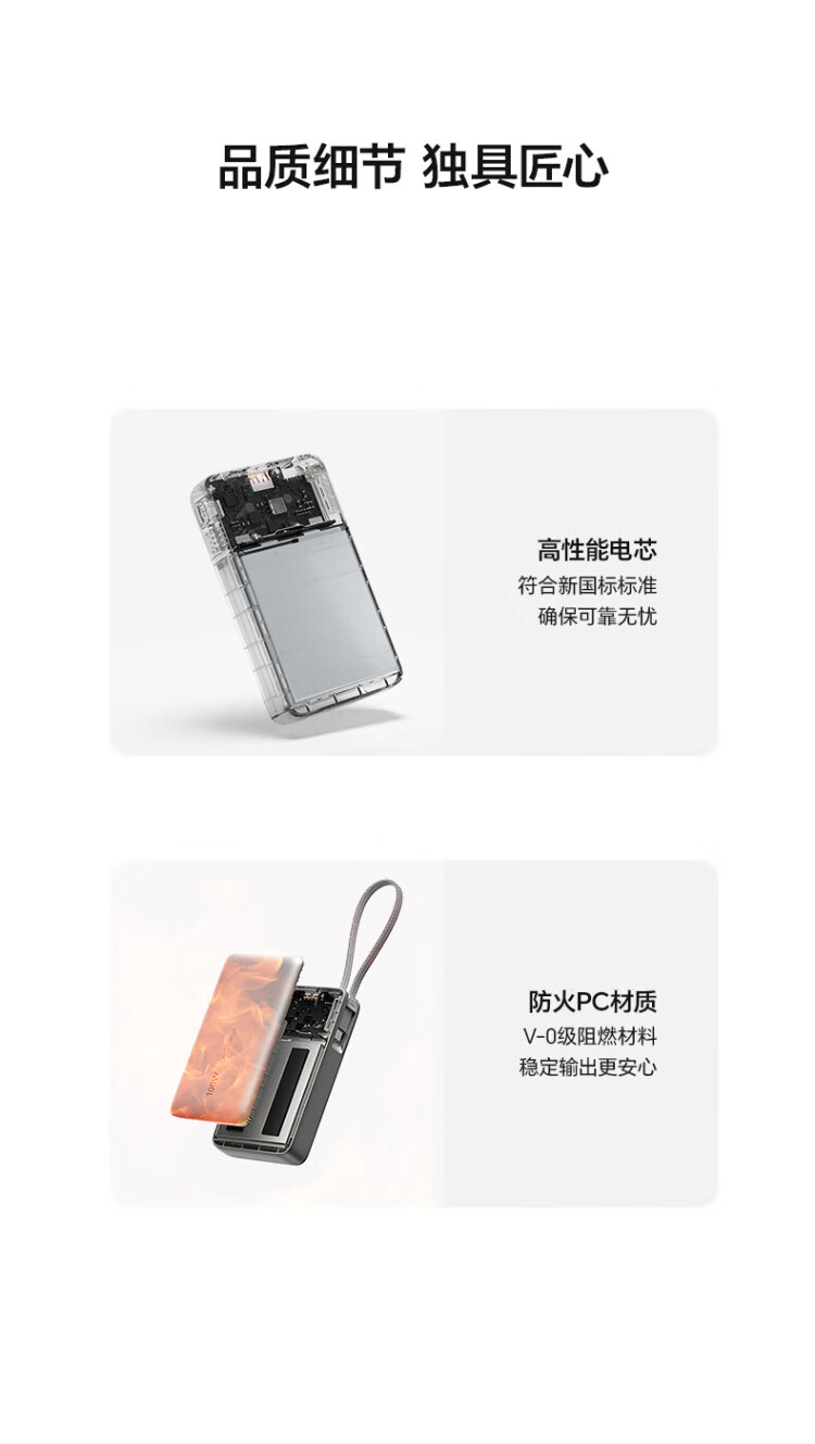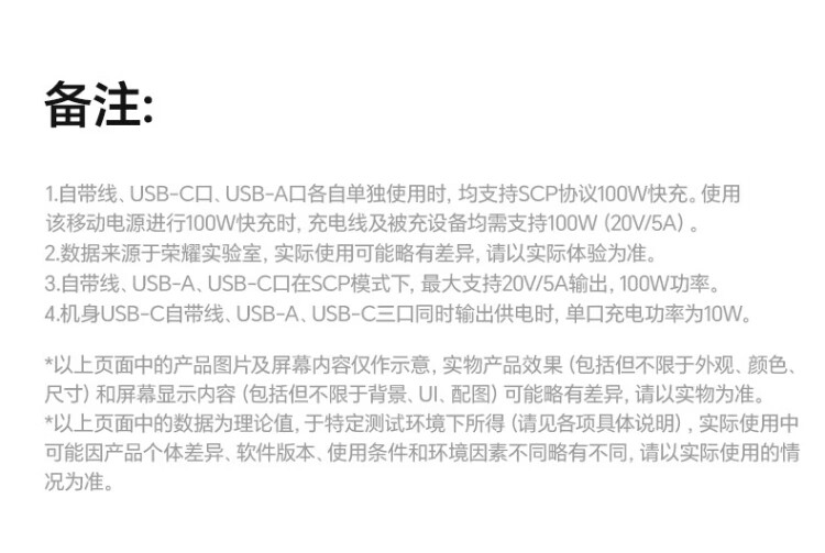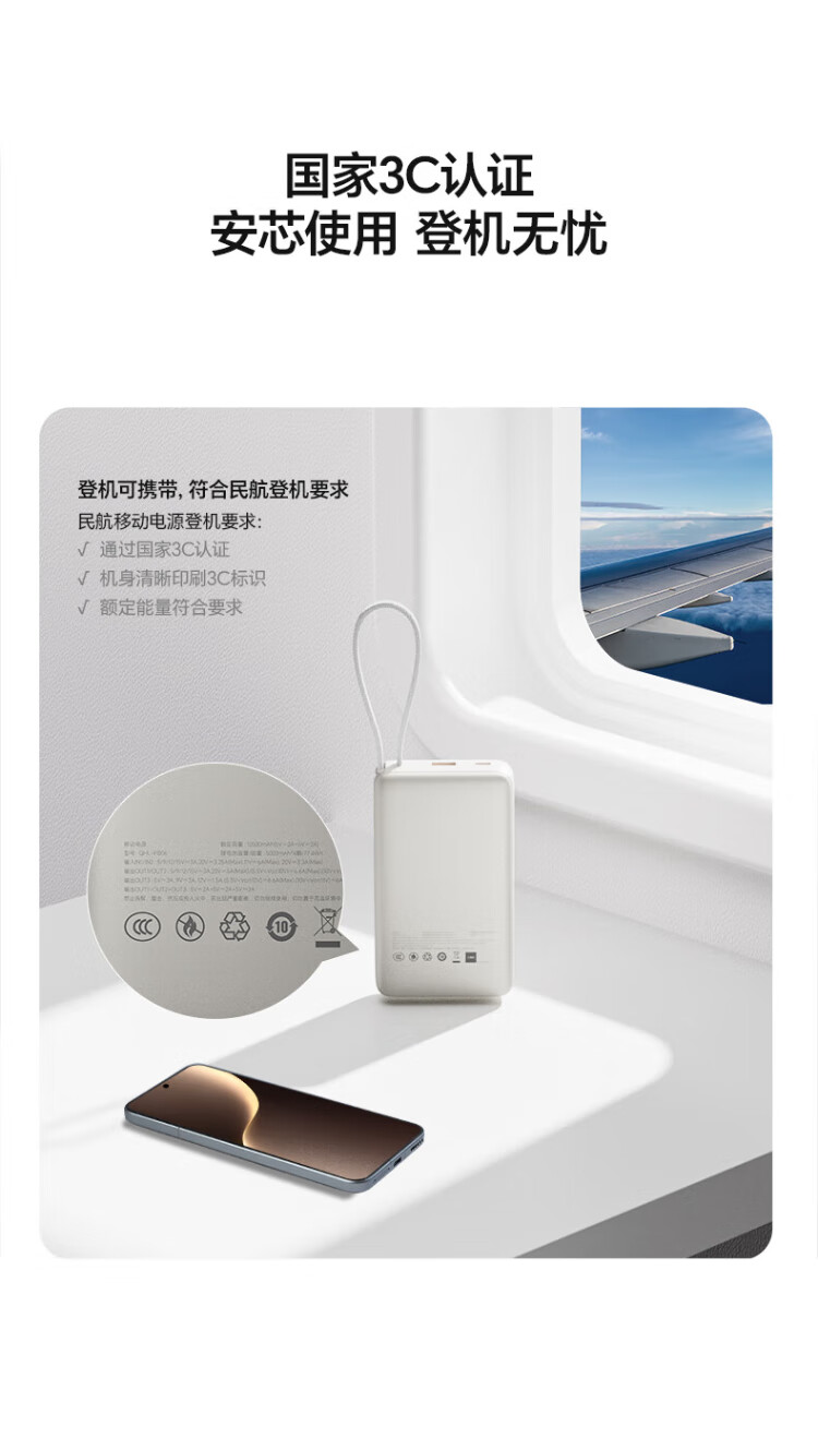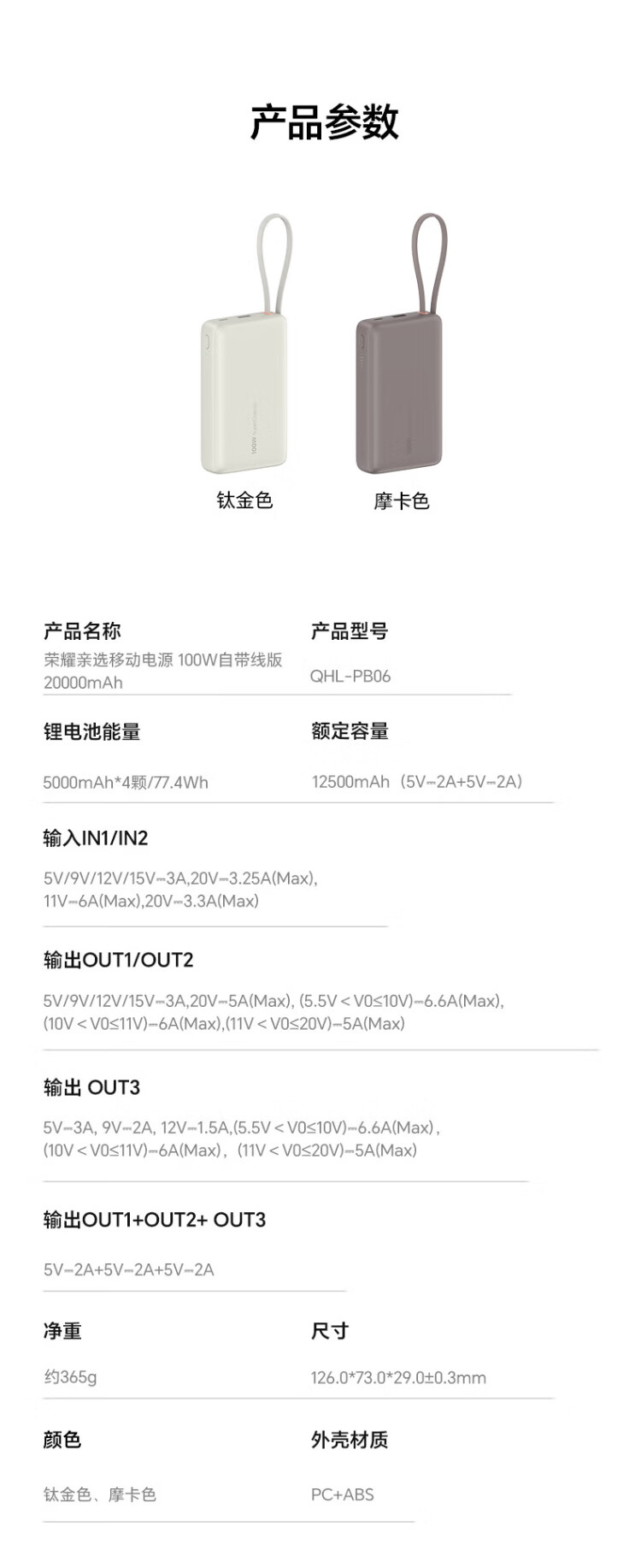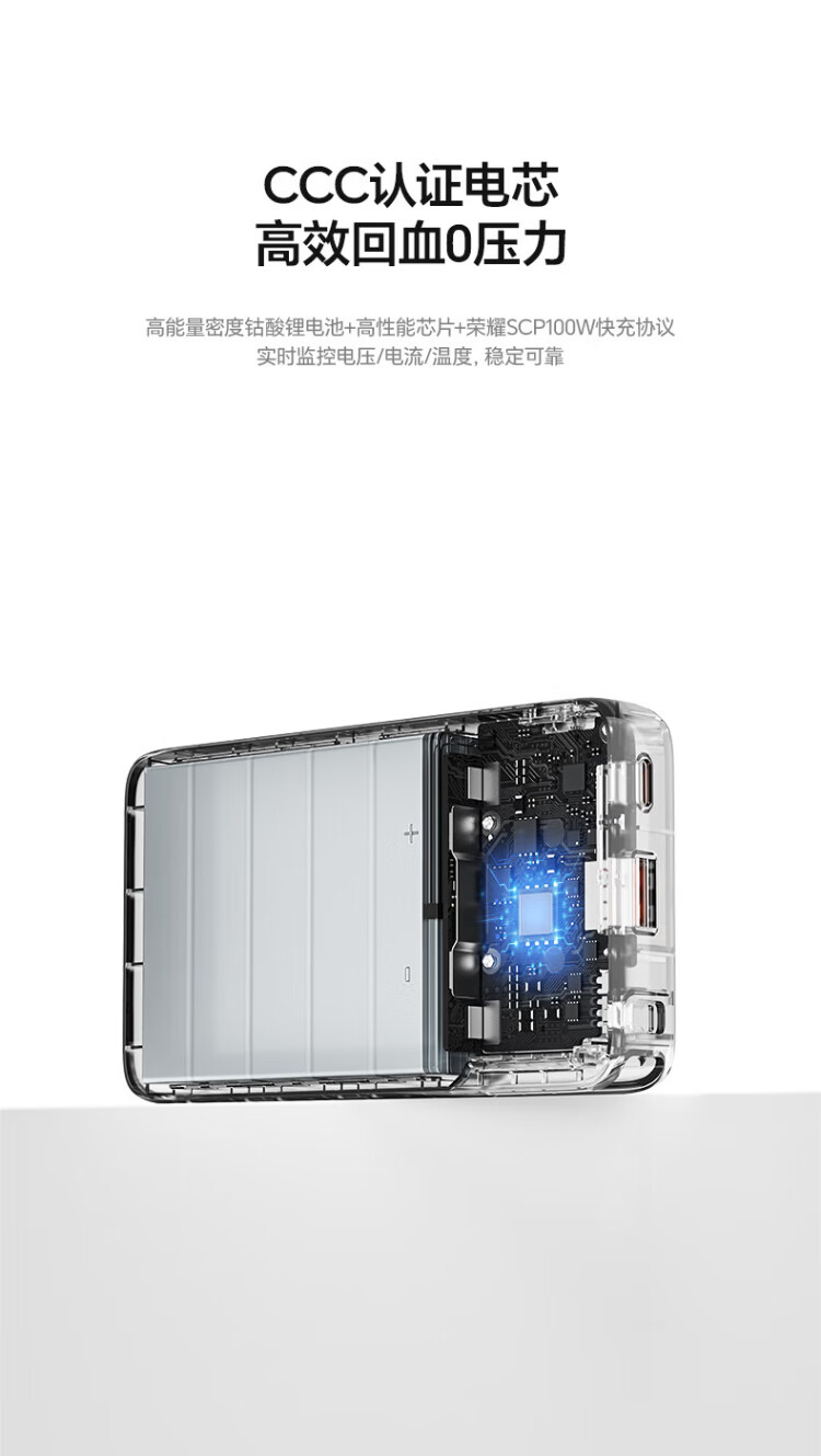 Honor personally selected power bank 100W with built-in cable version 20000mAh 3C certified, can be used on airplanes, can charge Honor Huawei, Apple phones and tablets, two-way fast charging, titanium gold