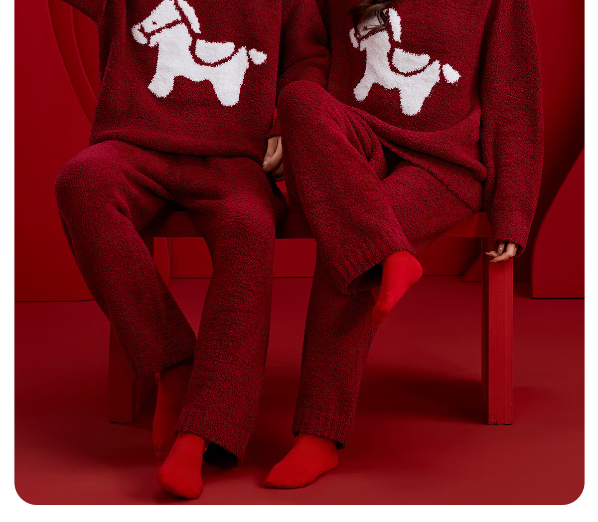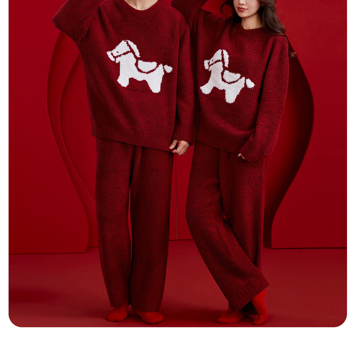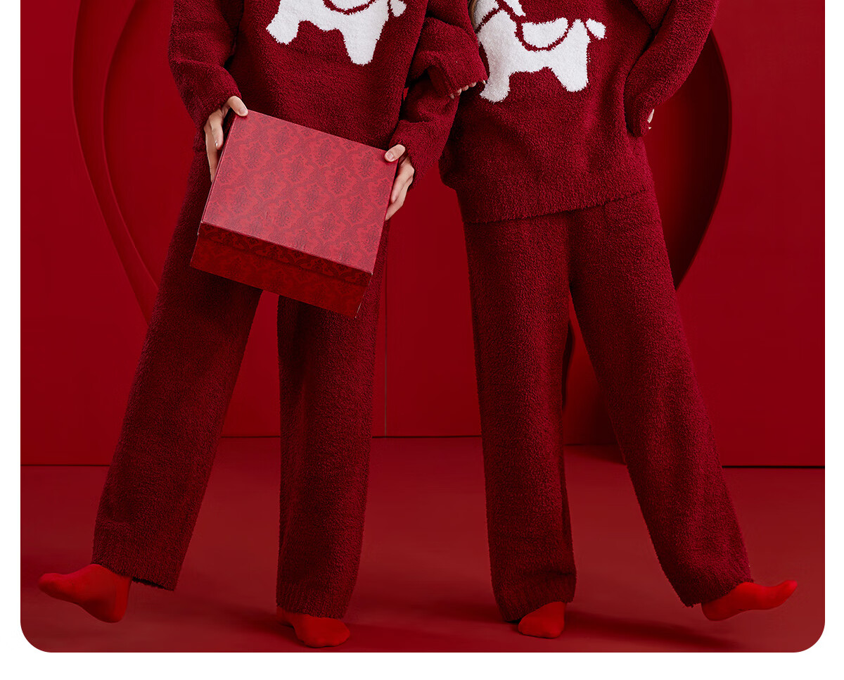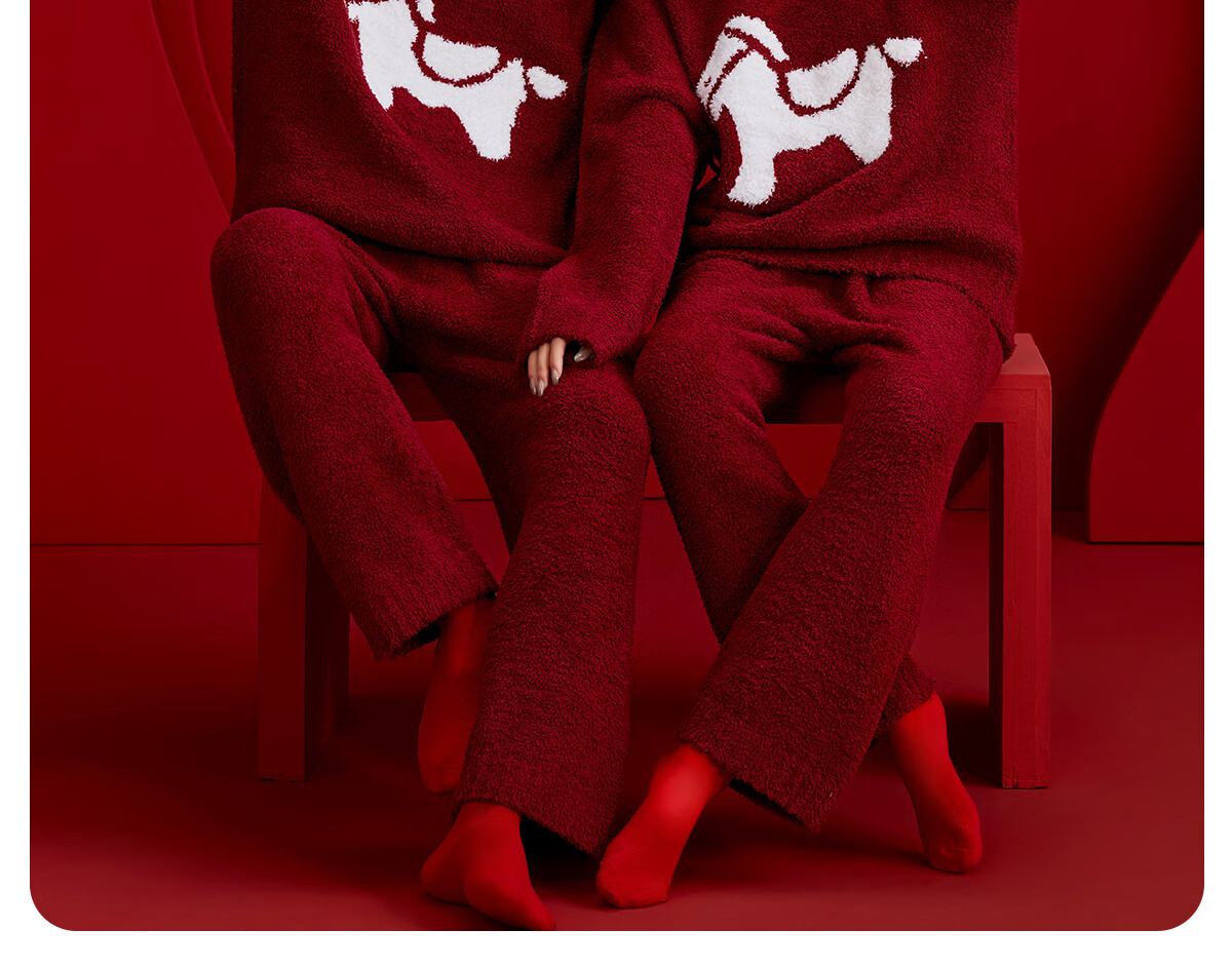 Langsha zodiac year couple pajamas autumn and winter men and women long-sleeved new year red half-velvet wedding home wear set for the year of the horse