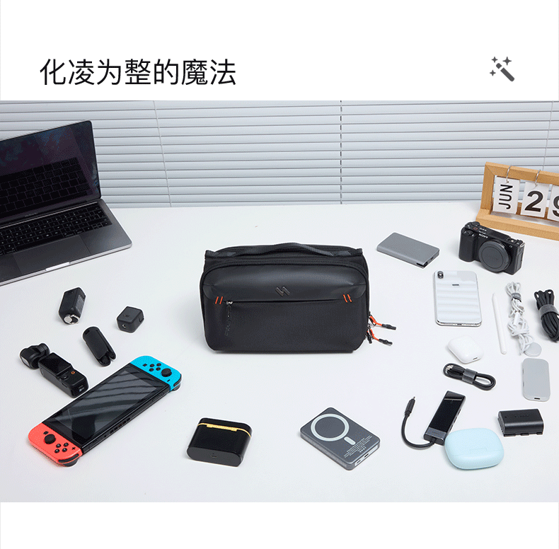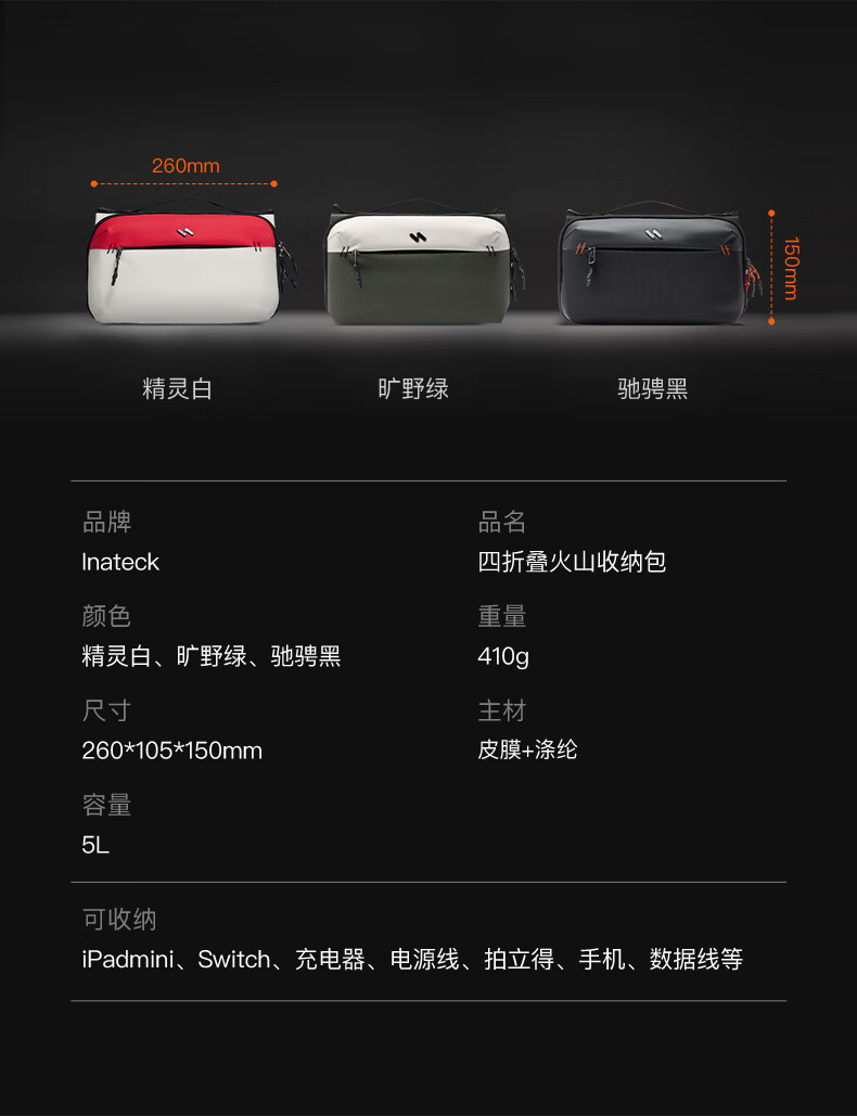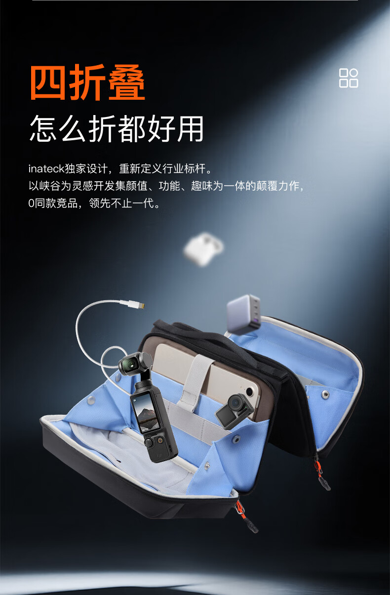 Inateck four-fold volcano storage bag digital accessories data cable desktop accessories storage bag galloping black free shoulder strap