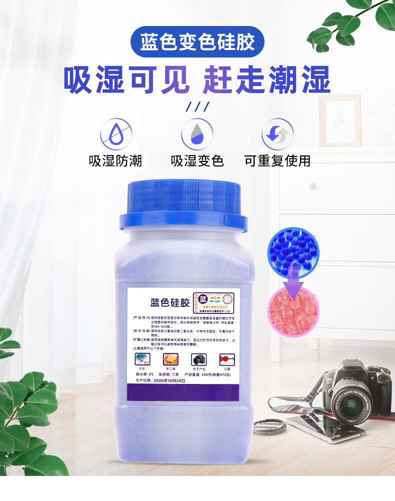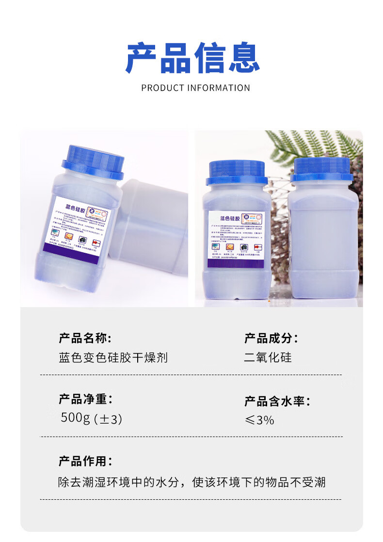 Lesanhao industrial desiccant dehumidification and moisture-proof blue color-changing silica gel particle desiccant reusable bottle 500g