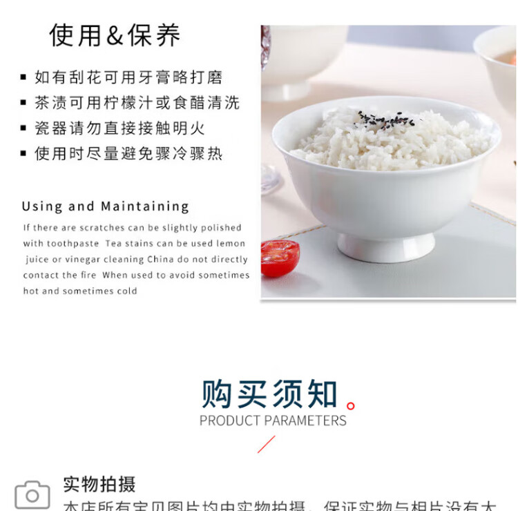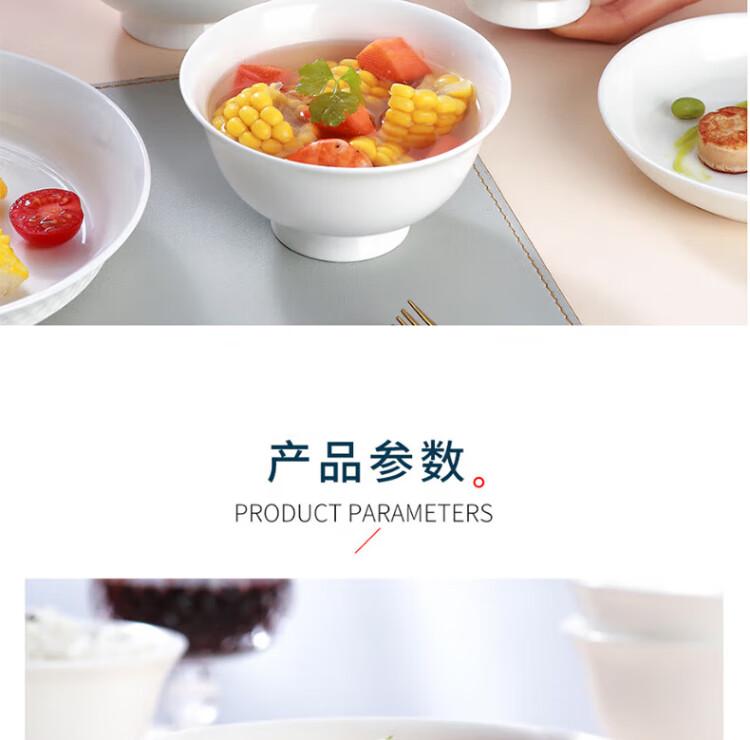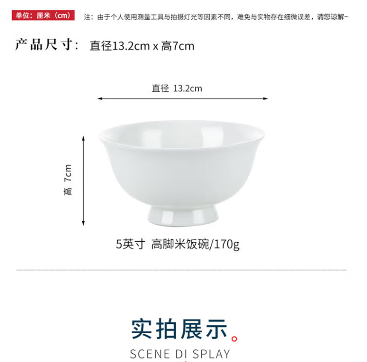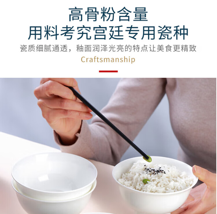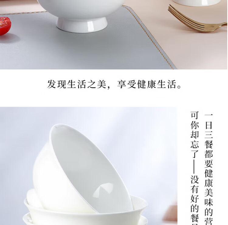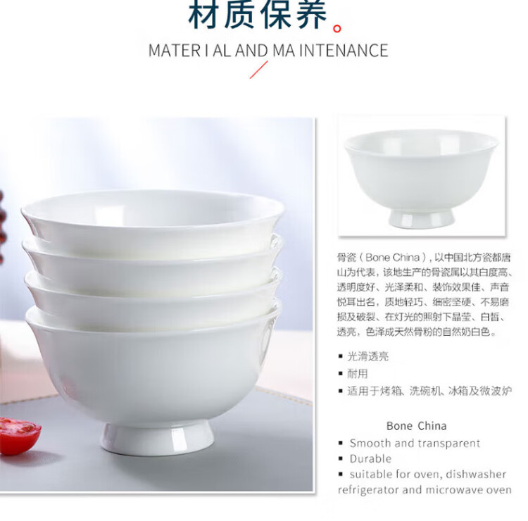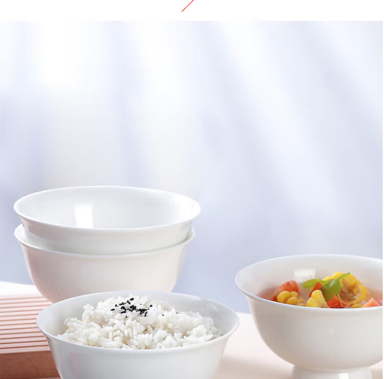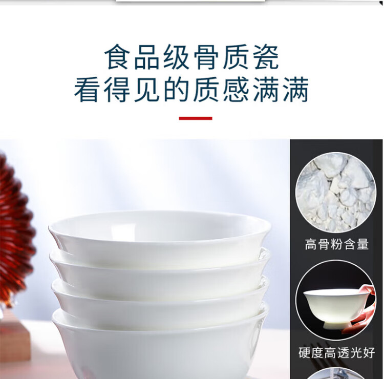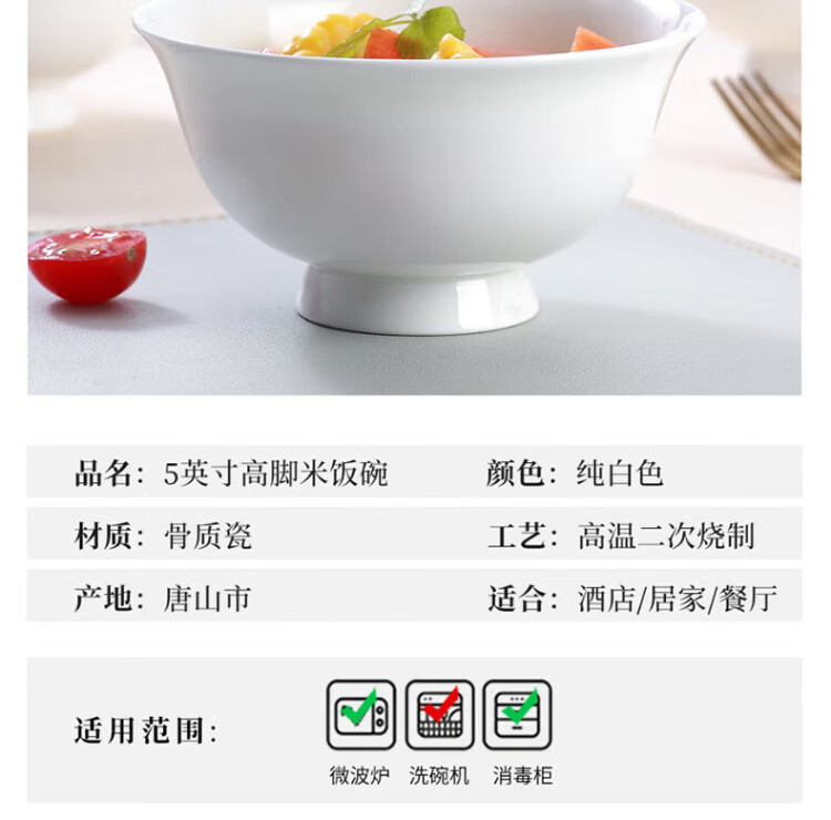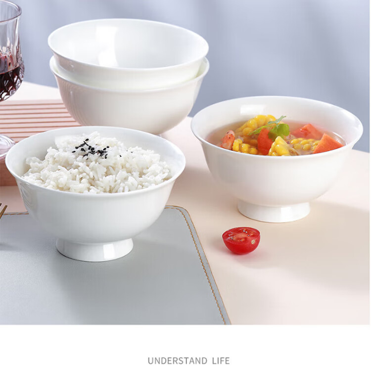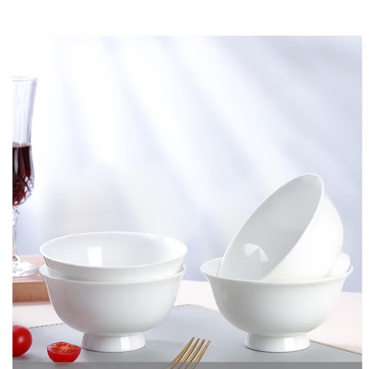 Sky Top rice bowl ceramic pure white bone china rice bowl soup bowl anti-scalding tall noodle bowl home hotel tableware 5 inches 4 pieces
