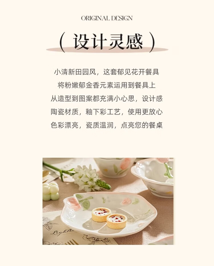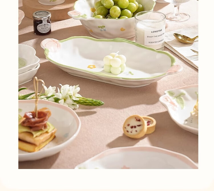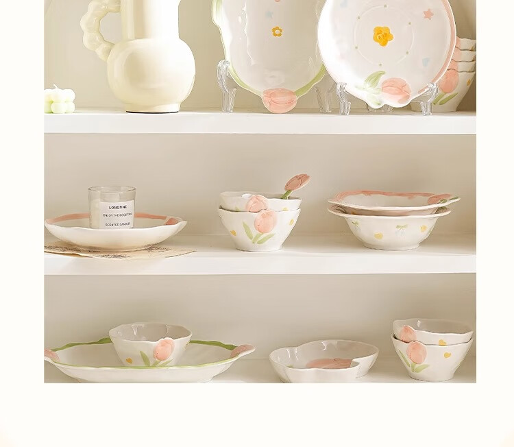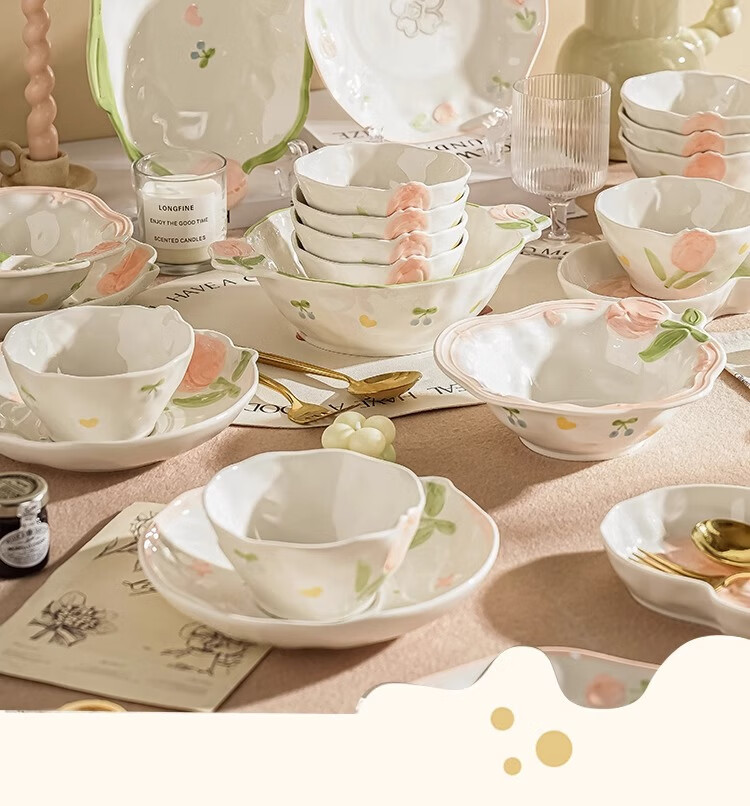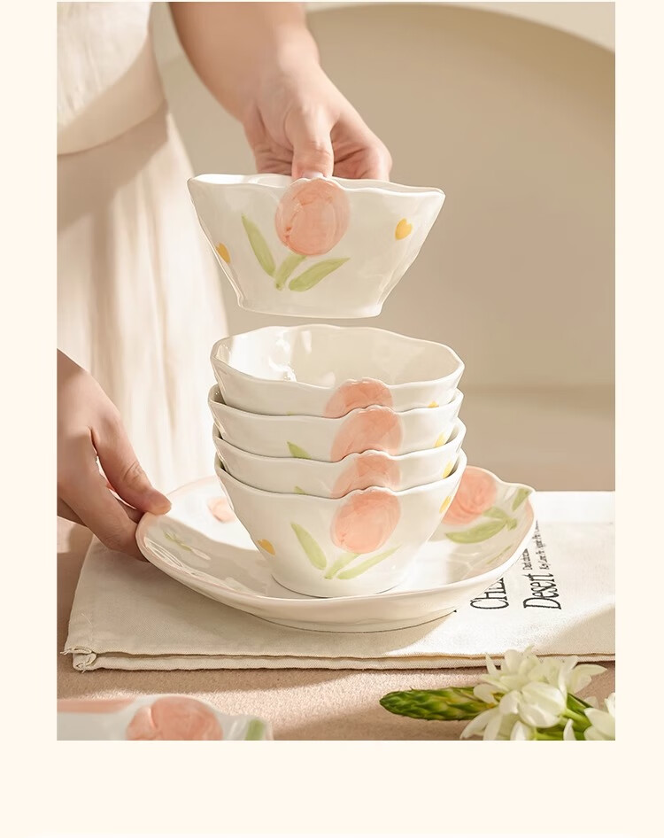 Persson small fresh bowls, plates, tableware, household ceramics, embossed tulip housewarming gift, 17-piece gift box