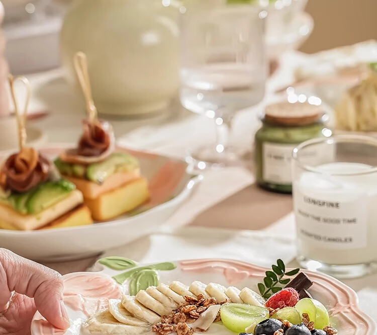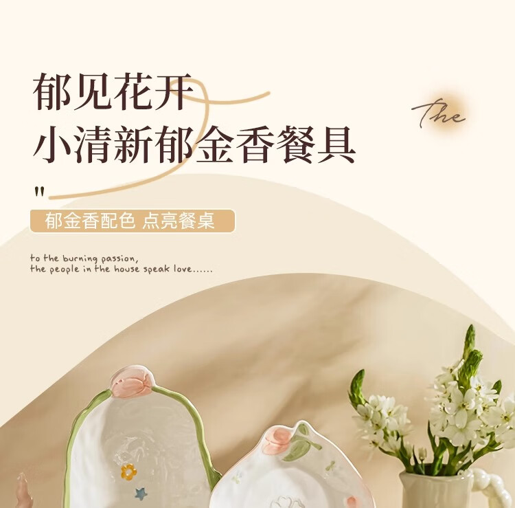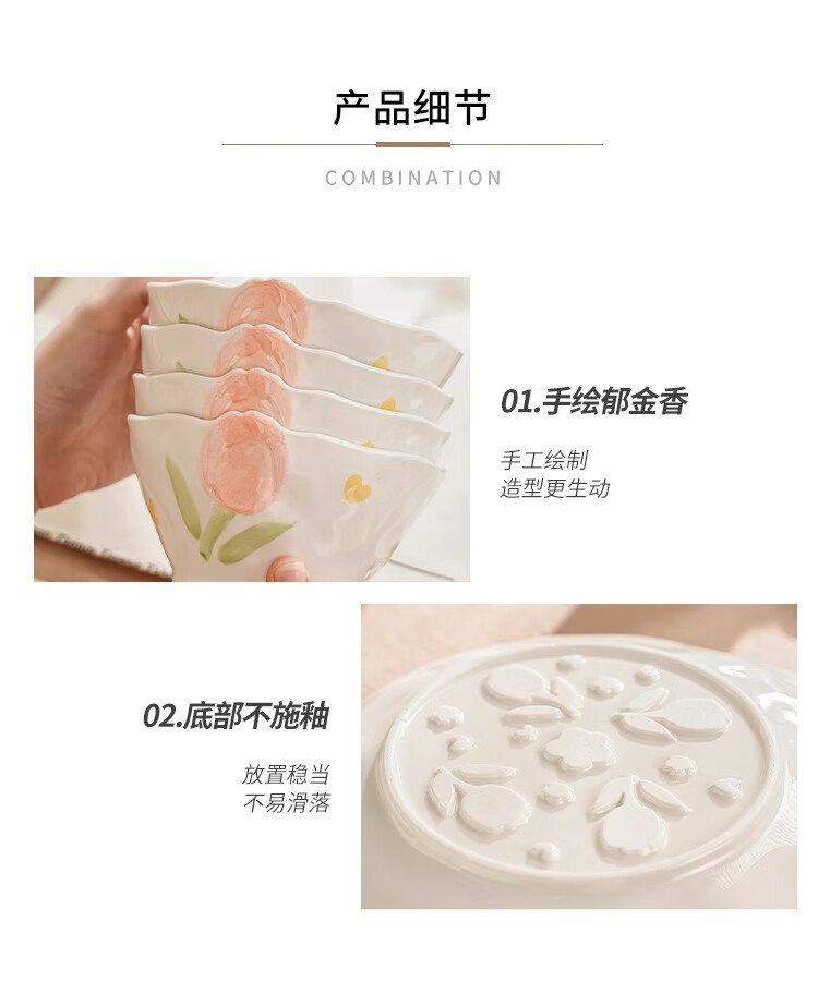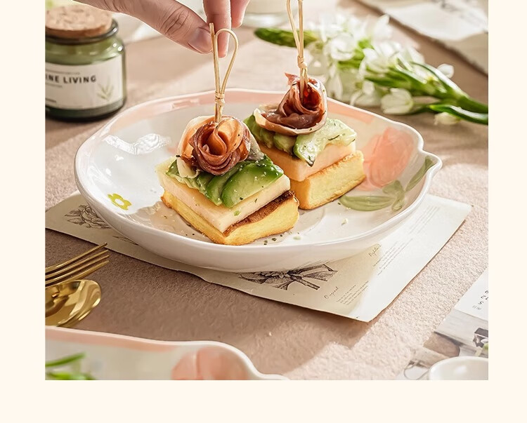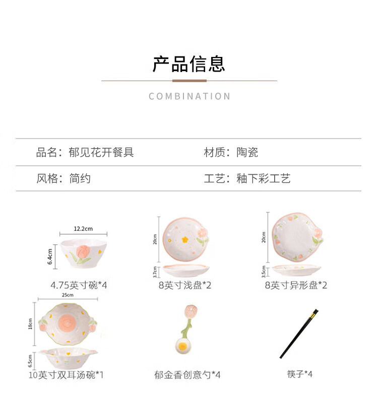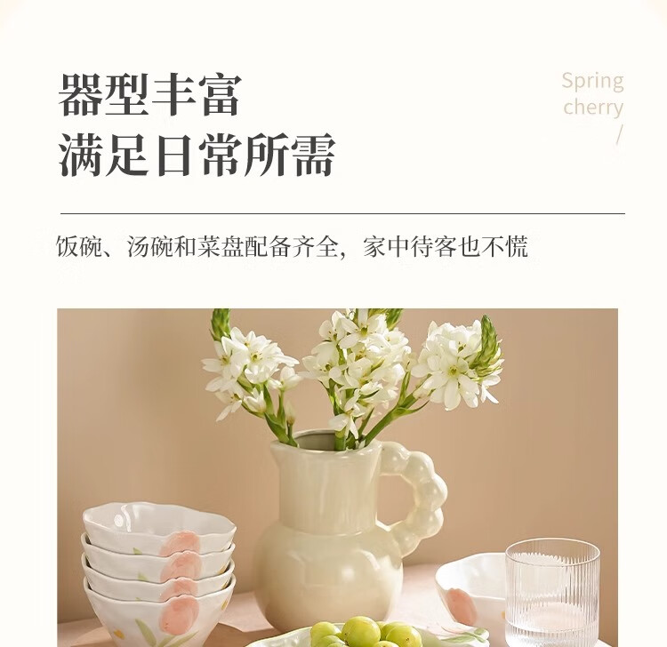 Persson small fresh bowls, plates, tableware, household ceramics, embossed tulip housewarming gift, 17-piece gift box