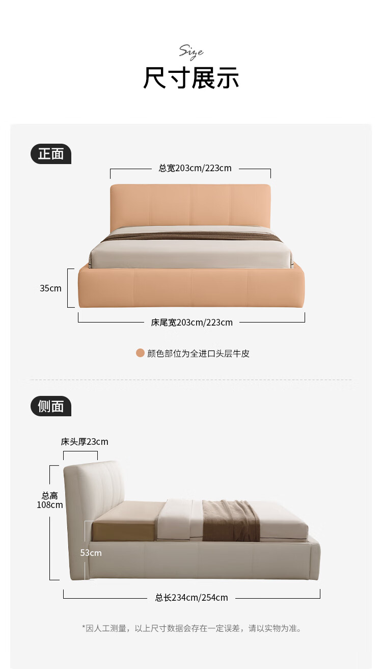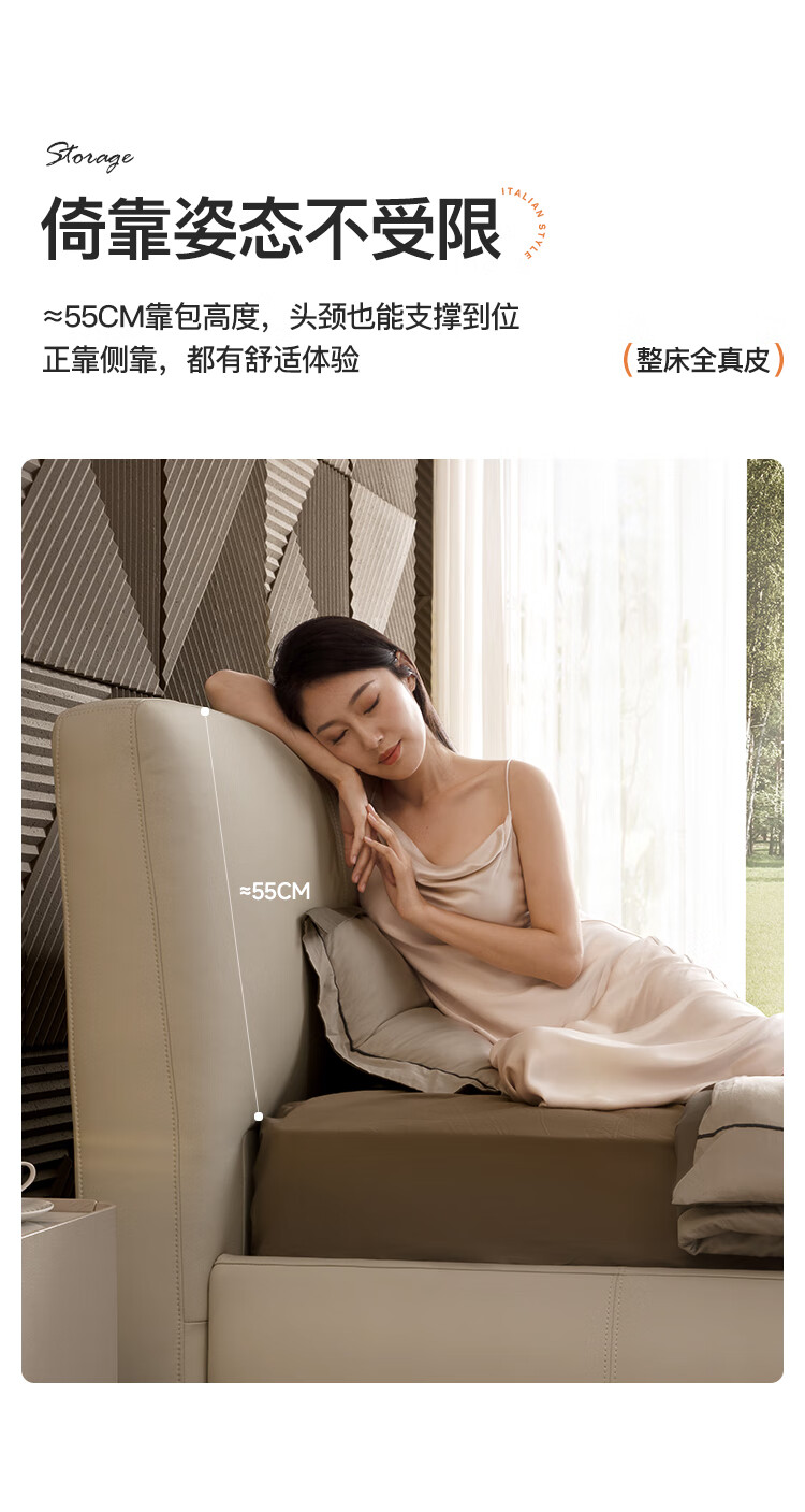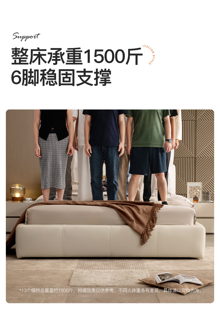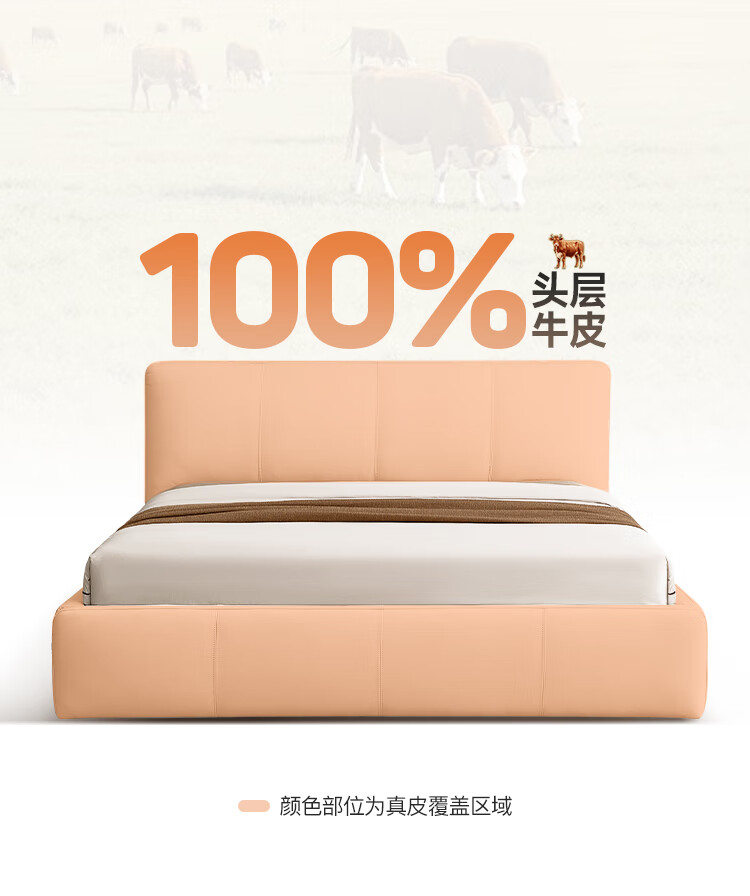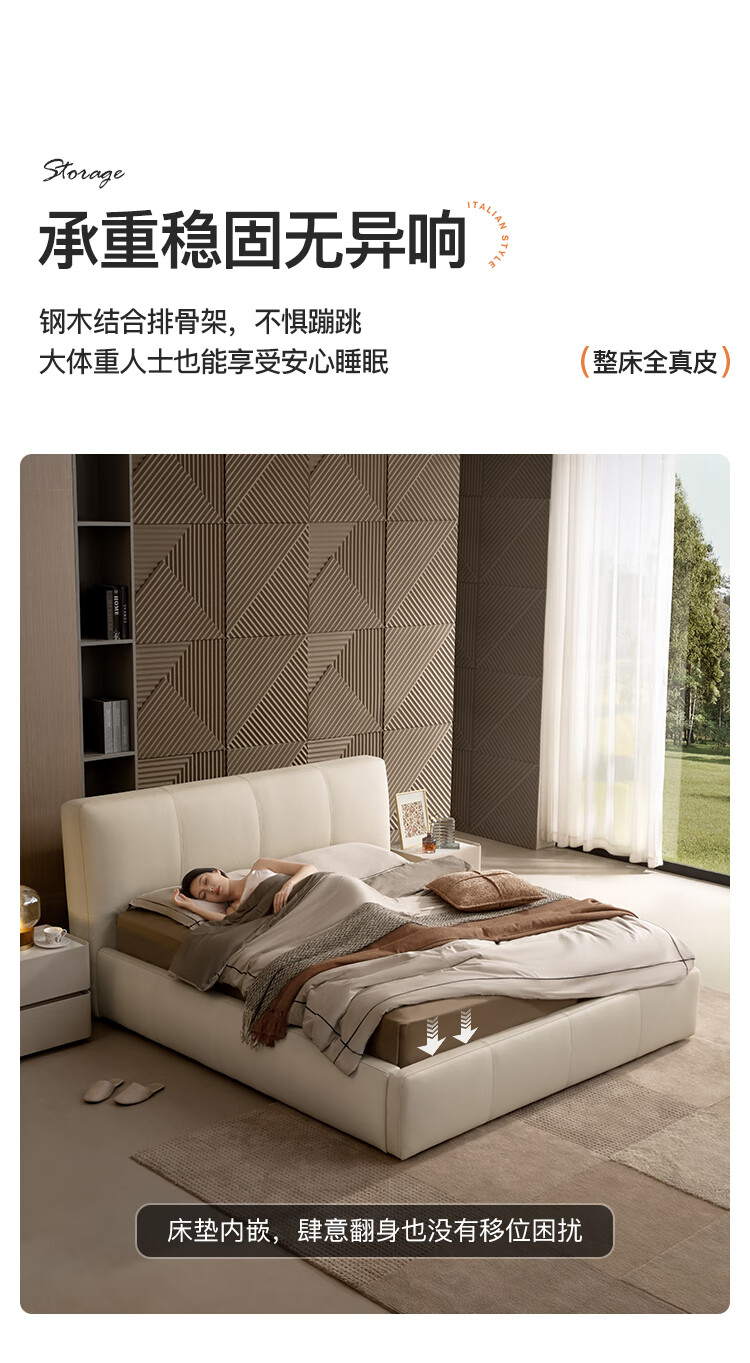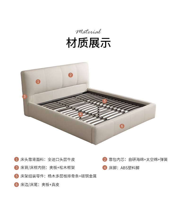 CHEERS Leather Art Bed Cream Style Full Genuine Leather Simple Tofu Block Soft Package Double Bed Package White Pole Star C666 White 1.8m