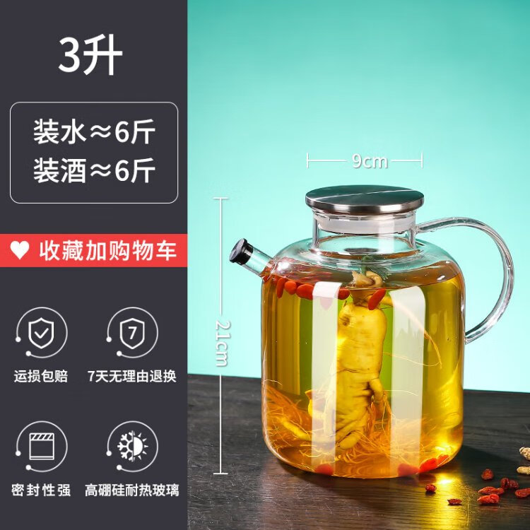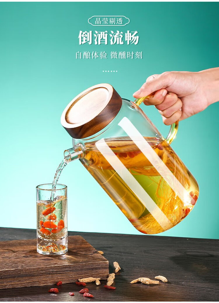 YITELAN high borosilicate glass wine jar with handle fruit wine container 3 liters thickened wine glass bottle sealed wine jar homemade green plum wine bottle