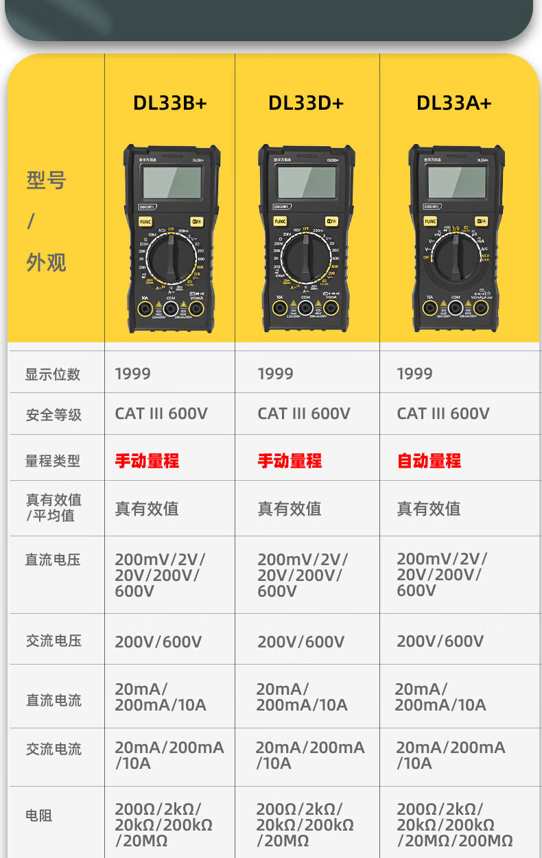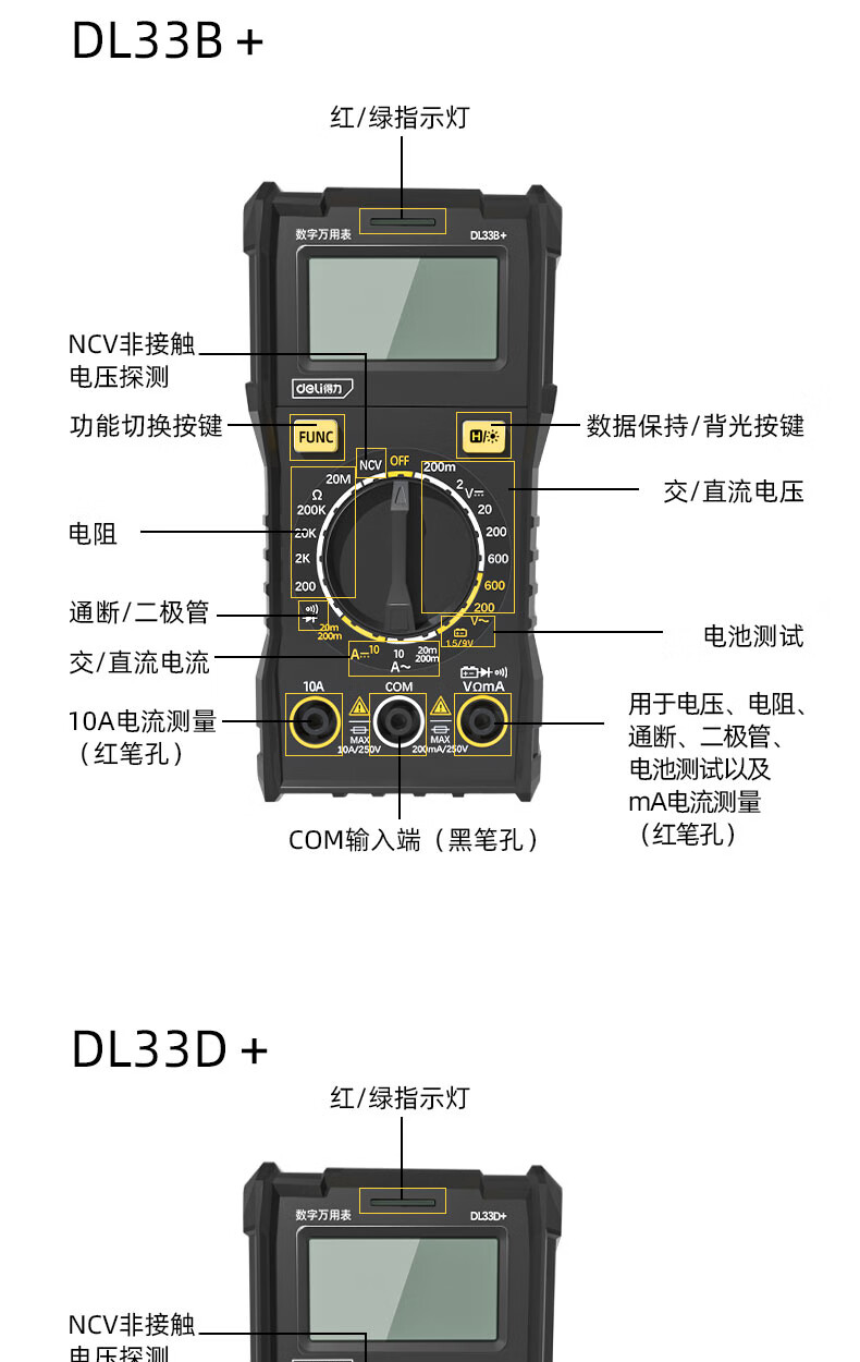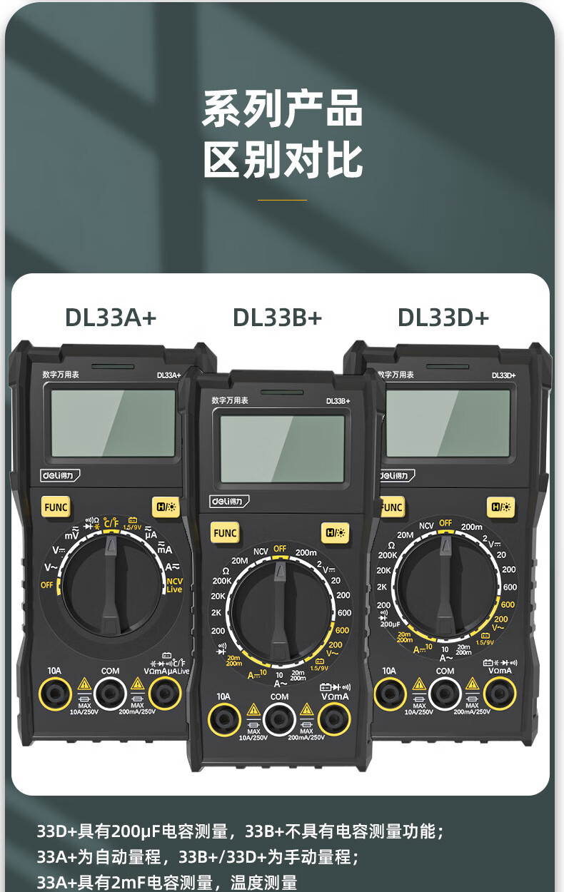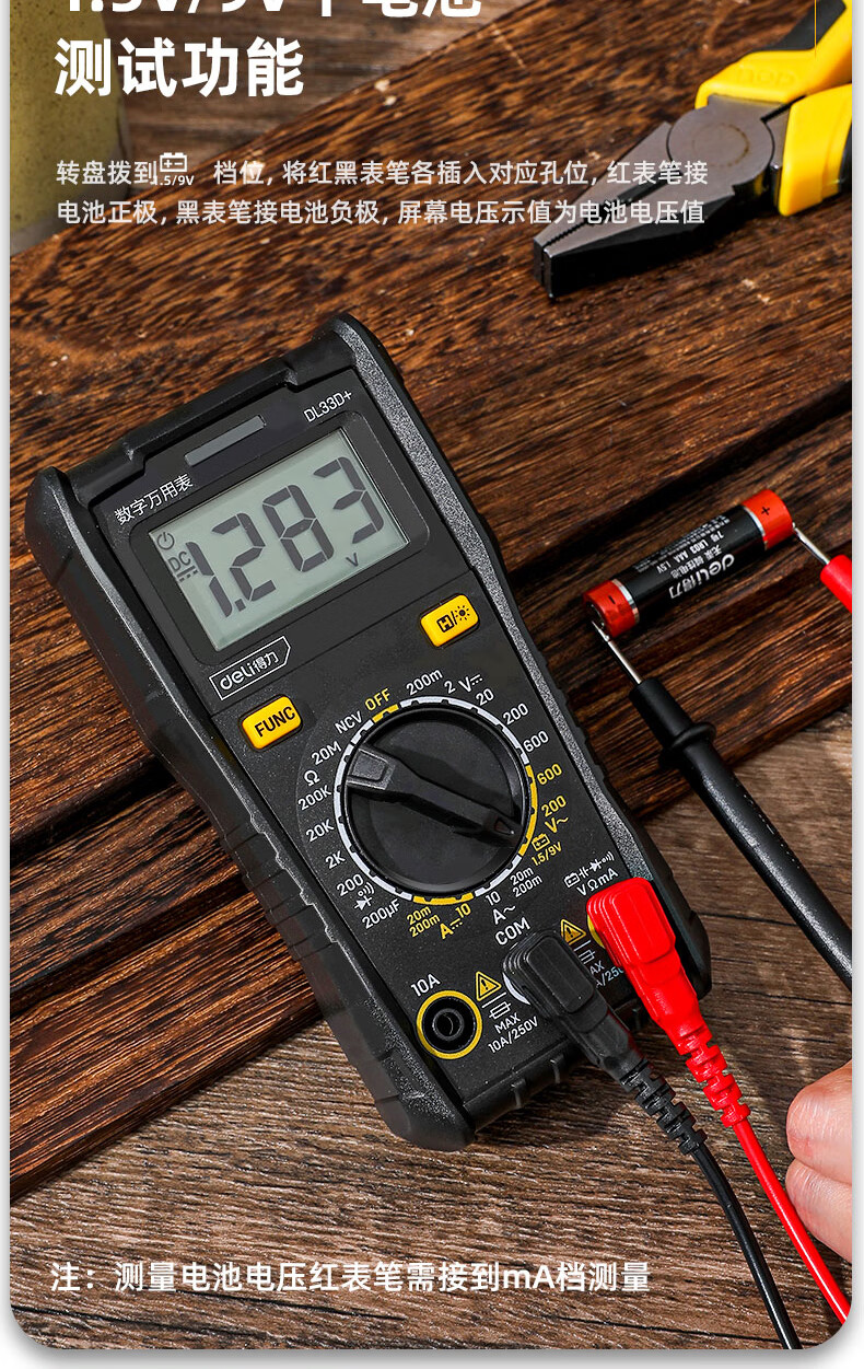 Deli digital multimeter anti-burn backlit digital display high-precision multimeter ammeter multimeter DL334501 large screen multimeter