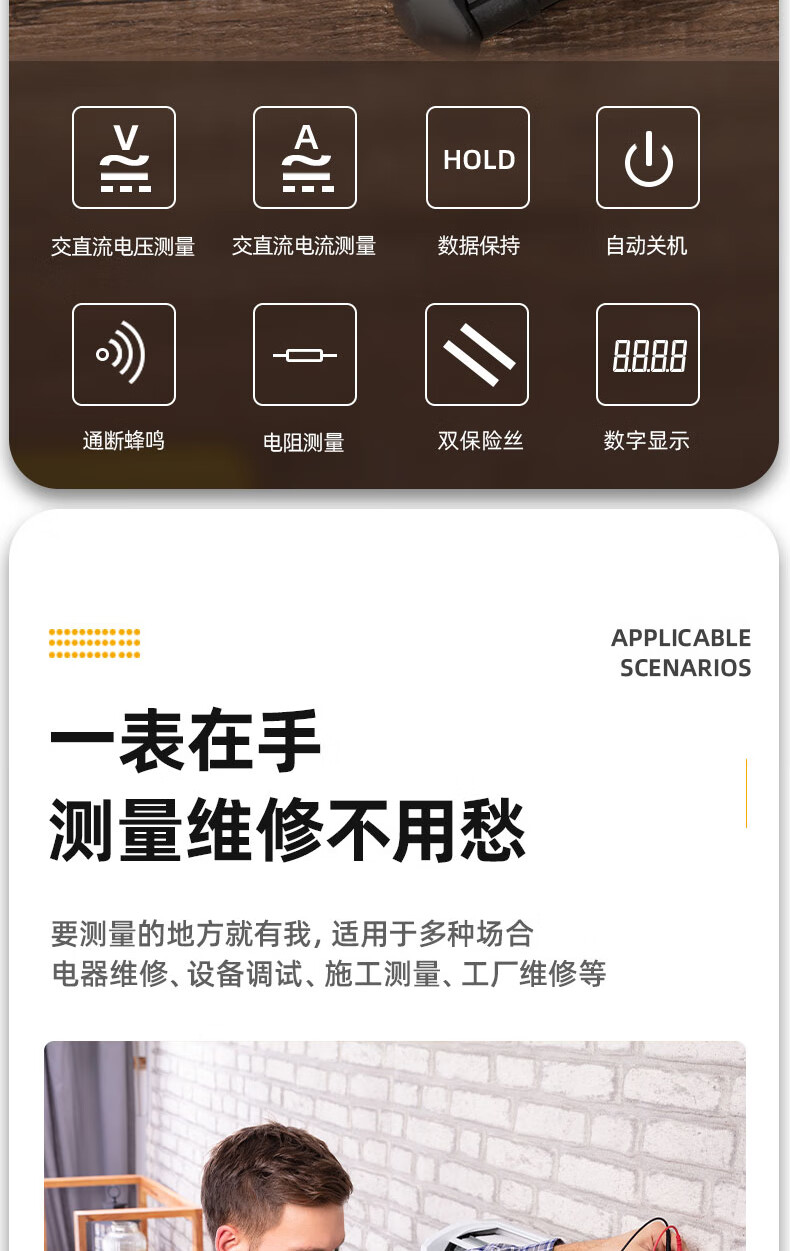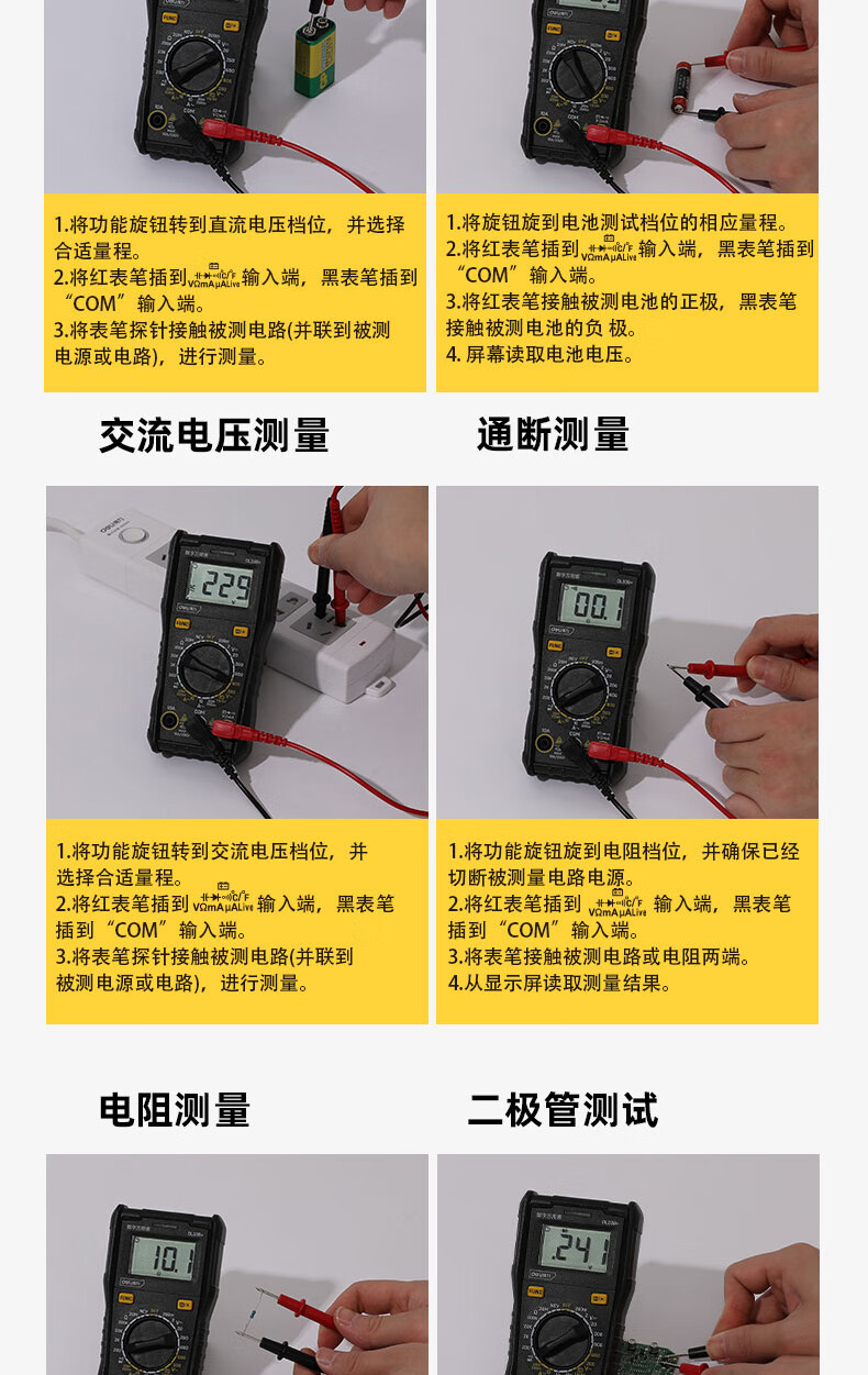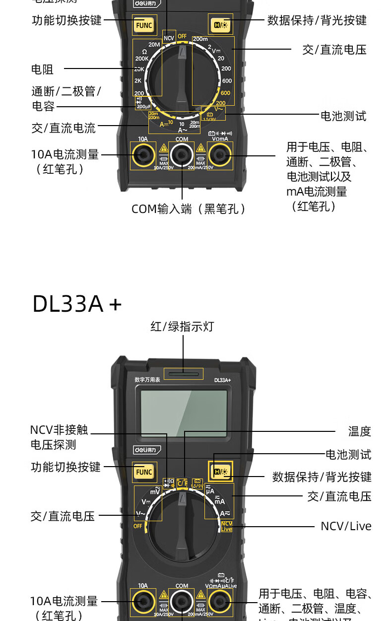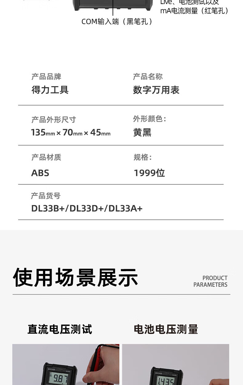 Deli digital multimeter anti-burn backlit digital display high-precision multimeter ammeter multimeter DL334501 large screen multimeter