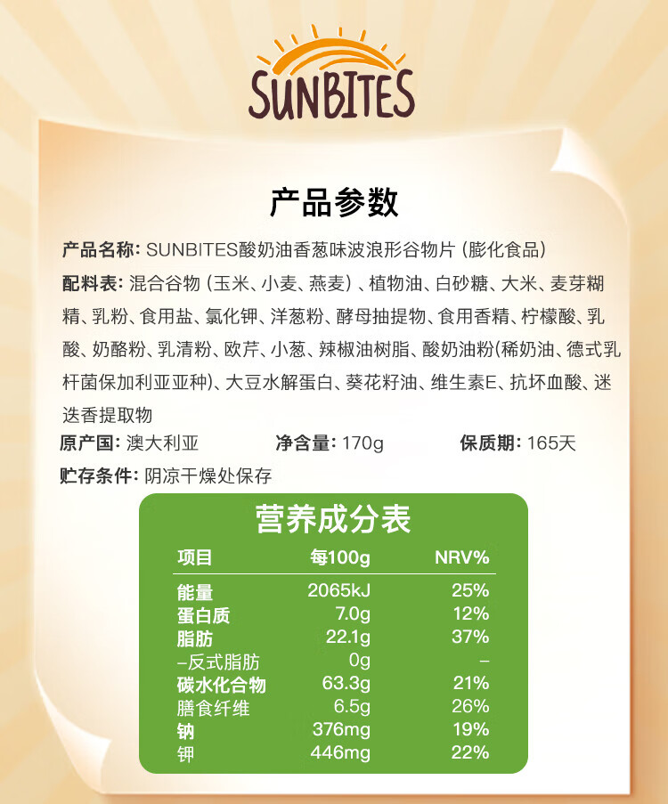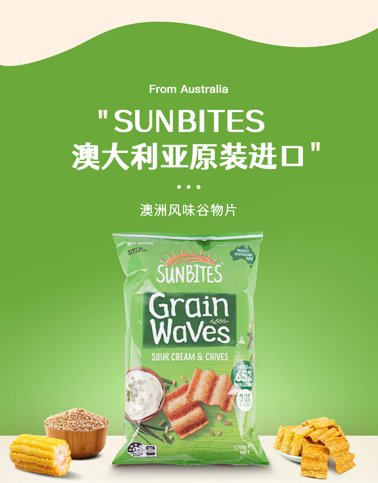 Sunbites potato chips sour cream onion wavy cereal flakes 170g Australian imported casual puffed drama snacks