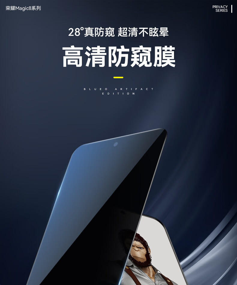 Mr. Blue Monkey is suitable for Honor Magic8 mobile phone film, magic8 tempered film 28, true anti-peep, non-glare, anti-fall, anti-fingerprint mobile phone protection film