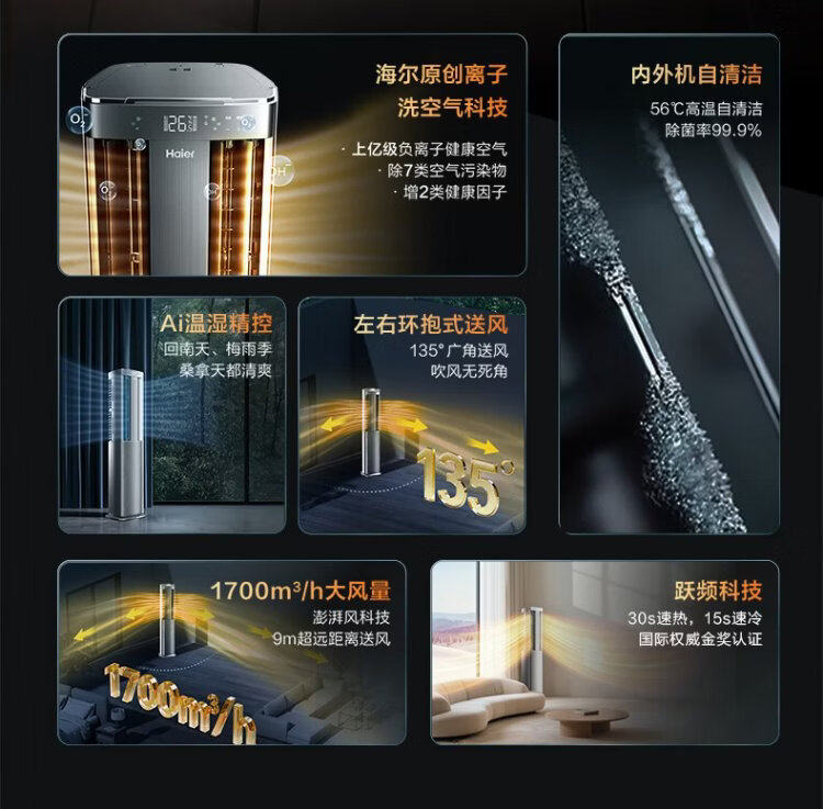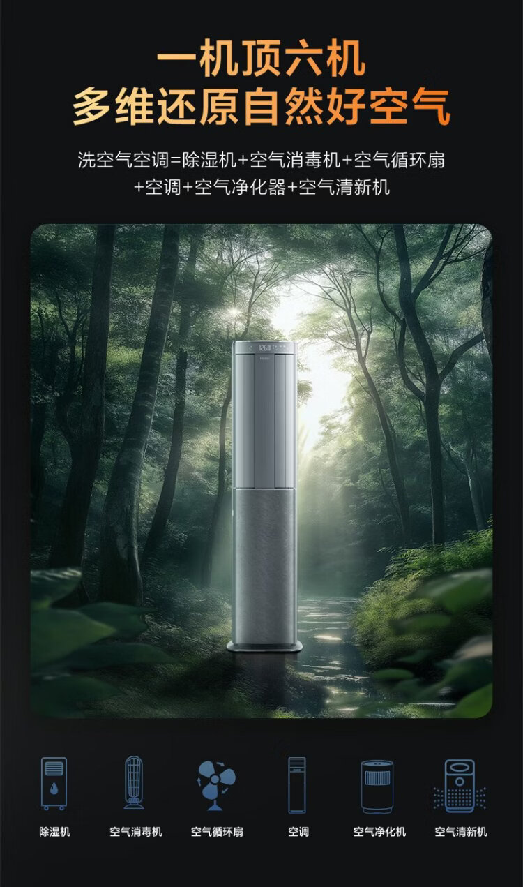 Haier Air Conditioner Air Wash Pro Technology Model Large 3 HP Cabinet Machine Living Room Vertical New Level Frequency Converter Double Row Copper Tube Healthy Wind National Subsidy KFR-72LW/E3-1Pro