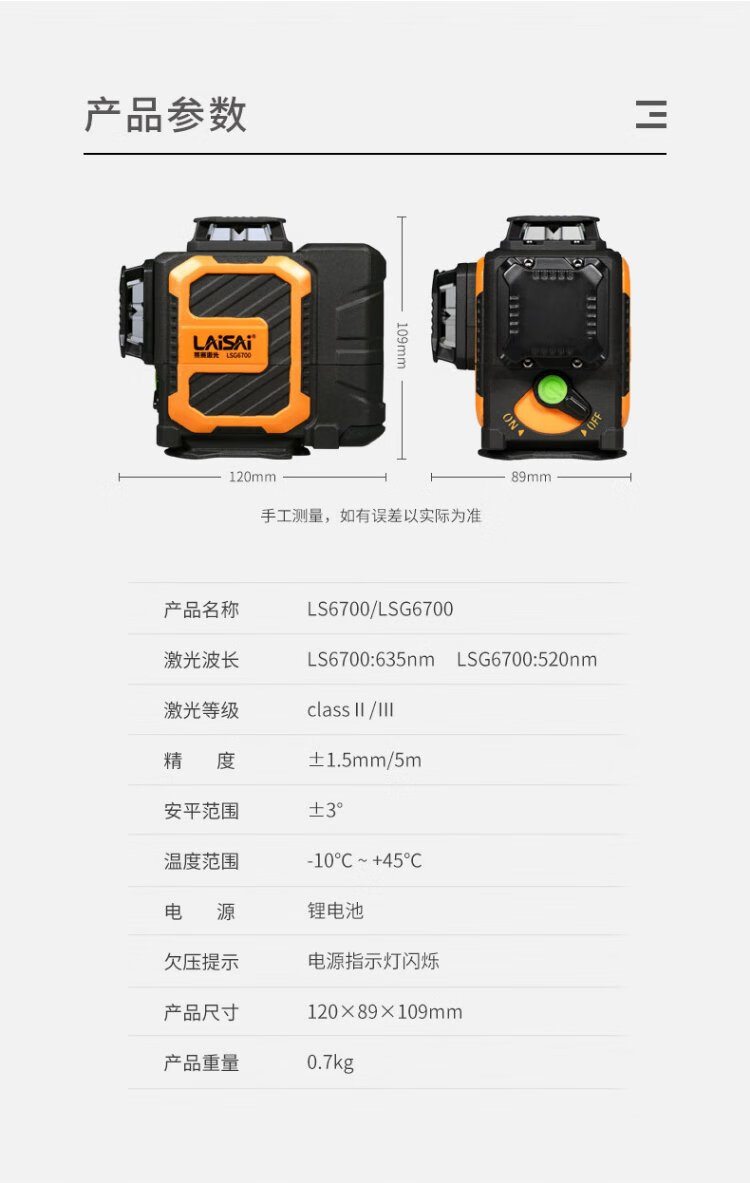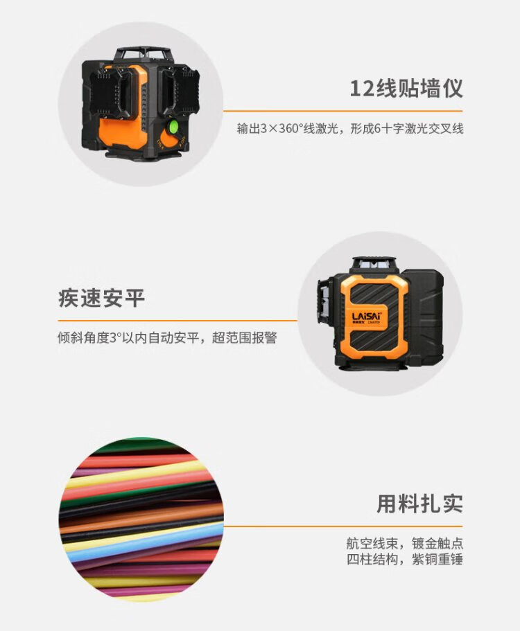 LAISAI LAISAI laser level LSG6700 green light 12-line marking instrument infrared high-precision and high-brightness leveling instrument