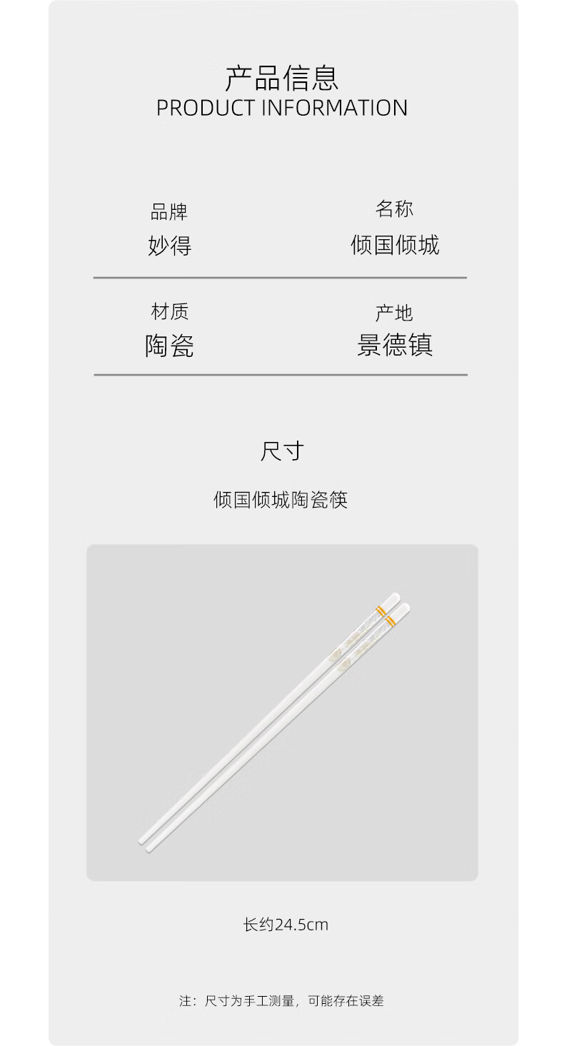 Miaode Jingdezhen ceramic chopsticks for home use, high-grade mildew-proof, 10 pairs of Qingguoqingcheng