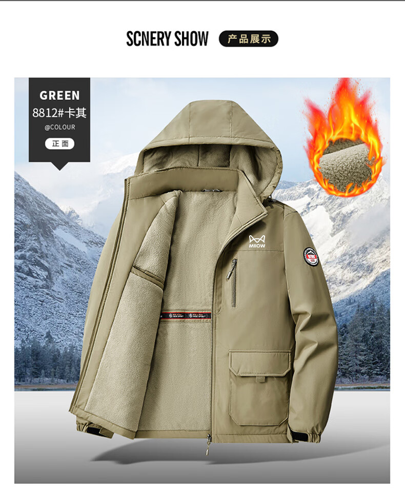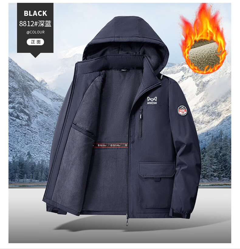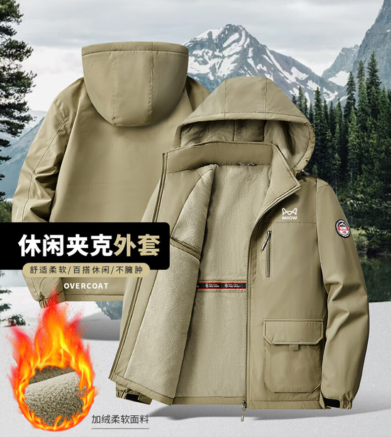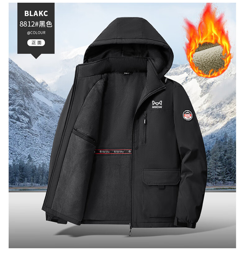 Cat Man Jacket Men's Autumn and Winter Large Size Men's Casual Hooded Plush Warm Jacket Dark Gray 2XL