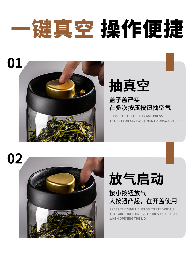 PINYU tea cans, vacuum sealed cans, food-grade storage tea and coffee beans, moisture-proof glass cans, portable tea cans