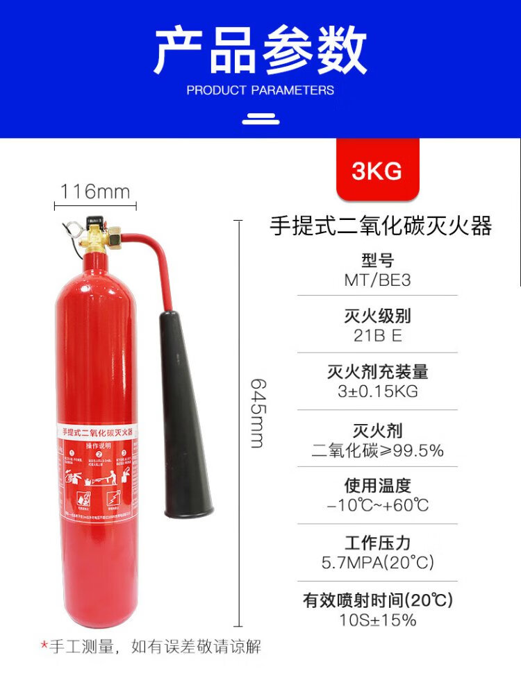 Gui'an 25-year-old new national standard portable carbon dioxide fire extinguisher 3kg MT/BE3