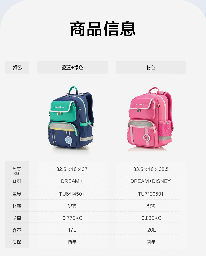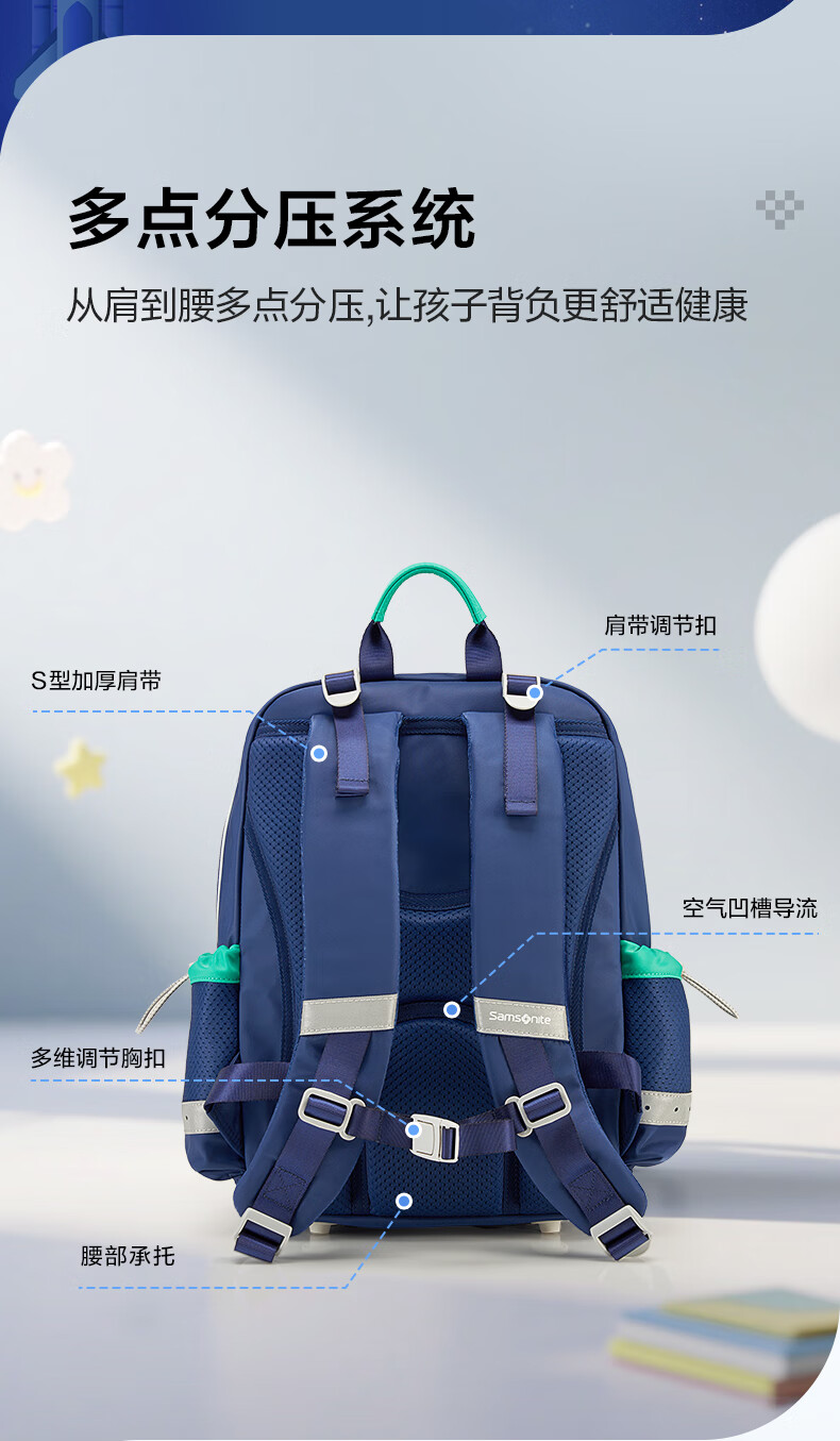 Samsonite student schoolbag new in 25 years 1-2 grade boys backpack children high-value backpack antibacterial burden reduction TU6