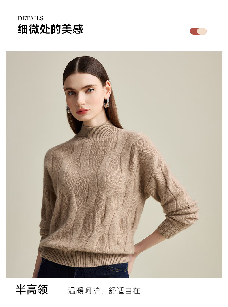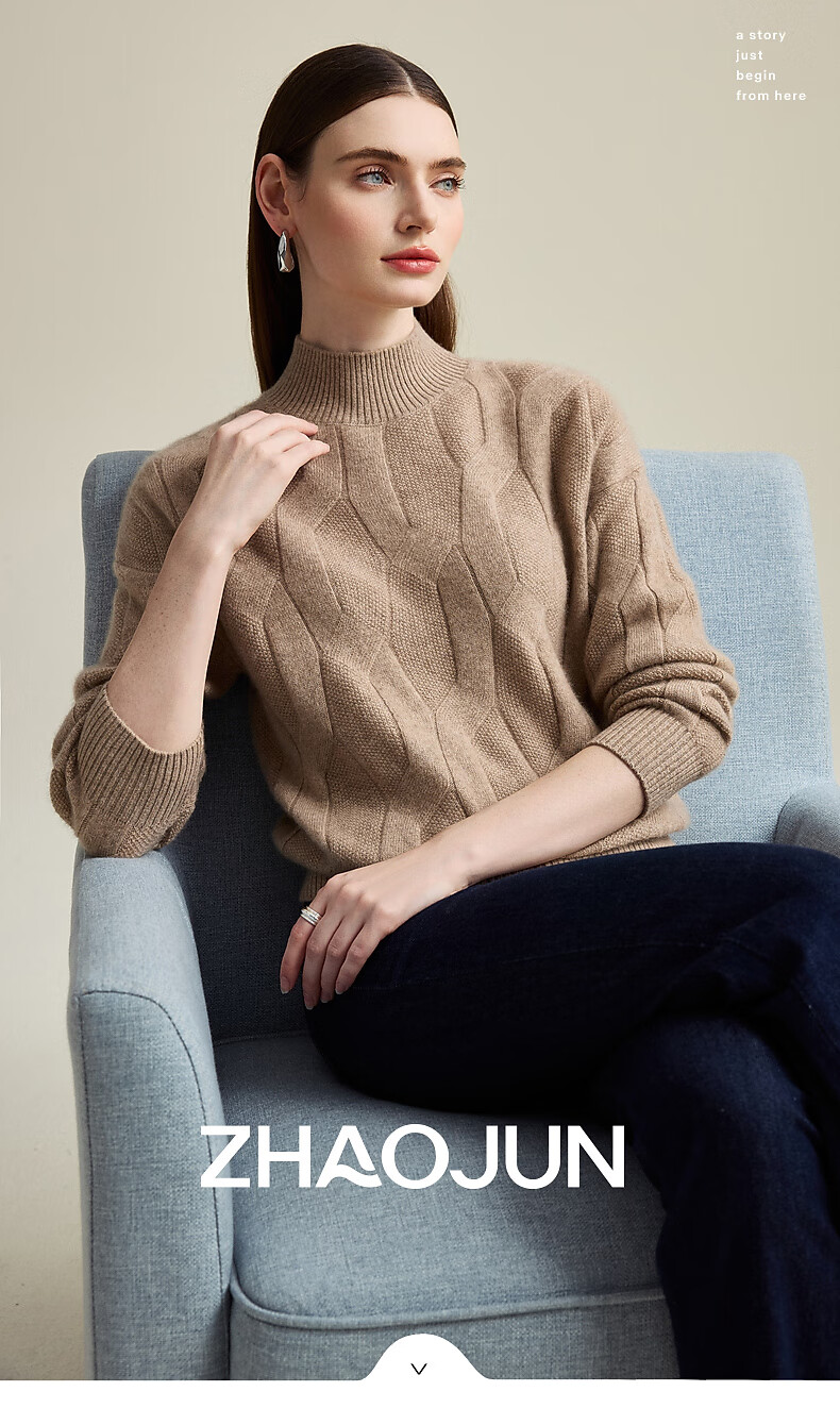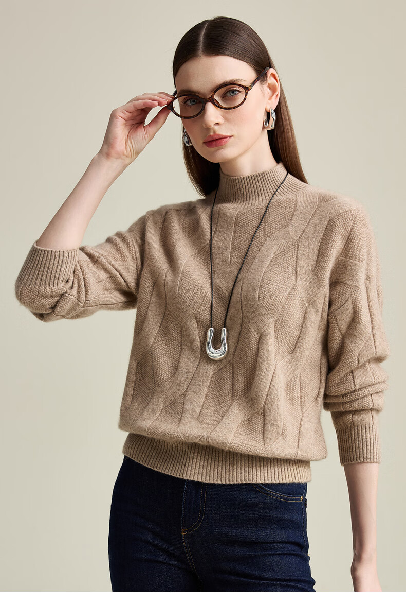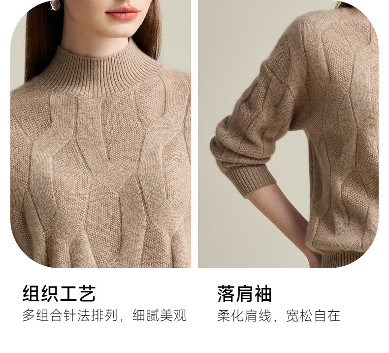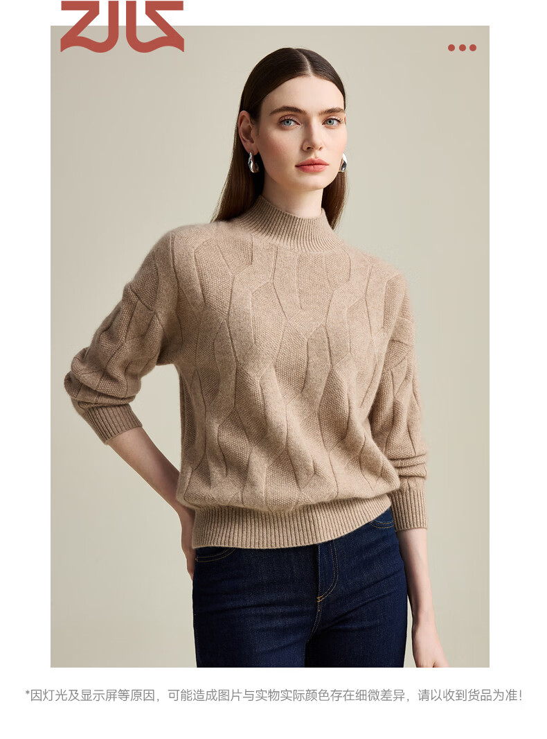 Zhaojun Autumn and Winter Solid Color Cashmere Sweater Women's Half Turtle Collar Drop Sleeve Warm Knitted Sweater Camel XL