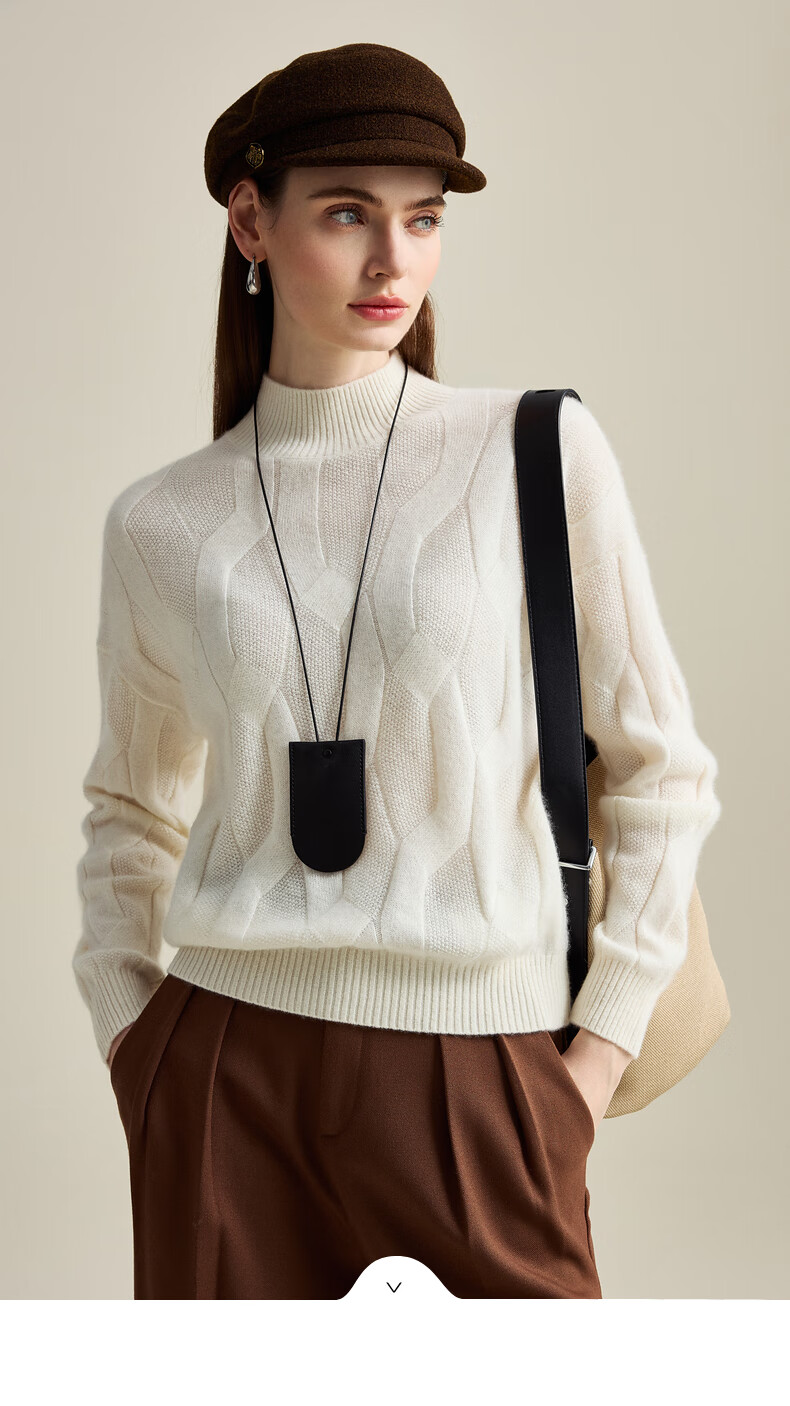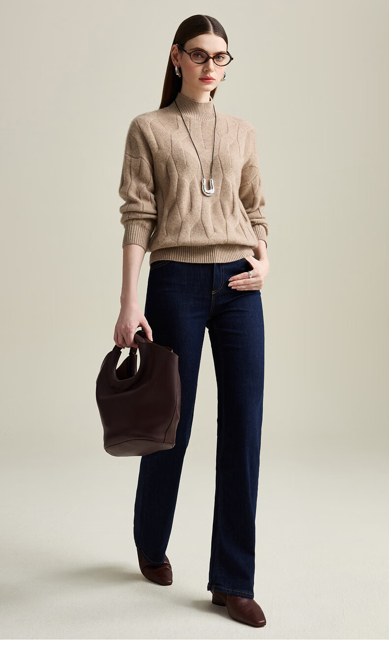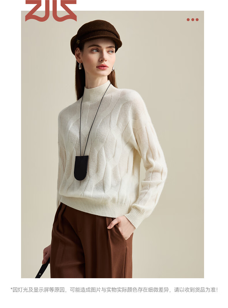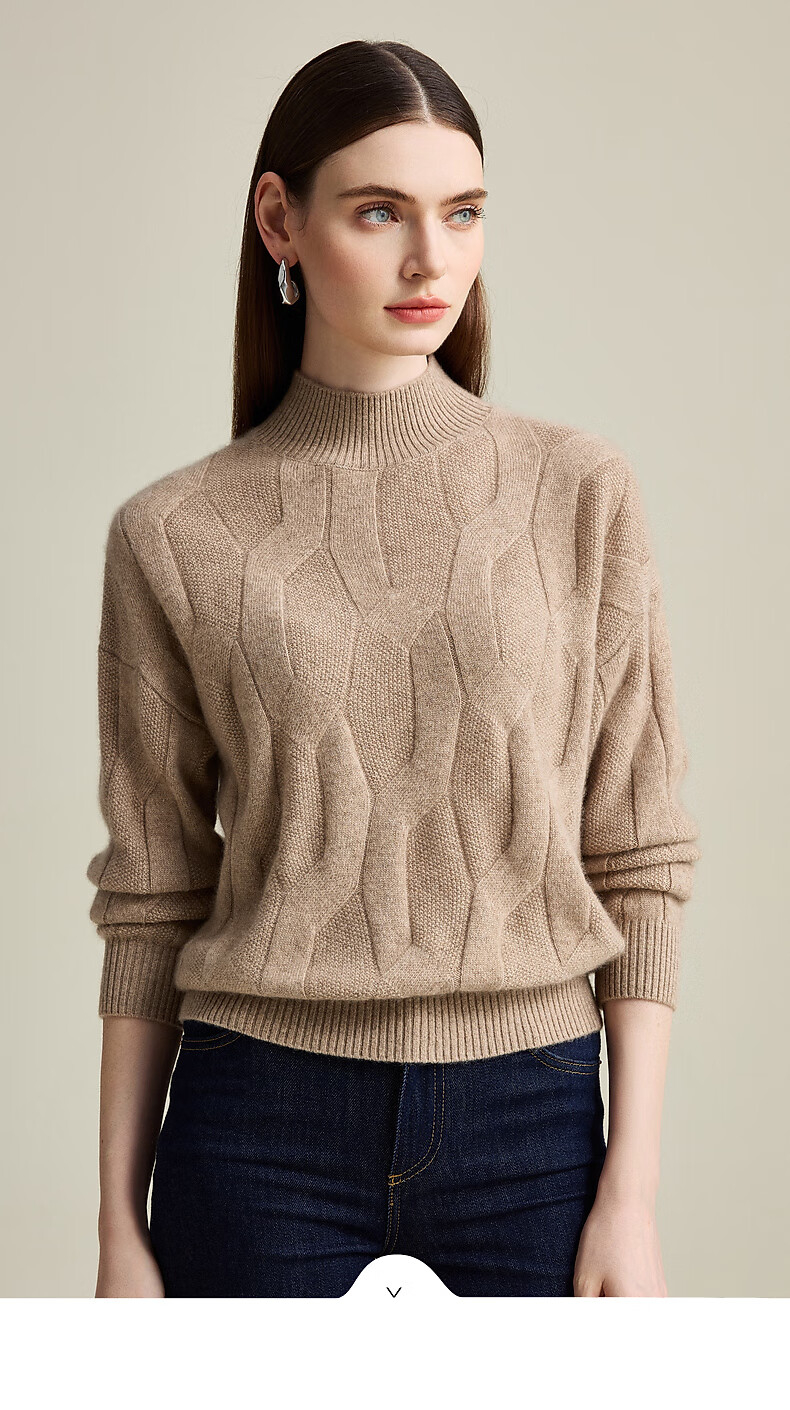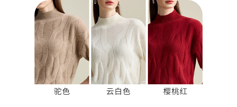 Zhaojun Autumn and Winter Solid Color Cashmere Sweater Women's Half Turtle Collar Drop Sleeve Warm Knitted Sweater Camel XL
