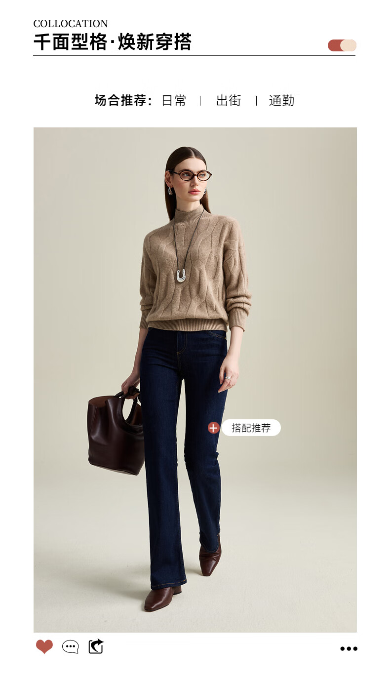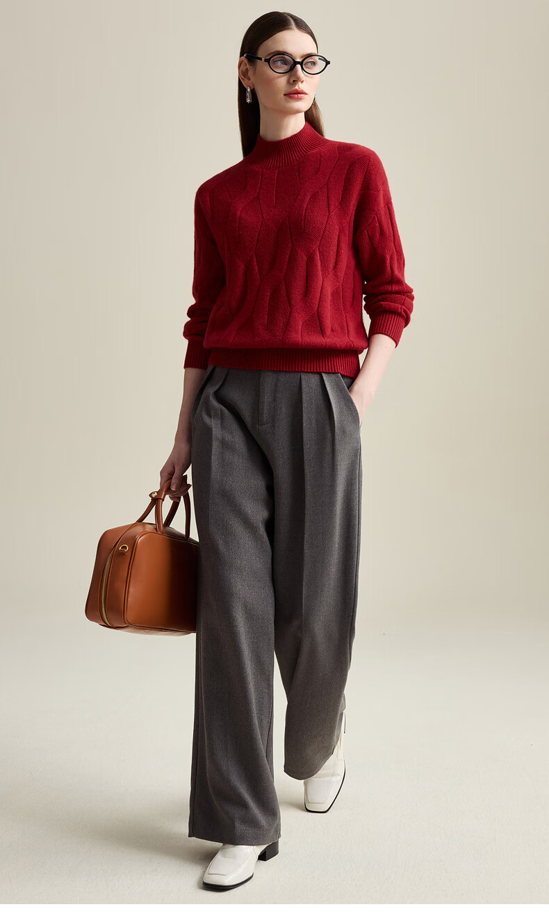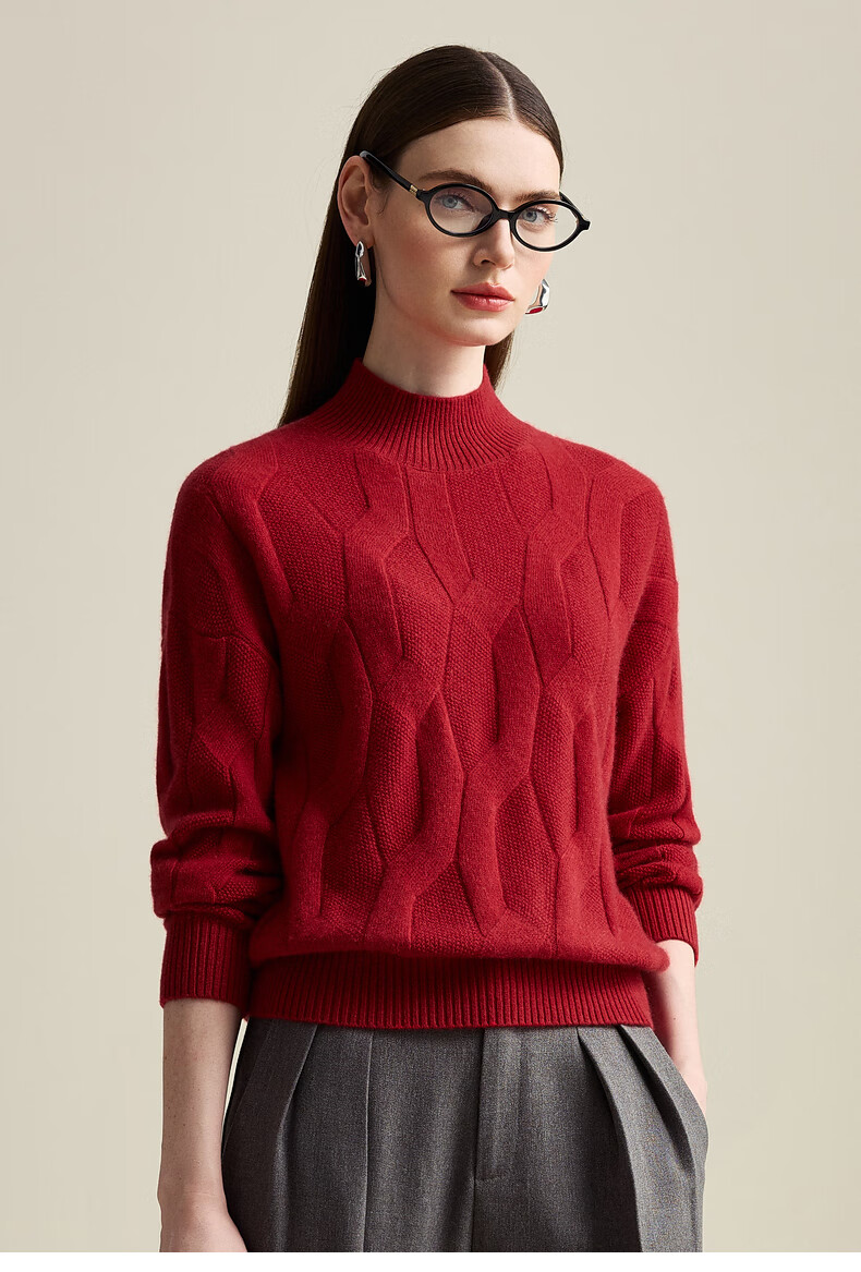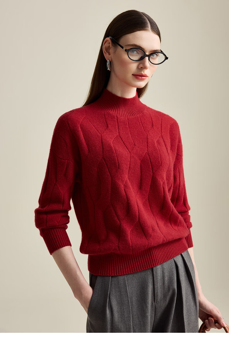 Zhaojun Autumn and Winter Solid Color Cashmere Sweater Women's Half Turtle Collar Drop Sleeve Warm Knitted Sweater Camel XL