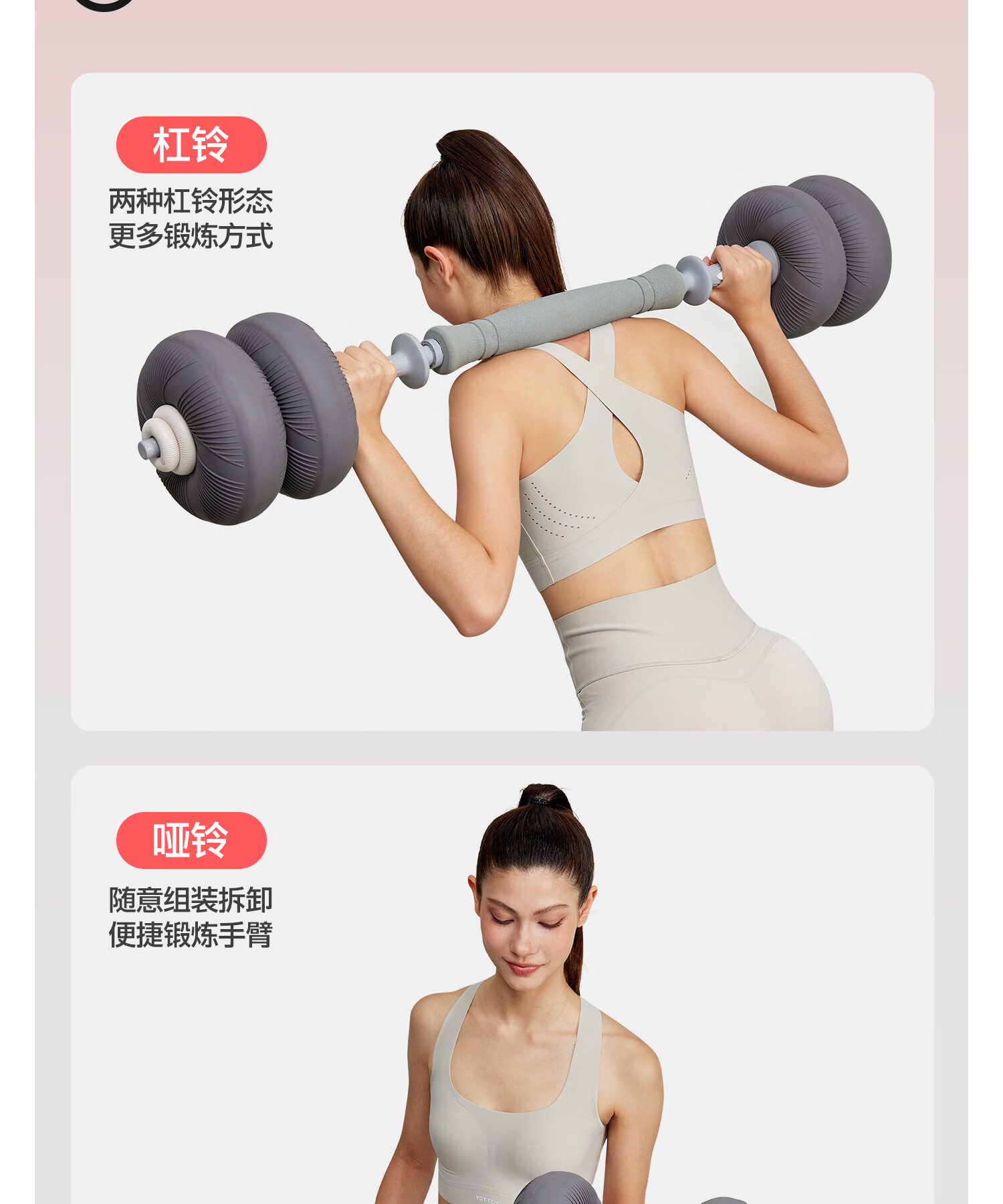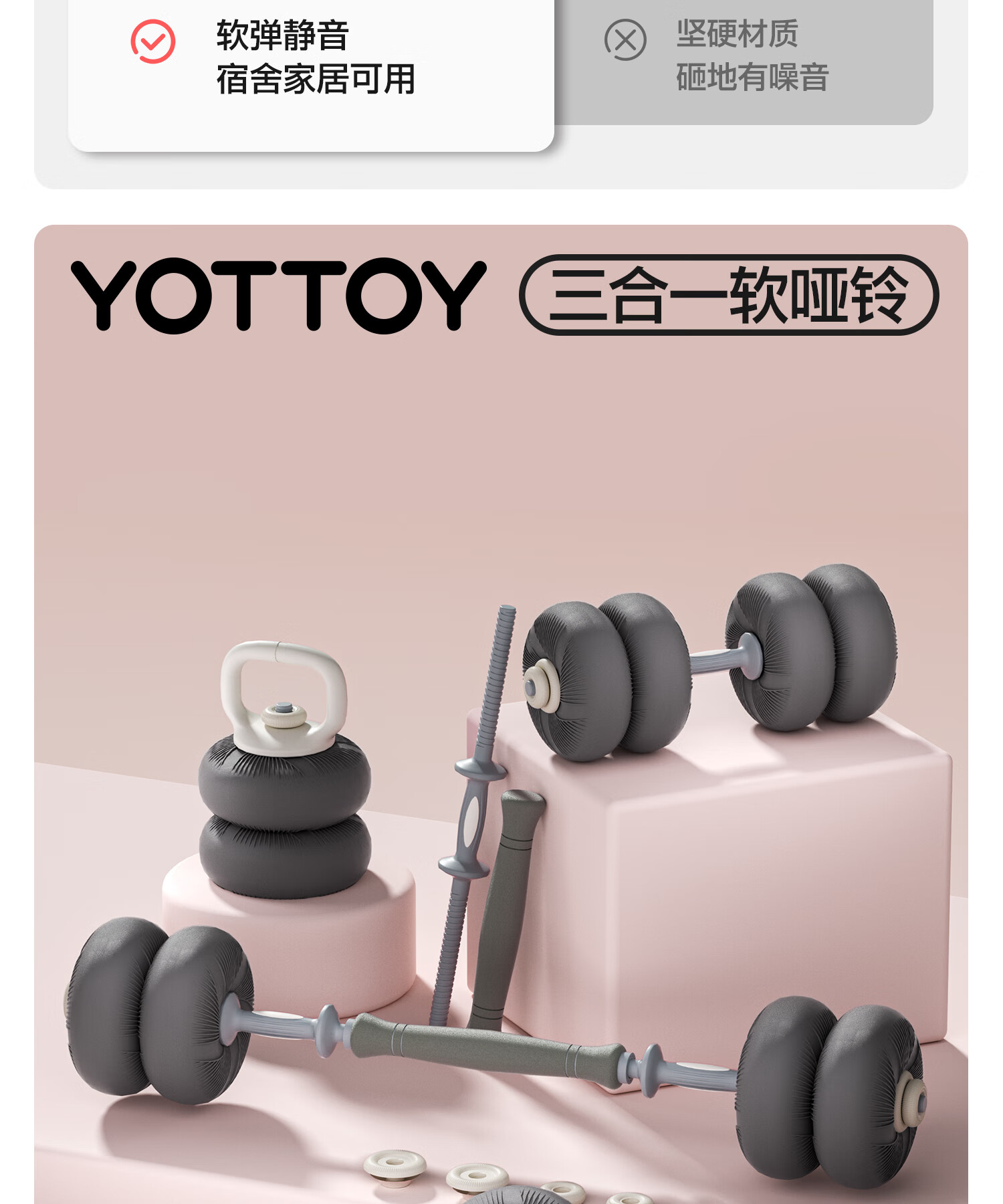 Yottoy software three-in-one dumbbell adjustable quick-adjust barbell combination set women's fitness removable kettlebell 20kg