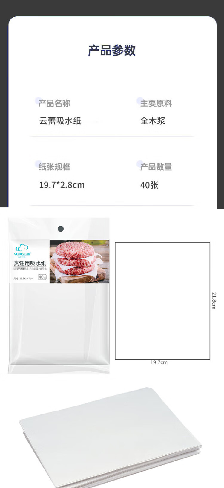 Yunlei cooking oil-absorbing paper 21.8CM*19.7CM*40 sheets of food-grade baking mat paper for air fryer oven