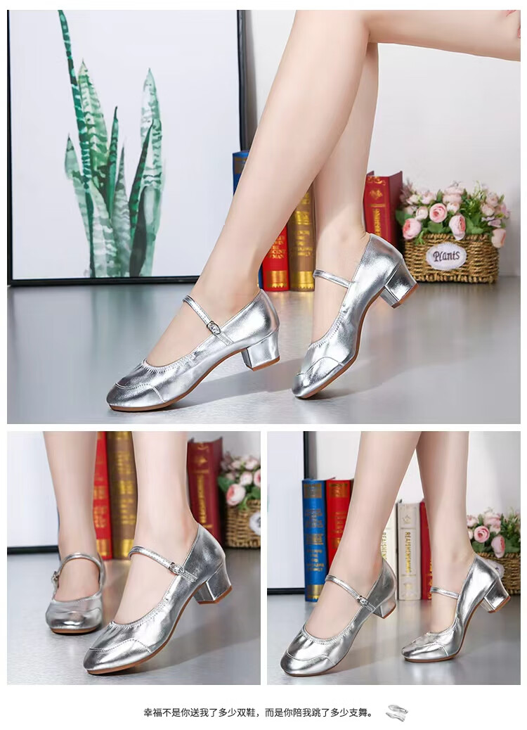 Tesili dance shoes for women adult square dance shoes four seasons mid-heel modern ballroom dance shoes soft sole breathable silver