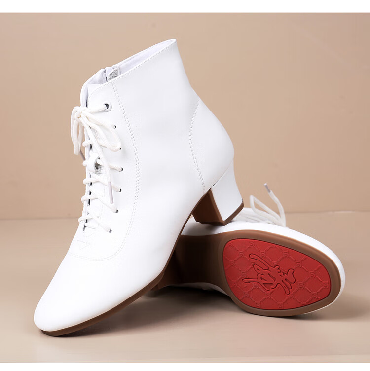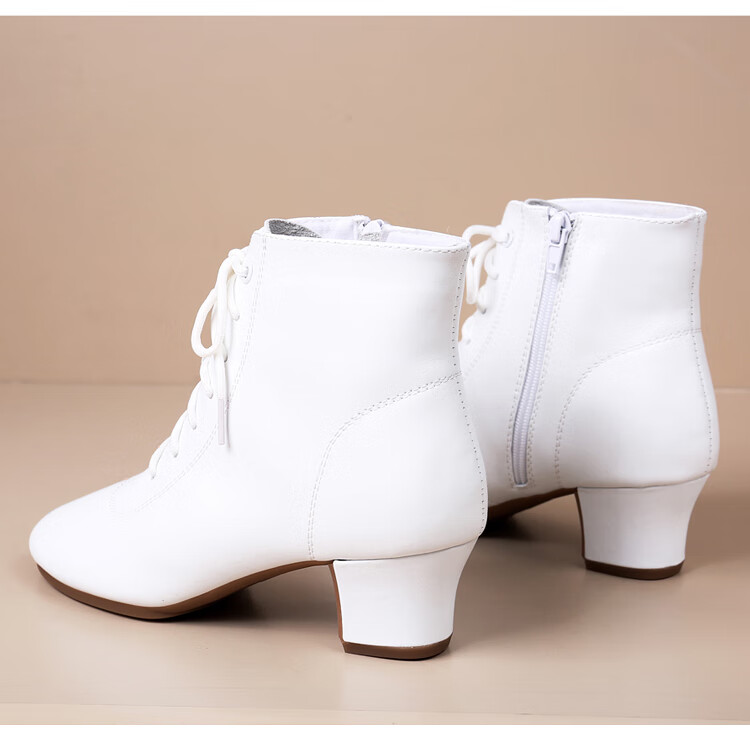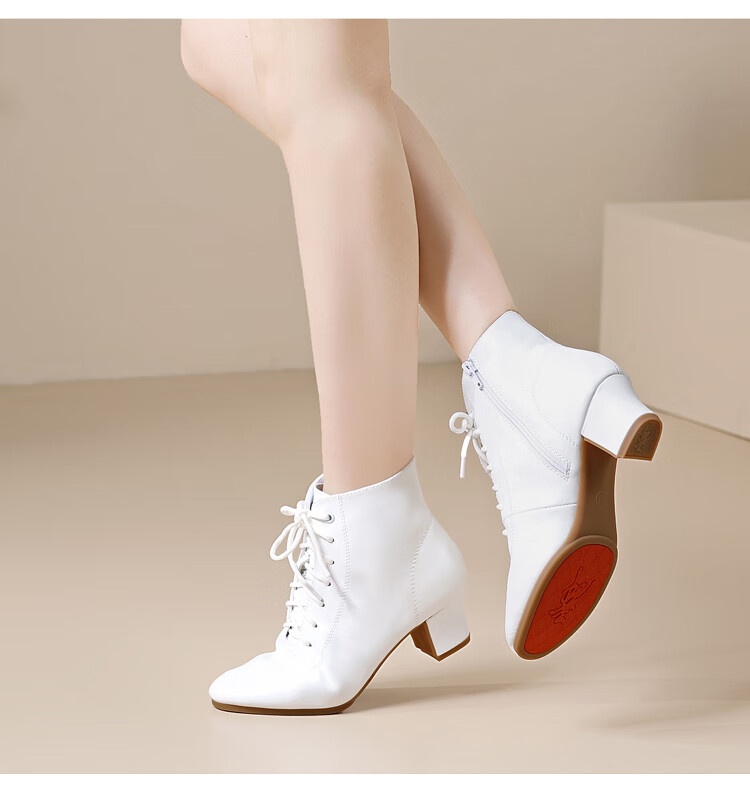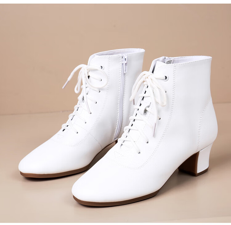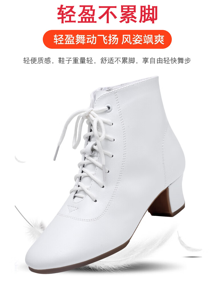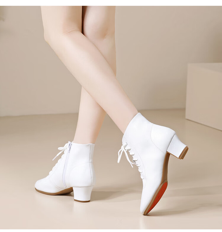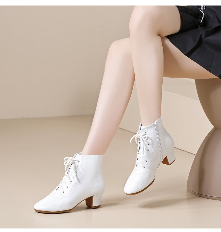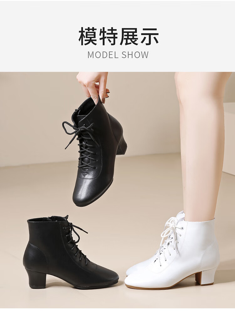 Tesili's autumn and winter square dance shoes, modern dance shoes, mid-heeled Latin dance shoes, cowhide mother's shoes, short boots, black plus velvet