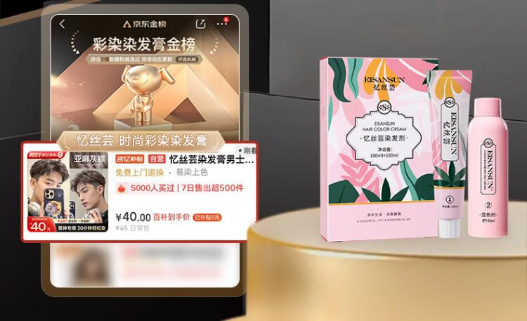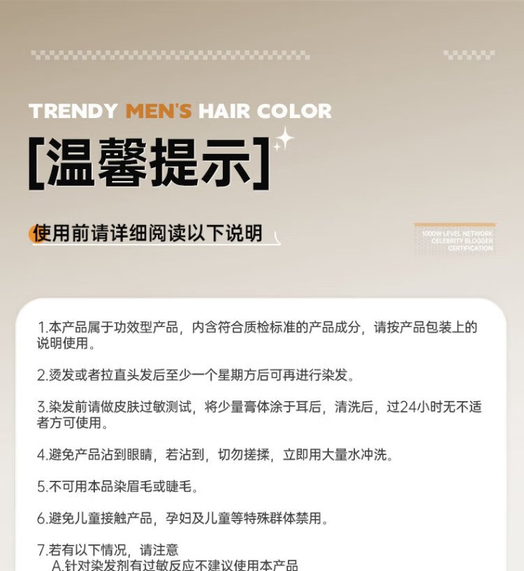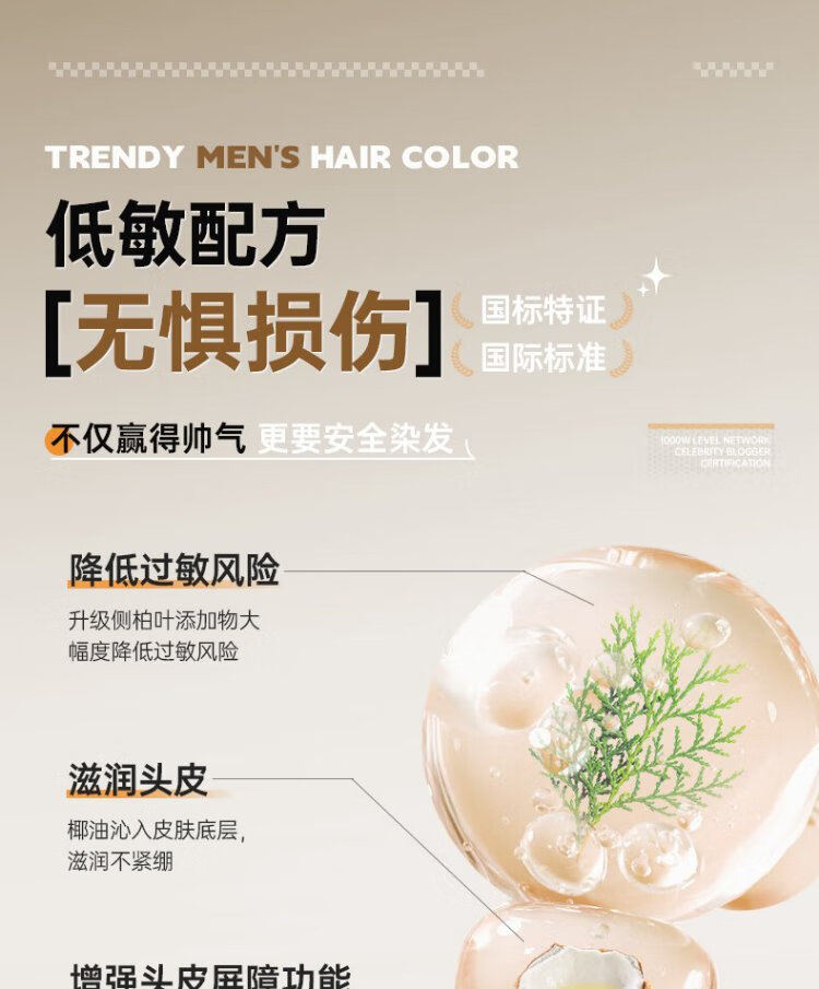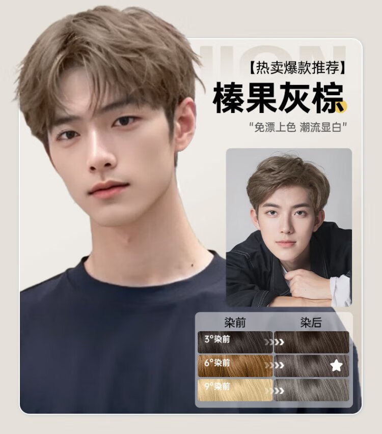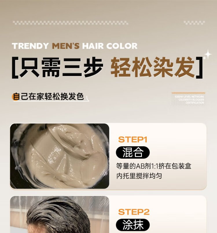 Hair dye cream for men, plant-based trendy hair dye, natural and pure covering gray hair, dye peach powder at home