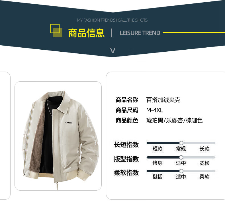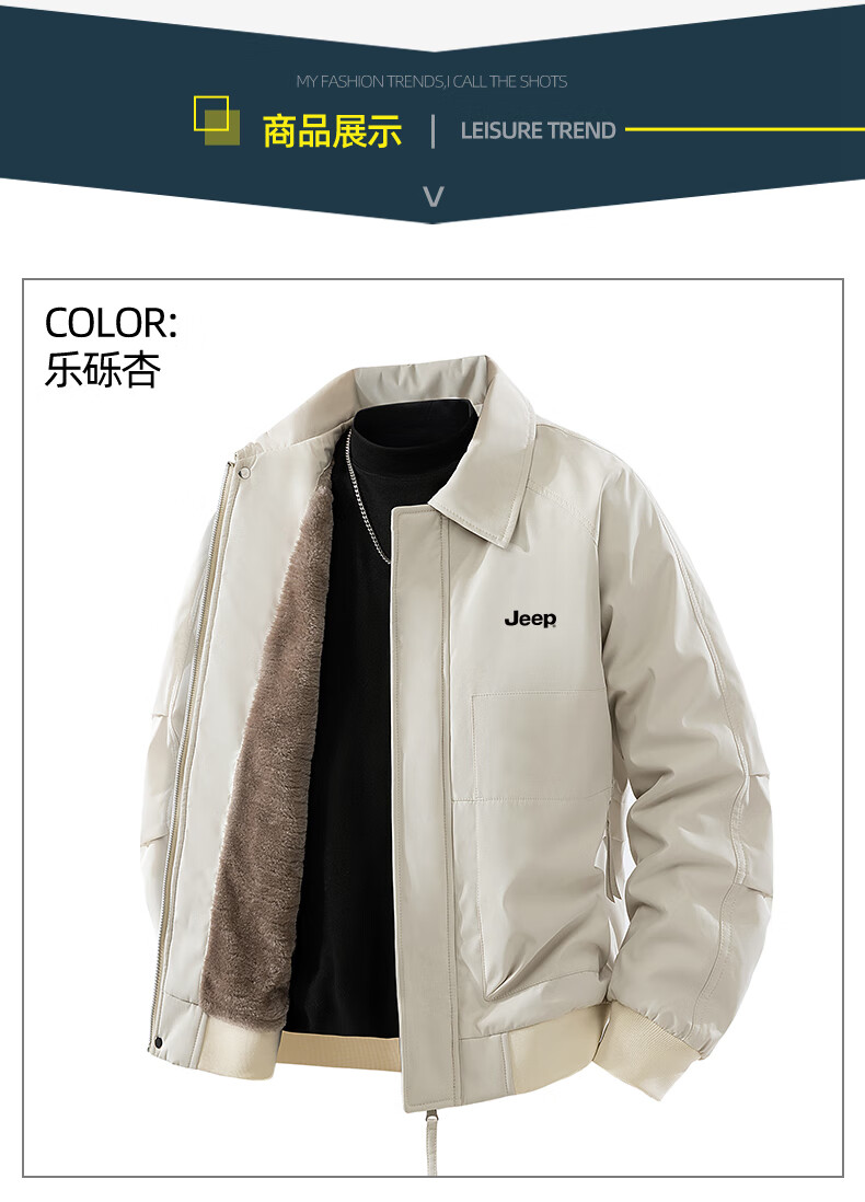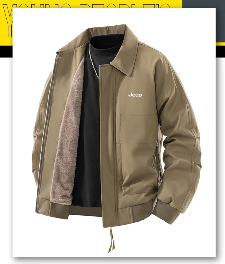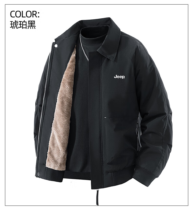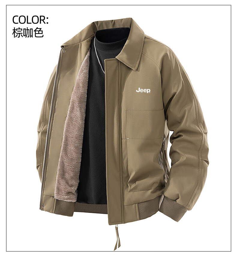 JEEP Jeep Jacket Men's Autumn and Winter Casual Outdoor Travel Windproof Warm Plush Jacket Brown Brown XL