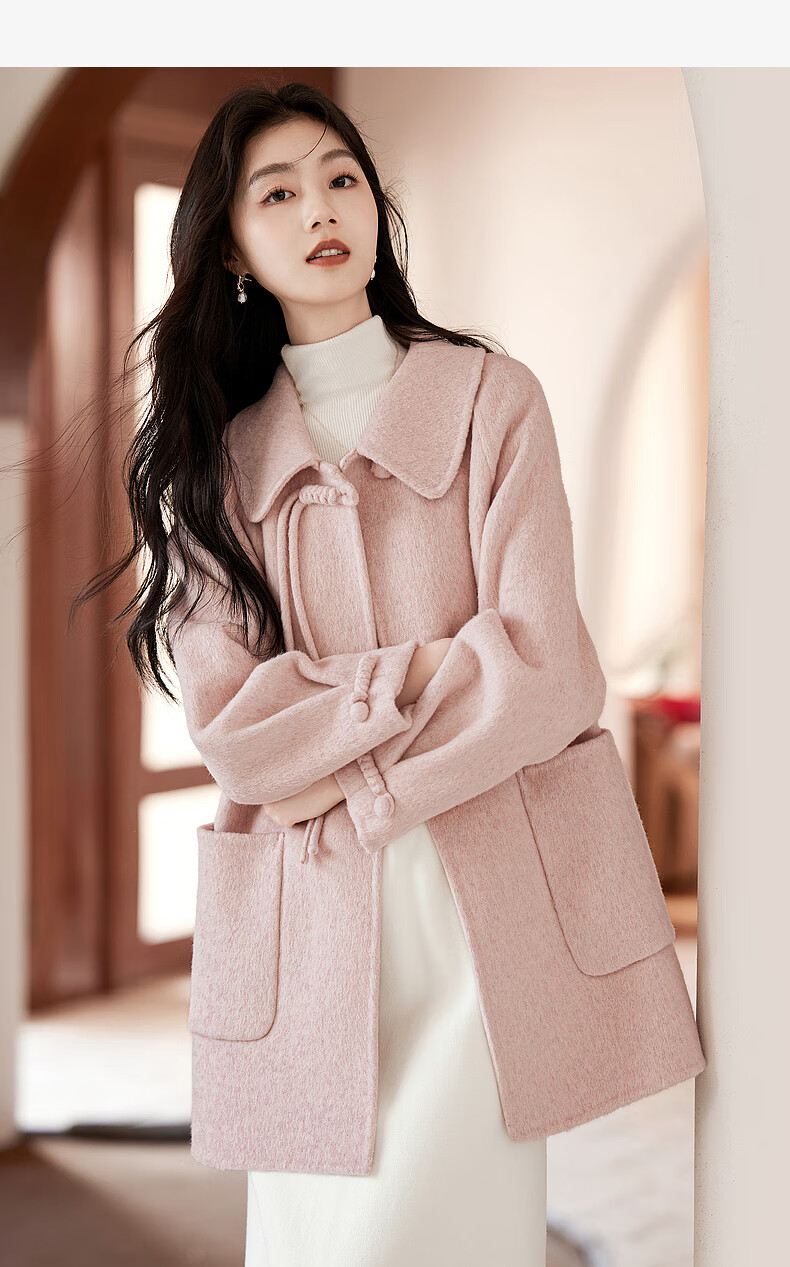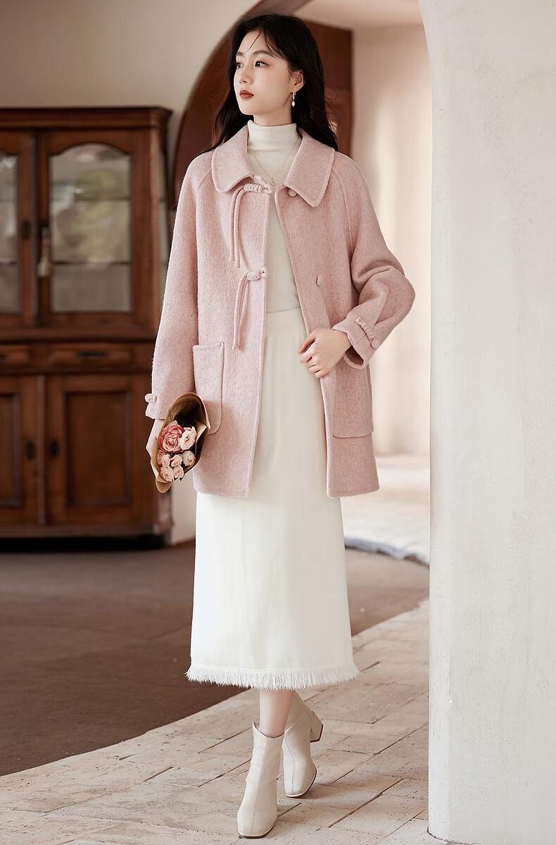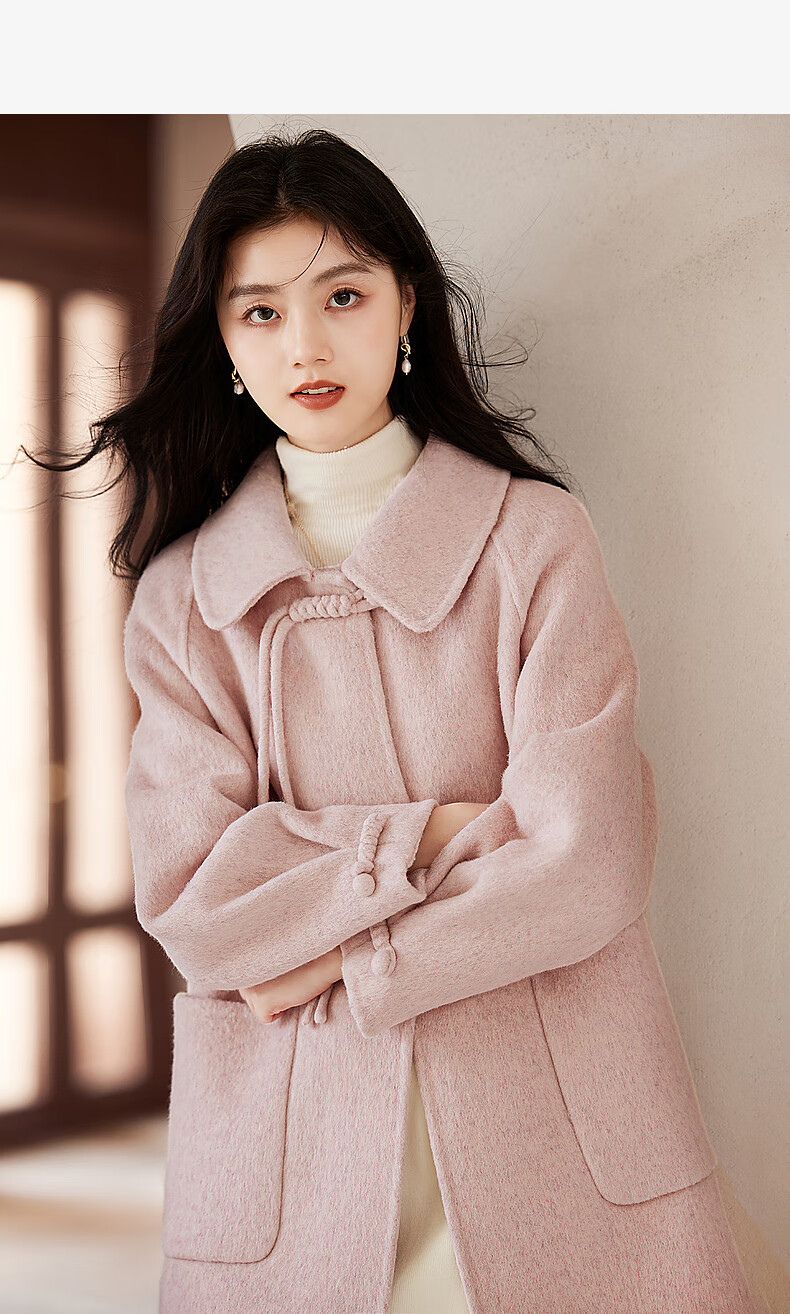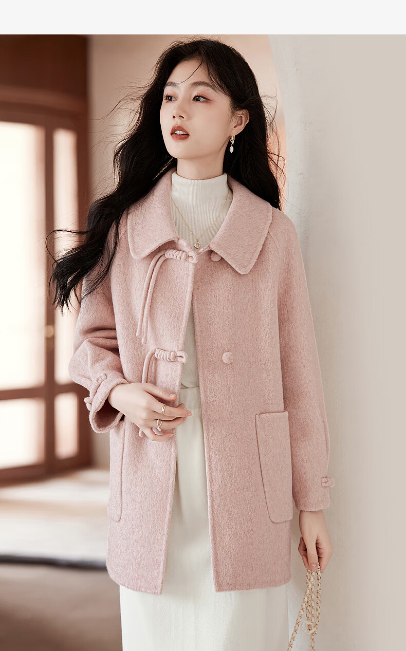 Lost Time Winter Orange Pink Fairy Wool Coat Light Chinese Style High-Quality Small Wool Coat Women 01 Pink S