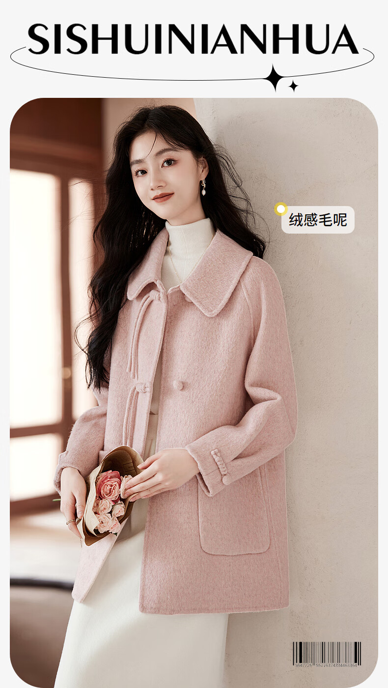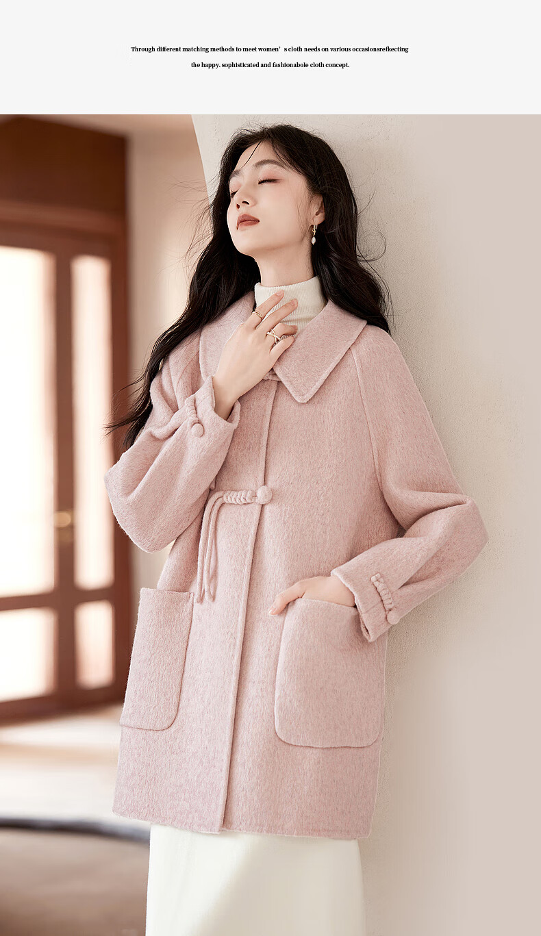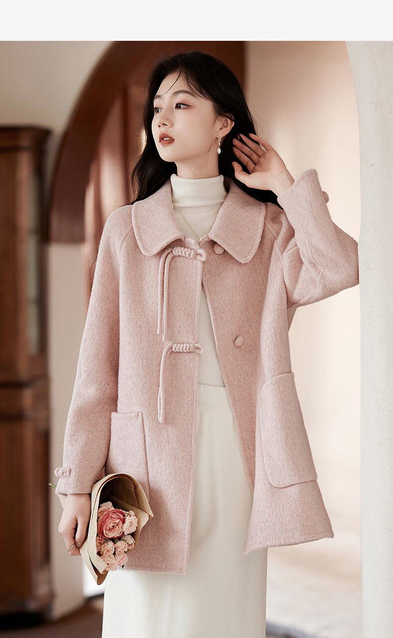 Lost Time Winter Orange Pink Fairy Wool Coat Light Chinese Style High-Quality Small Wool Coat Women 01 Pink S