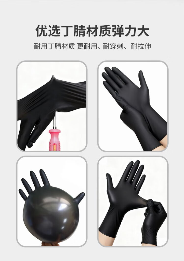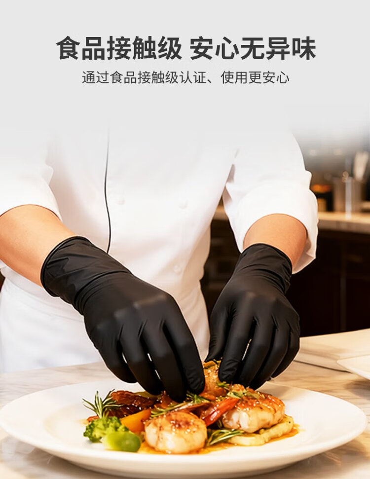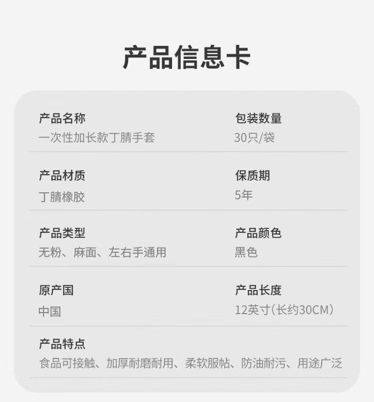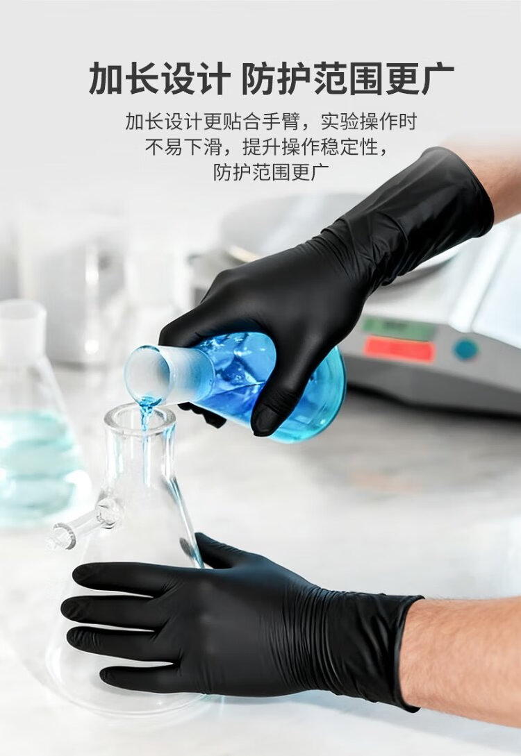 Thermos disposable nitrile gloves, extra long, thickened, oil-proof, waterproof and stain-resistant, 30 pieces/pack, black, medium size
