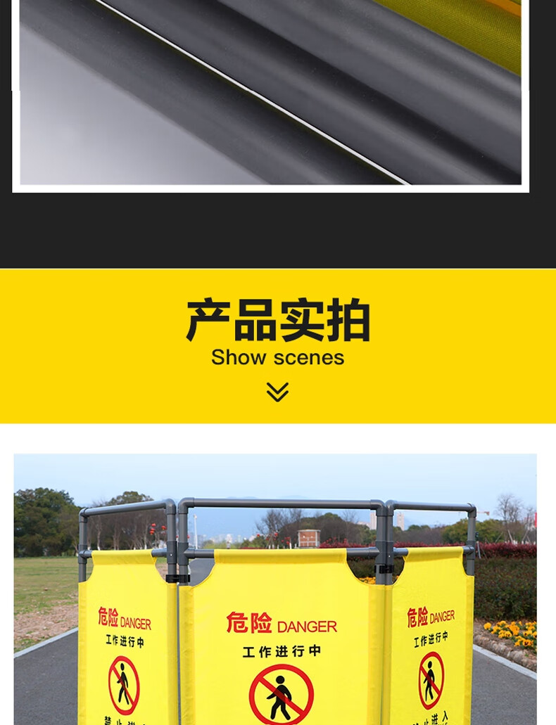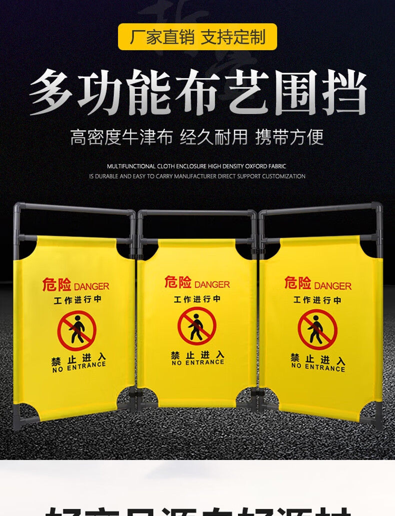 Hongjian HJ fabric fence equipment is under maintenance. Suspended. Warning guardrail. Folding movable screen. Length 60cm*Height 1m. 3 pieces/set. One set price.