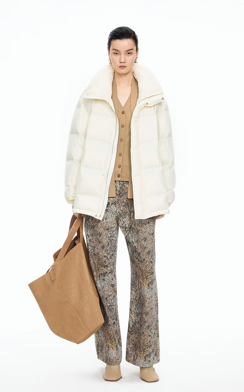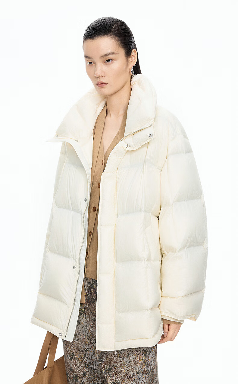 Jiangnan Buyi (JNBY) Black and Small Square Winter Style Stand Collar Down Jacket Loose Thickened White Duck Down Jacket Mid-Length 5OAC1027A