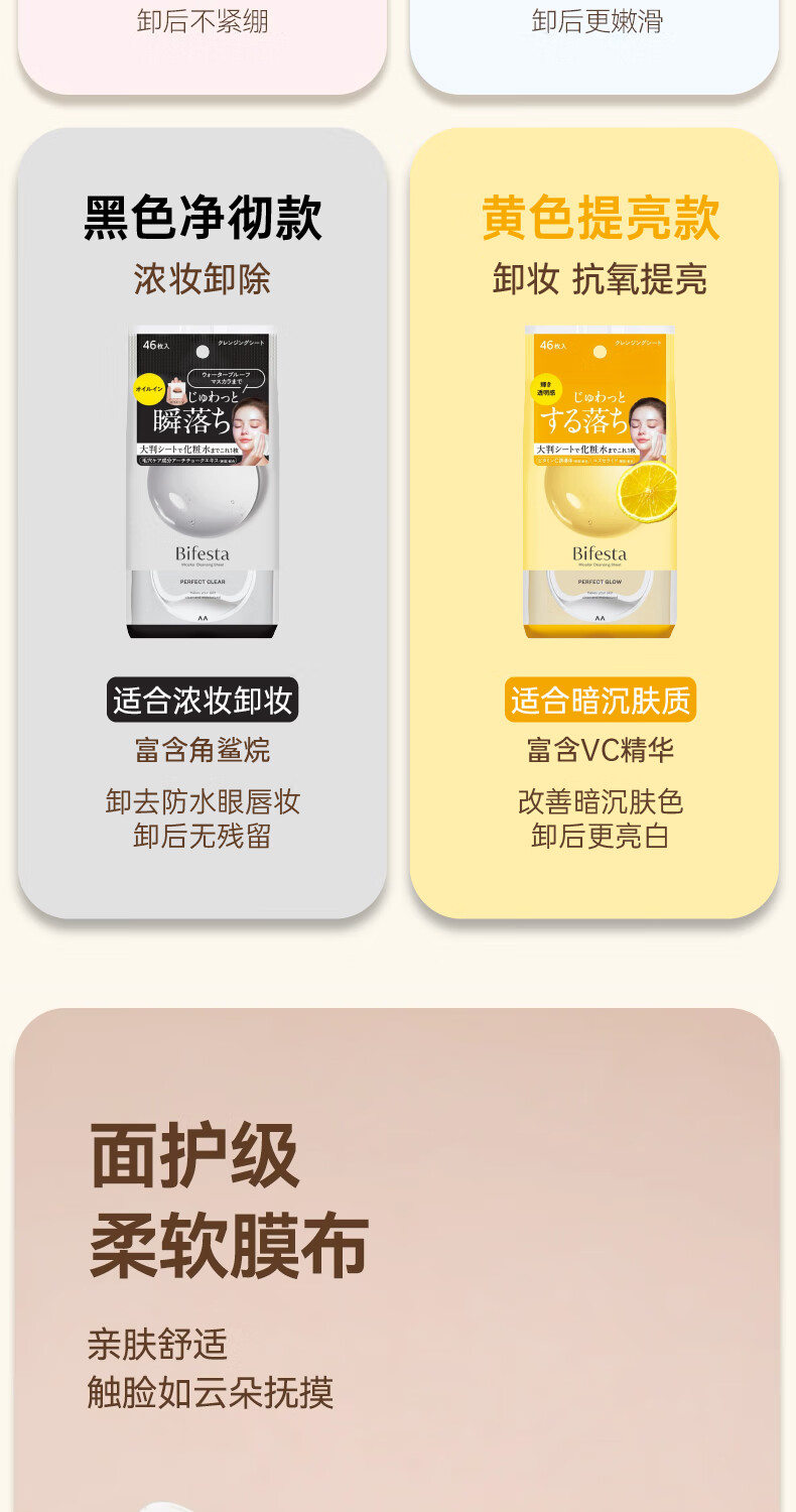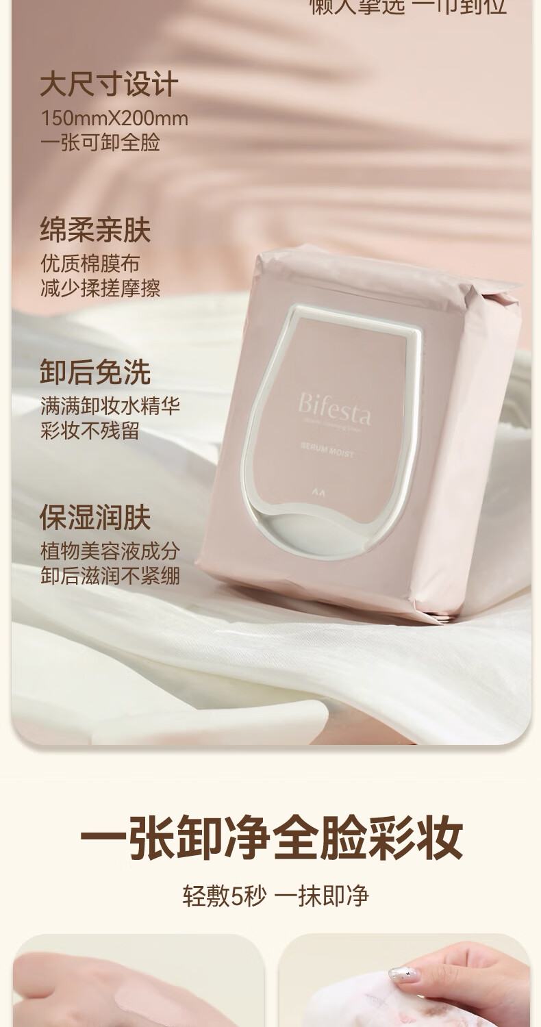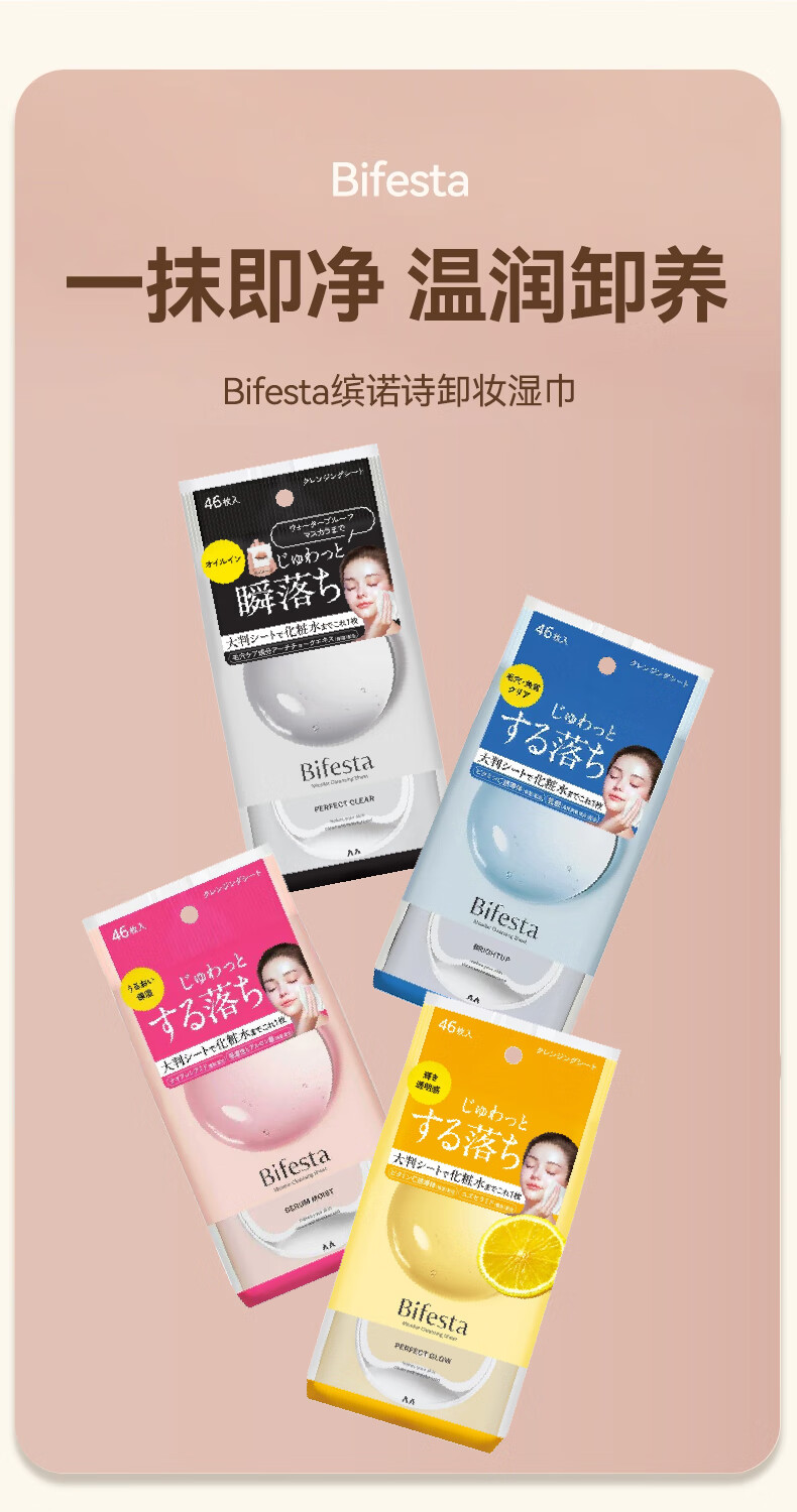 Binruoshi Moisturizing Makeup Remover Wipes 46 pieces for face gentle deep cleansing cuticle refreshing moisturizing brightening non-irritating gift