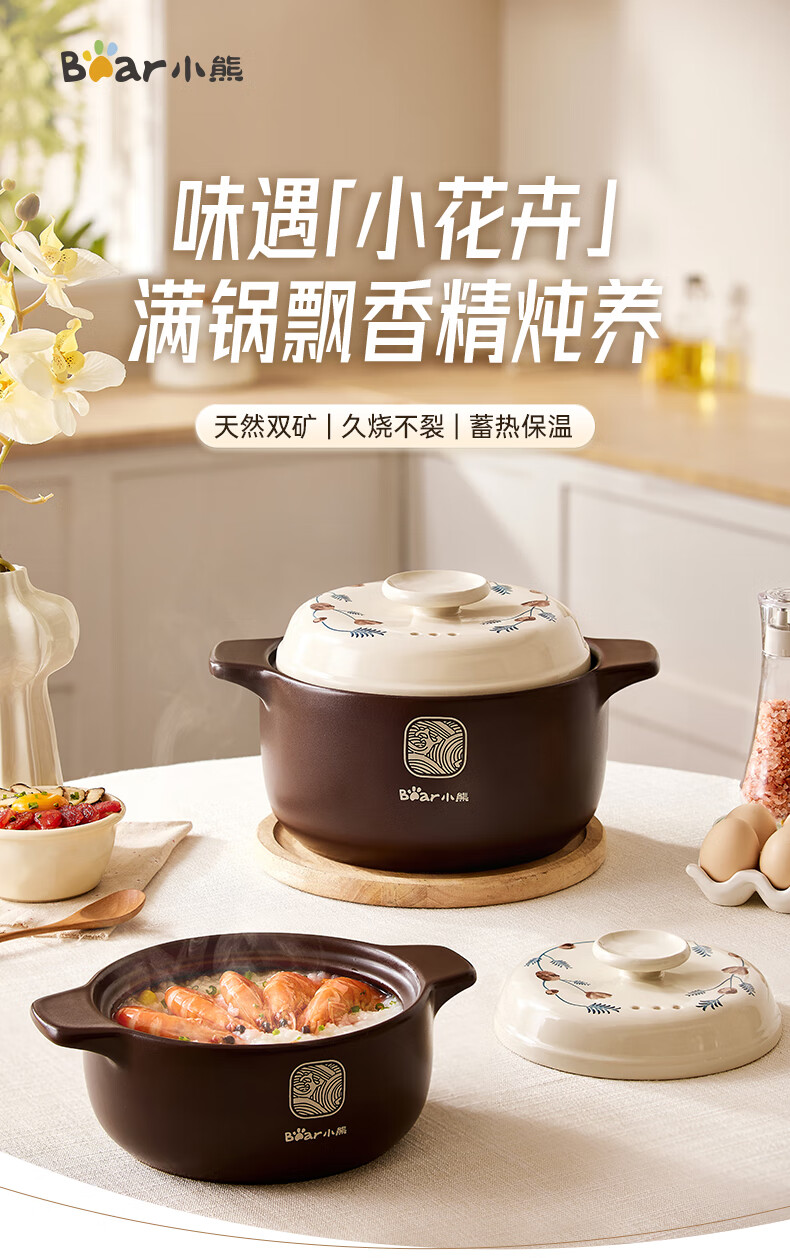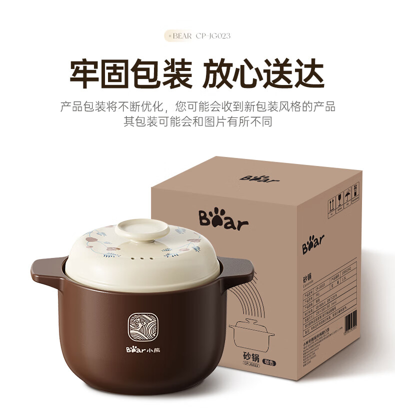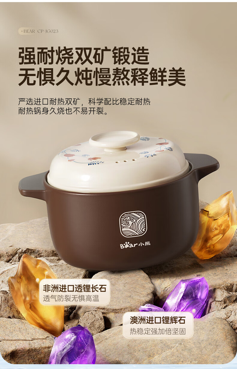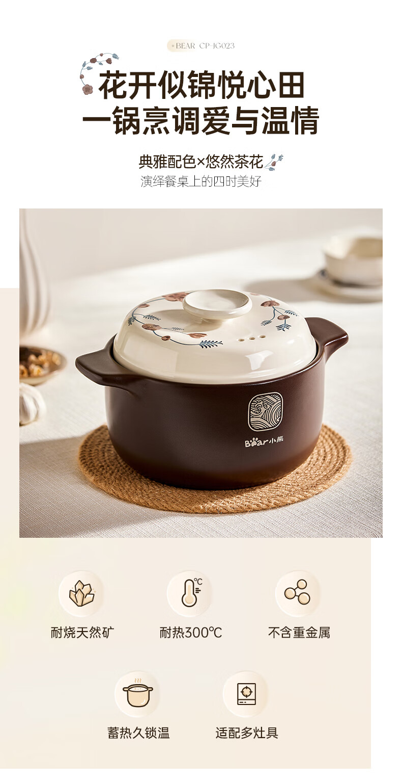 Bear casserole, soup pot, high temperature resistant and non-cracking, 3.5L universal casserole, wide mouth stew pot, ceramic pot JG023-P03