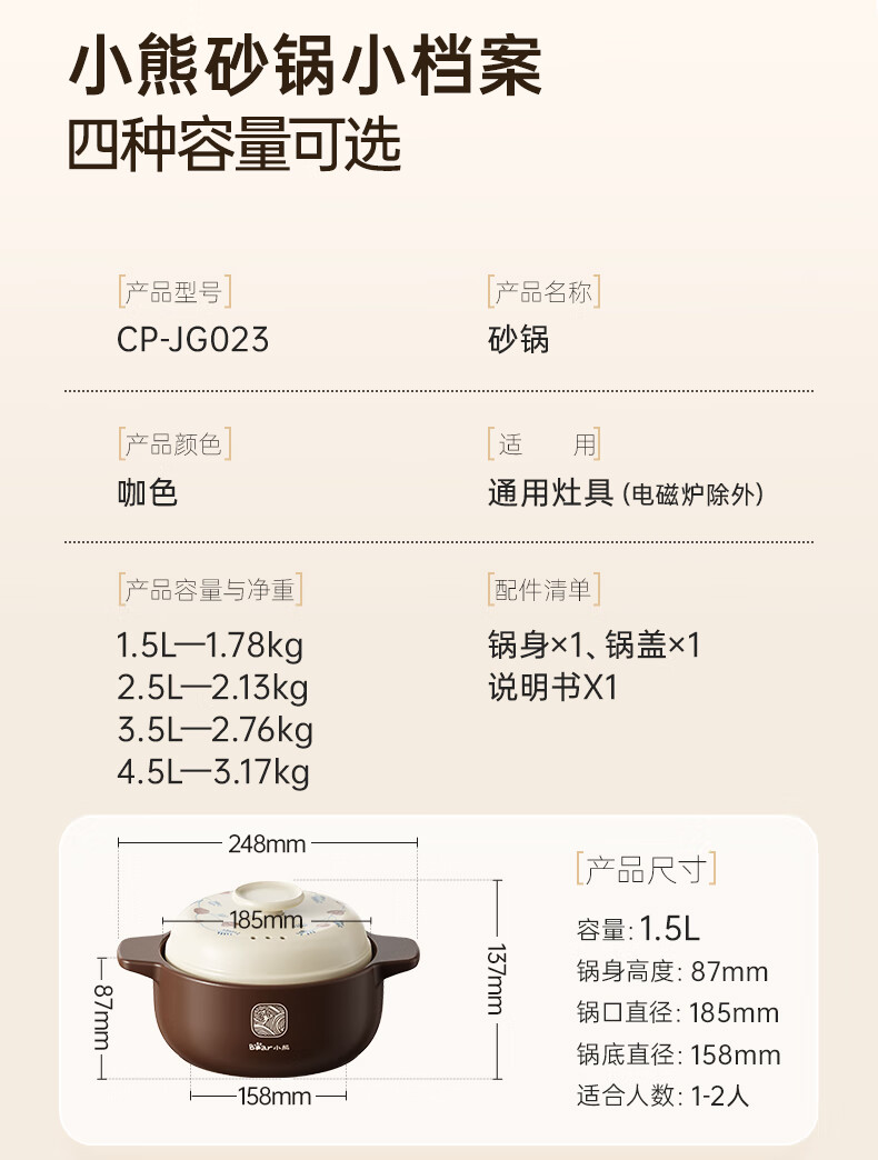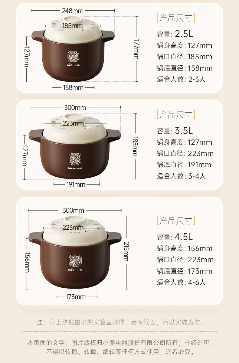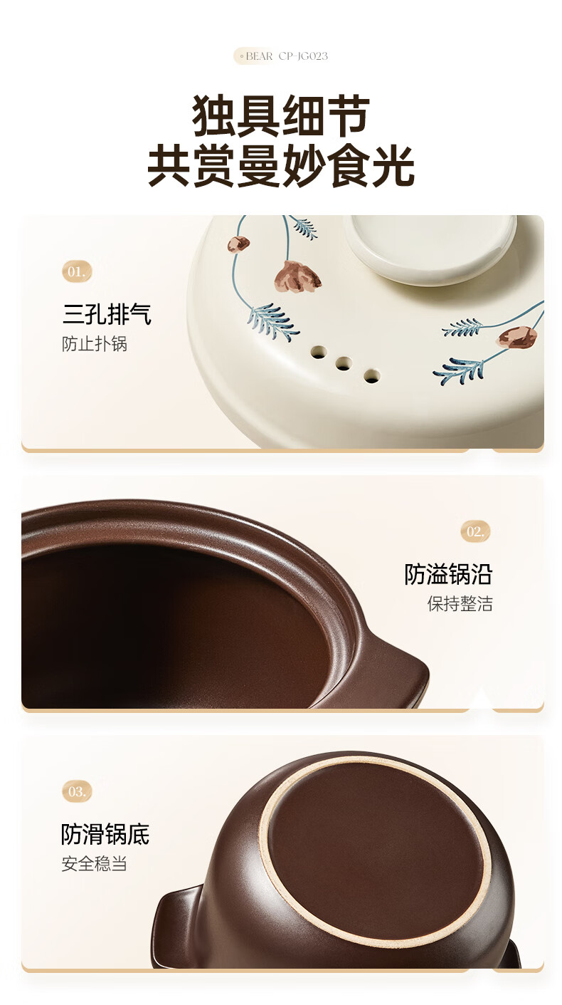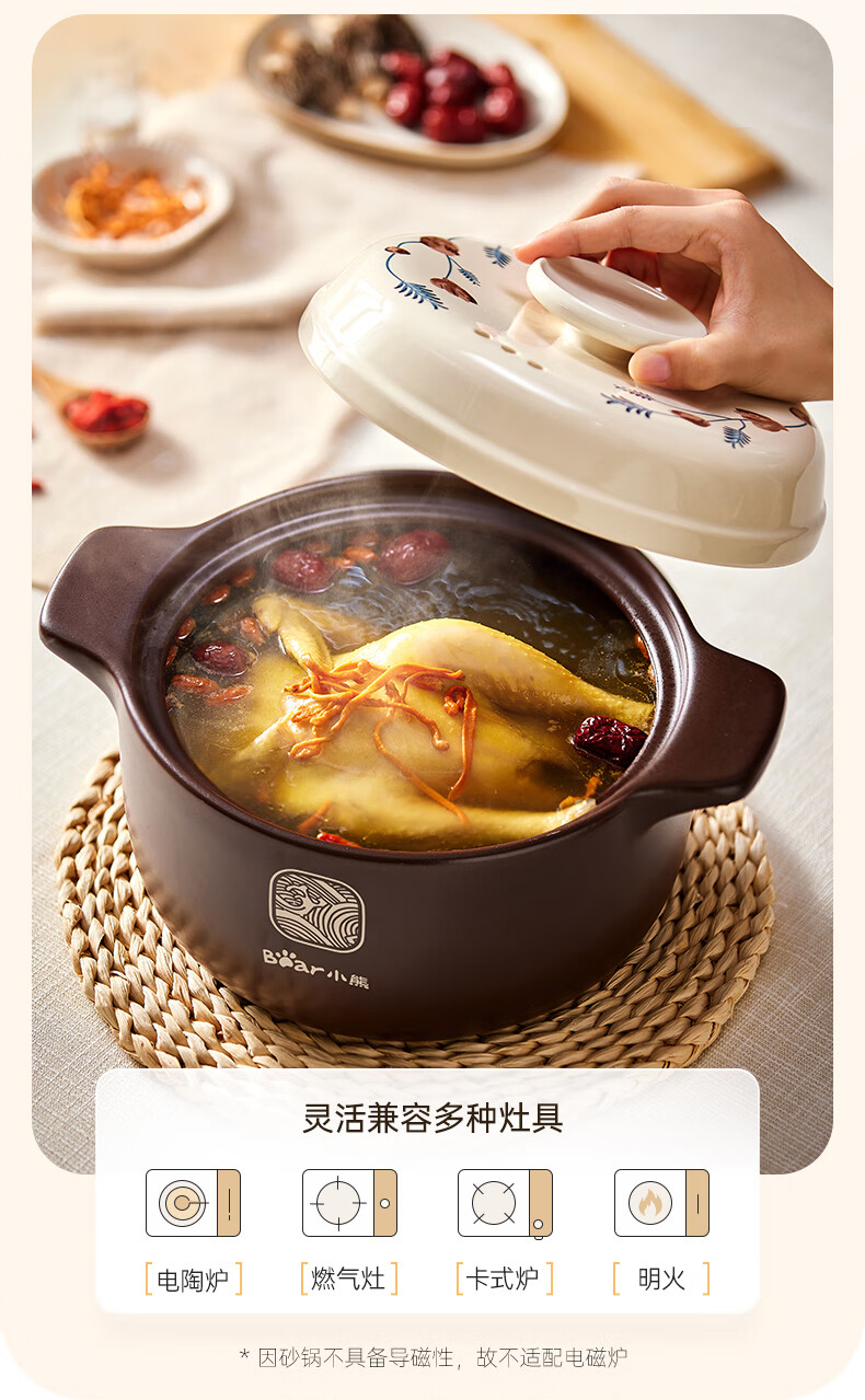 Bear casserole, soup pot, high temperature resistant and non-cracking, 3.5L universal casserole, wide mouth stew pot, ceramic pot JG023-P03