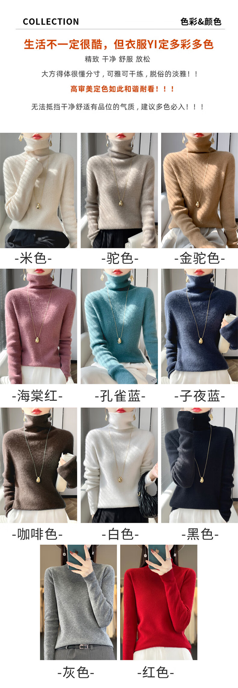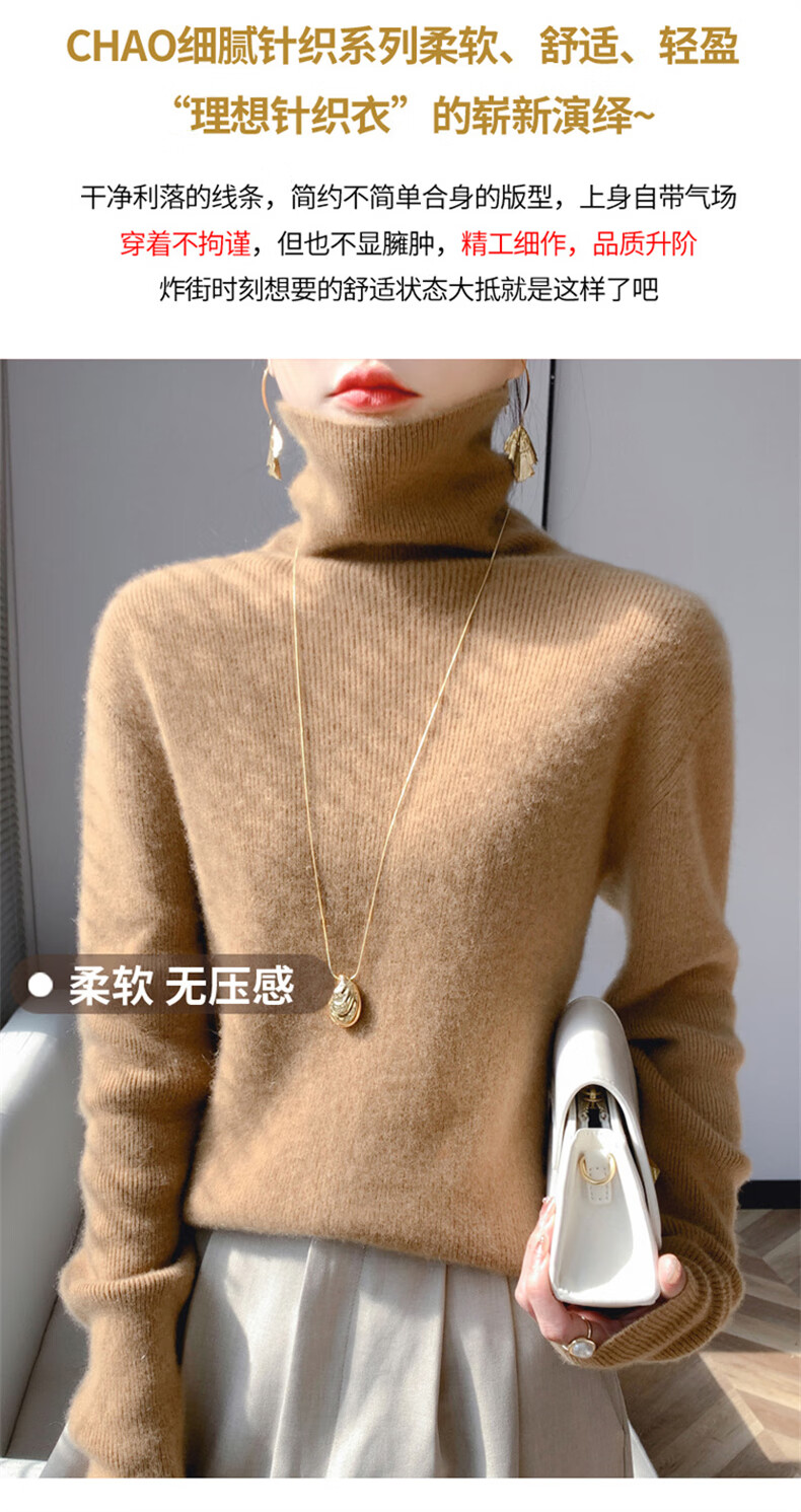Langsha Turtleneck Wool Sweater Women's 2025 Autumn and Winter New Loose Pile Collar Sweater with Bottoming Warm Top
