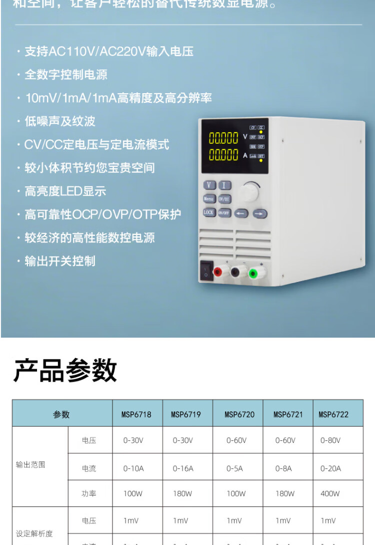 MAINS MSP6722 programmable DC regulated power supply 80/20/400W CNC switching type