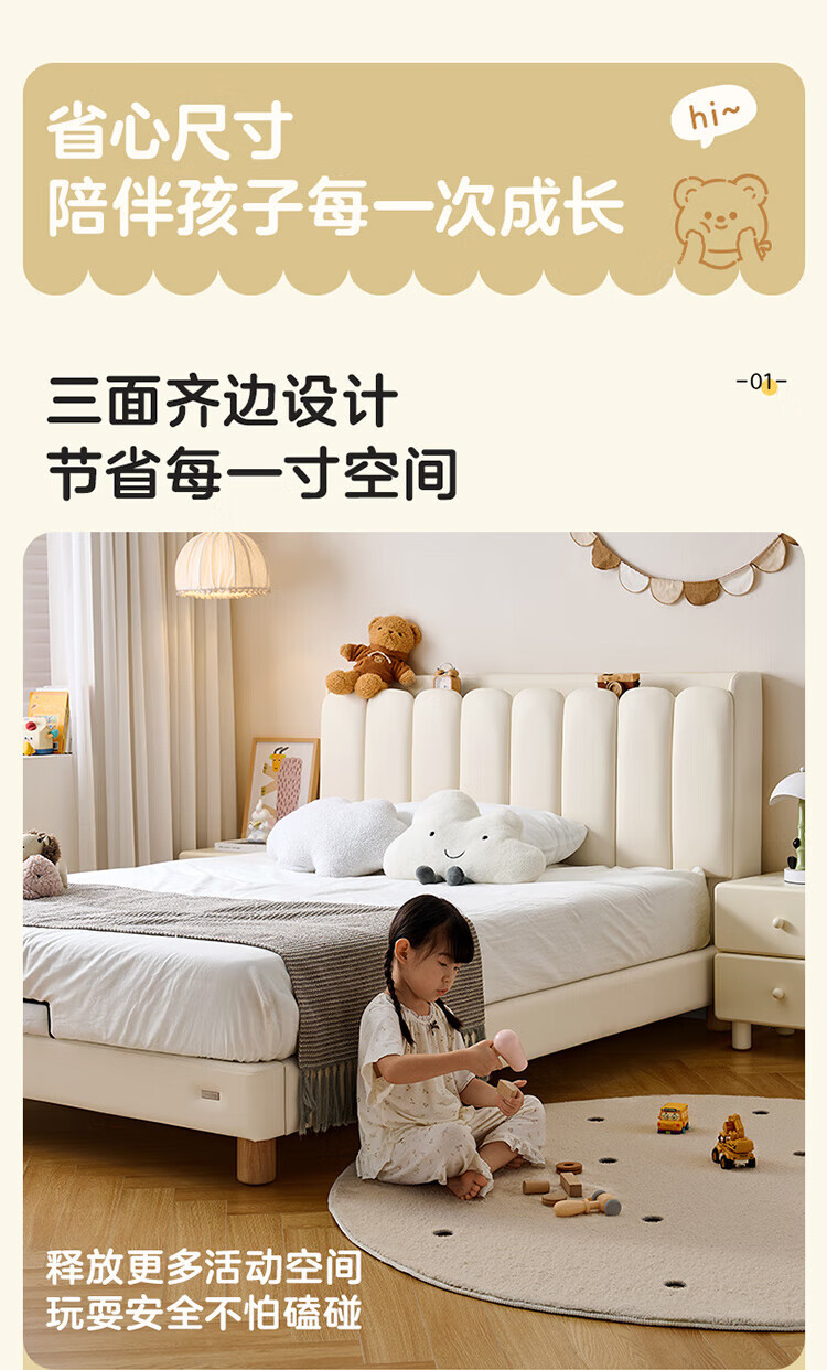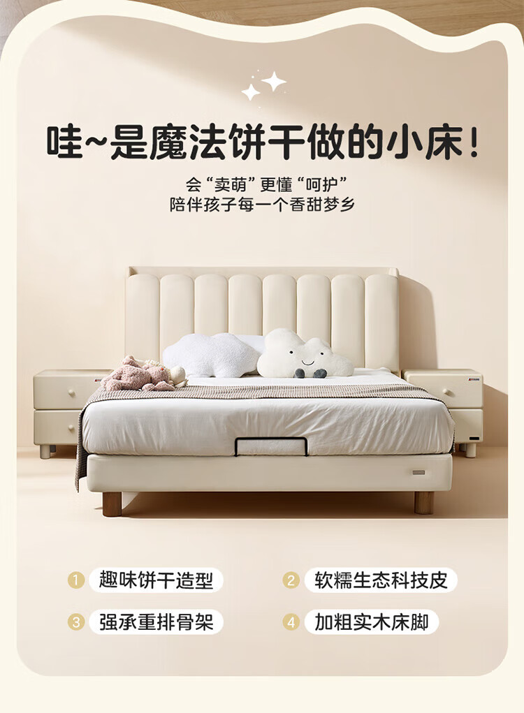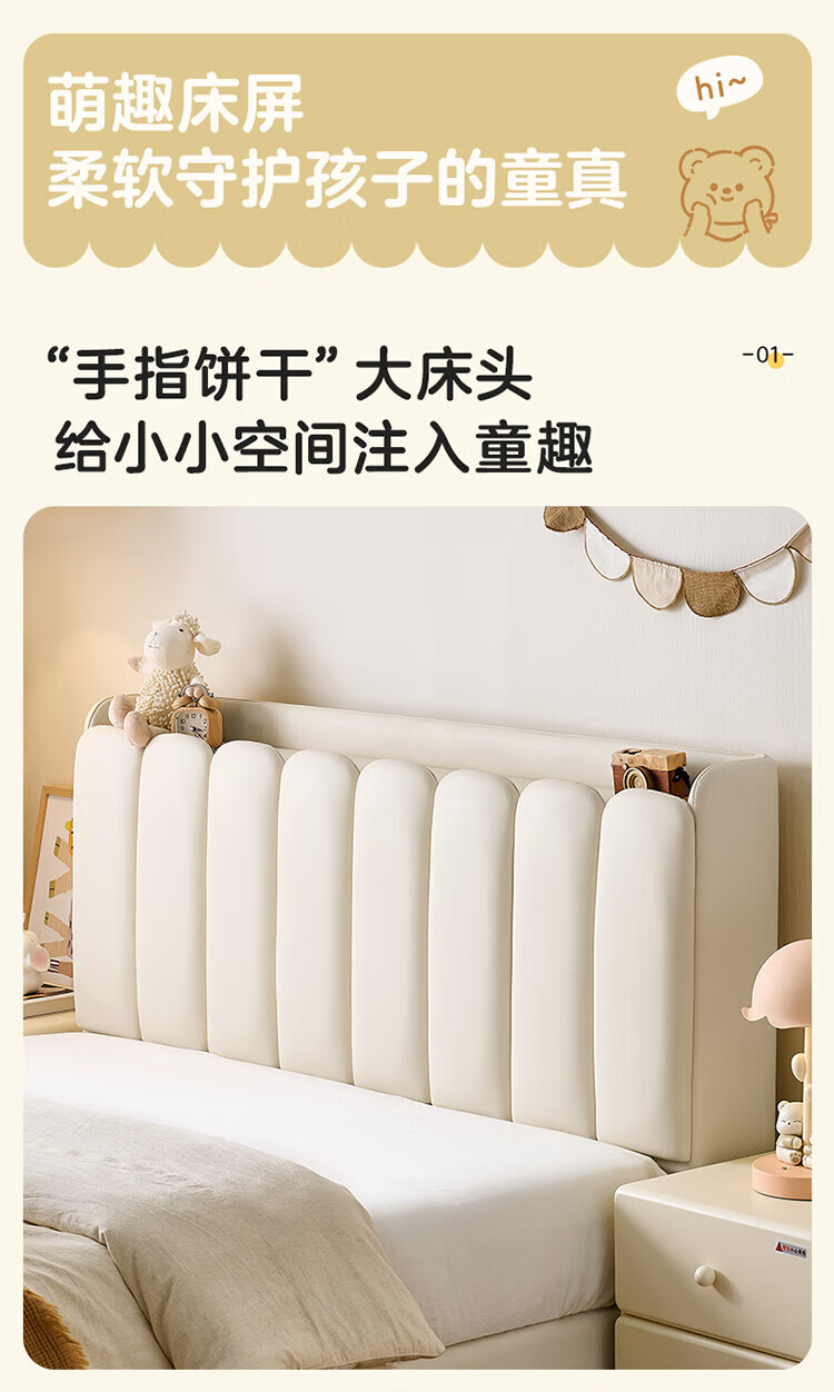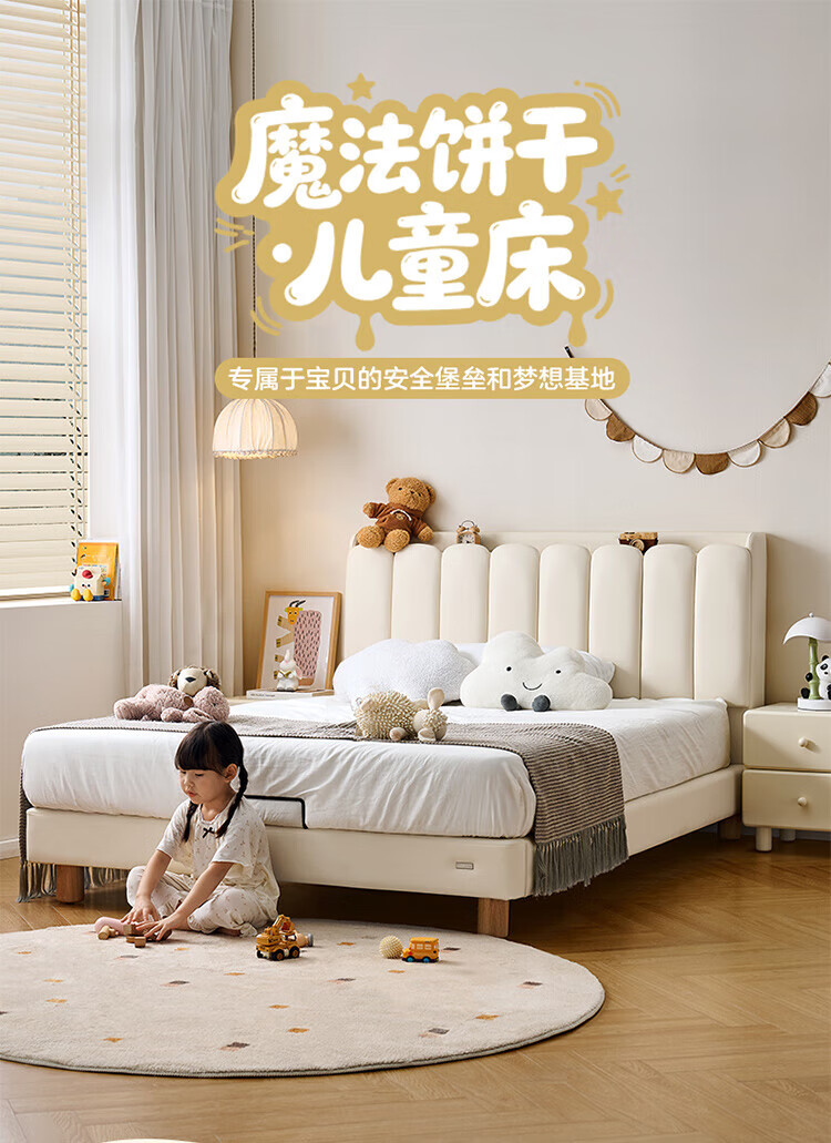 Quanyou Home Magic Biscuit Children's Leather Bed Boys and Girls Small Bed Children's Room Soft Bed Bed Simple Soft and Skin Friendly