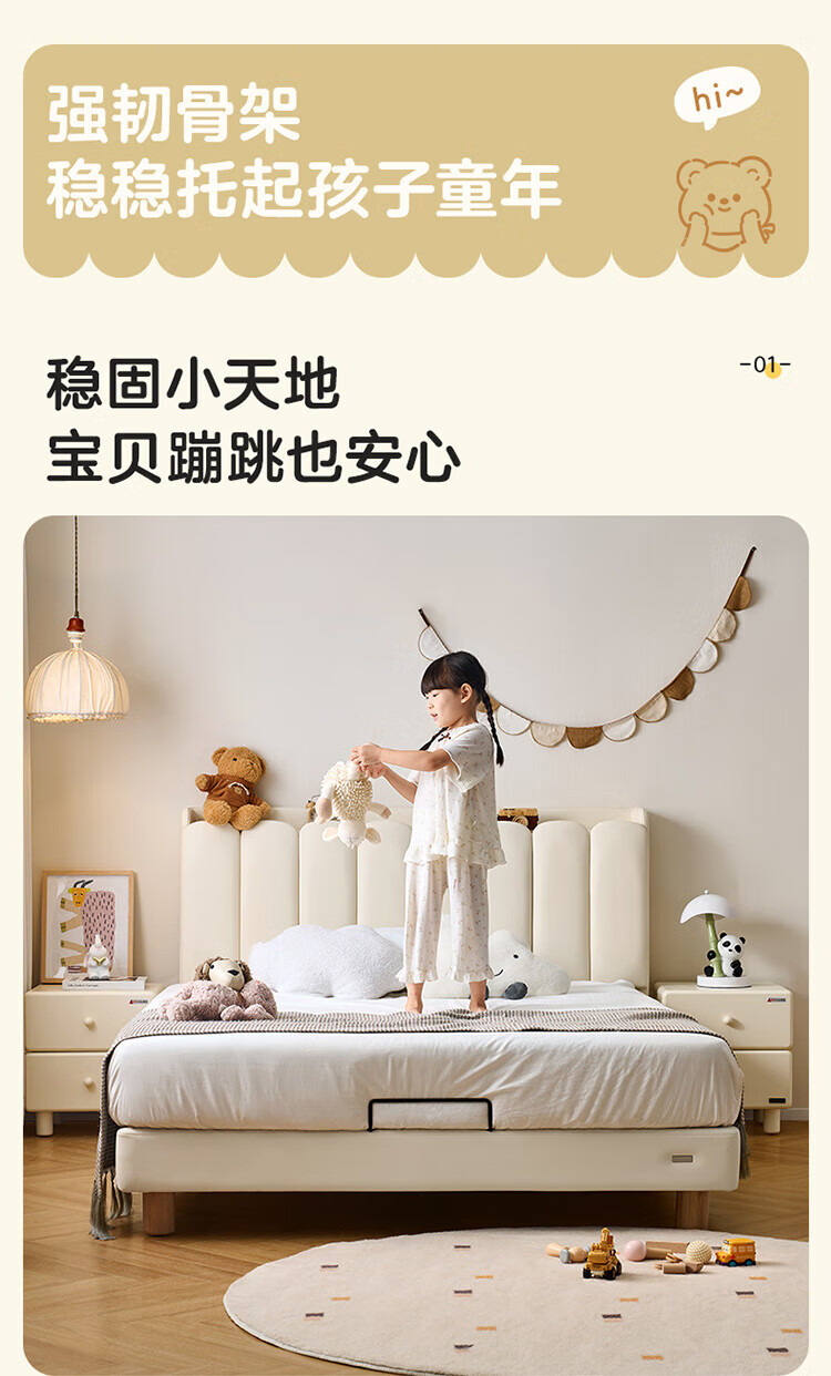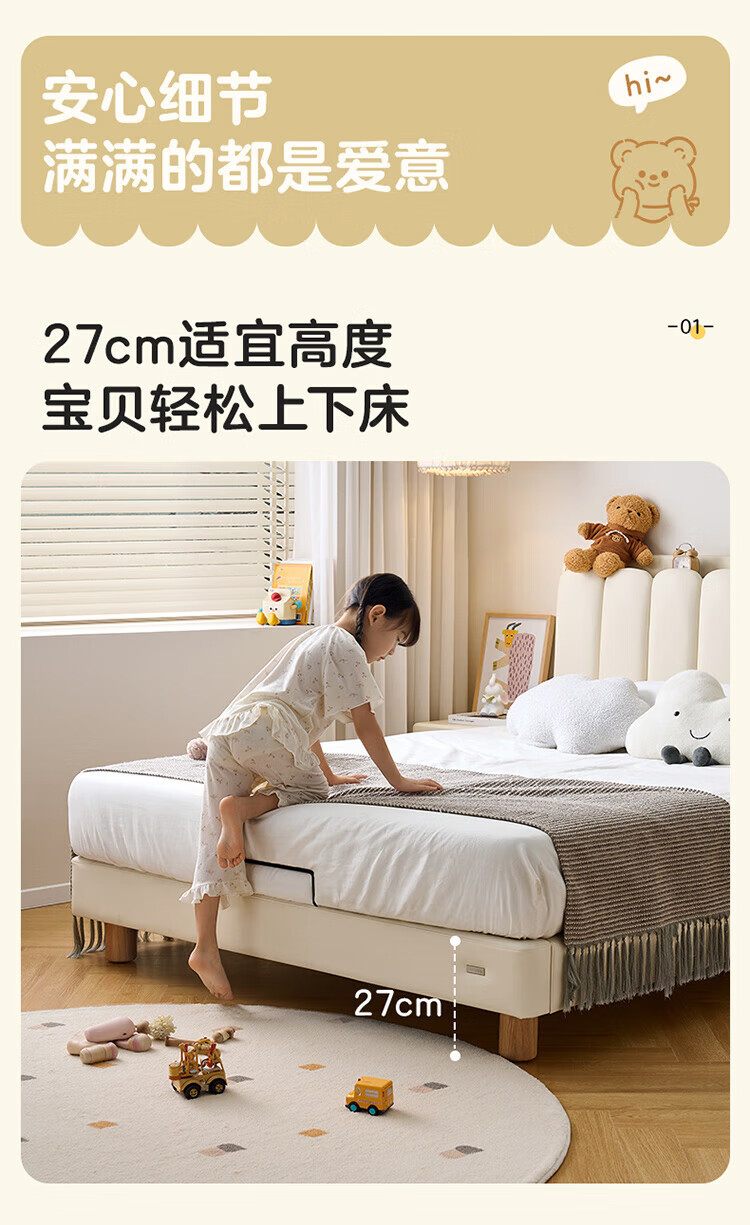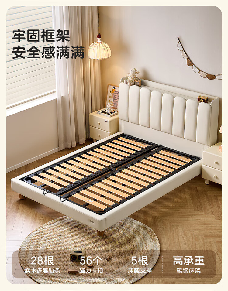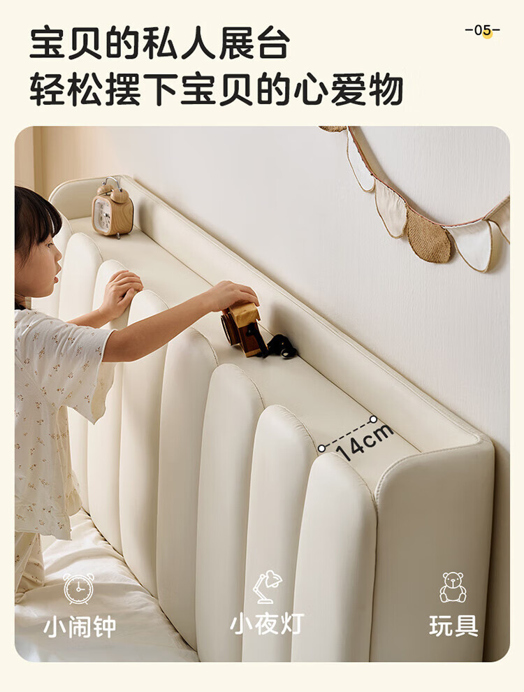 Quanyou Home Magic Biscuit Children's Leather Bed Boys and Girls Small Bed Children's Room Soft Bed Bed Simple Soft and Skin Friendly