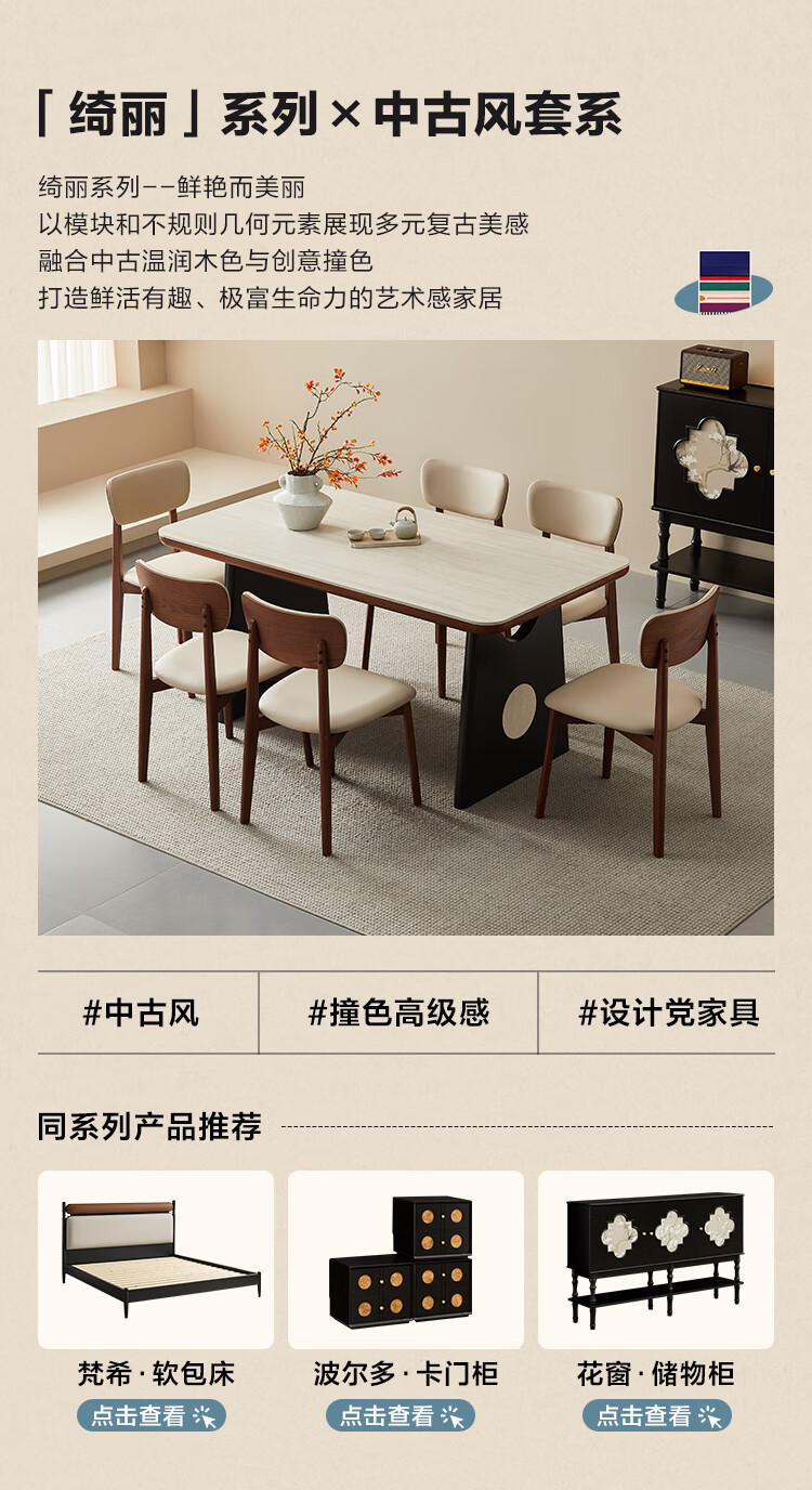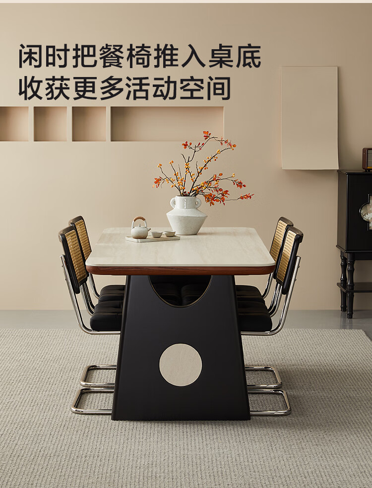 Quanyou Furniture Medieval style slate dining table and chair combination guest restaurant rectangular table small apartment high-end dining table