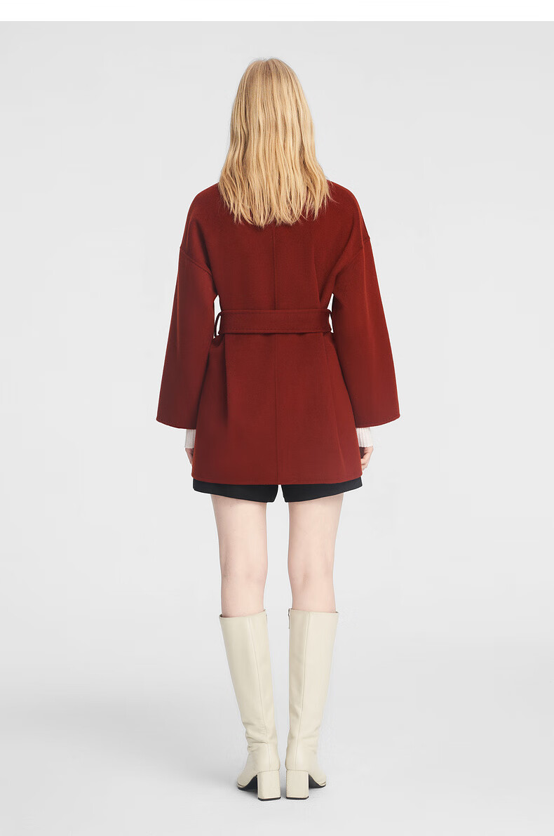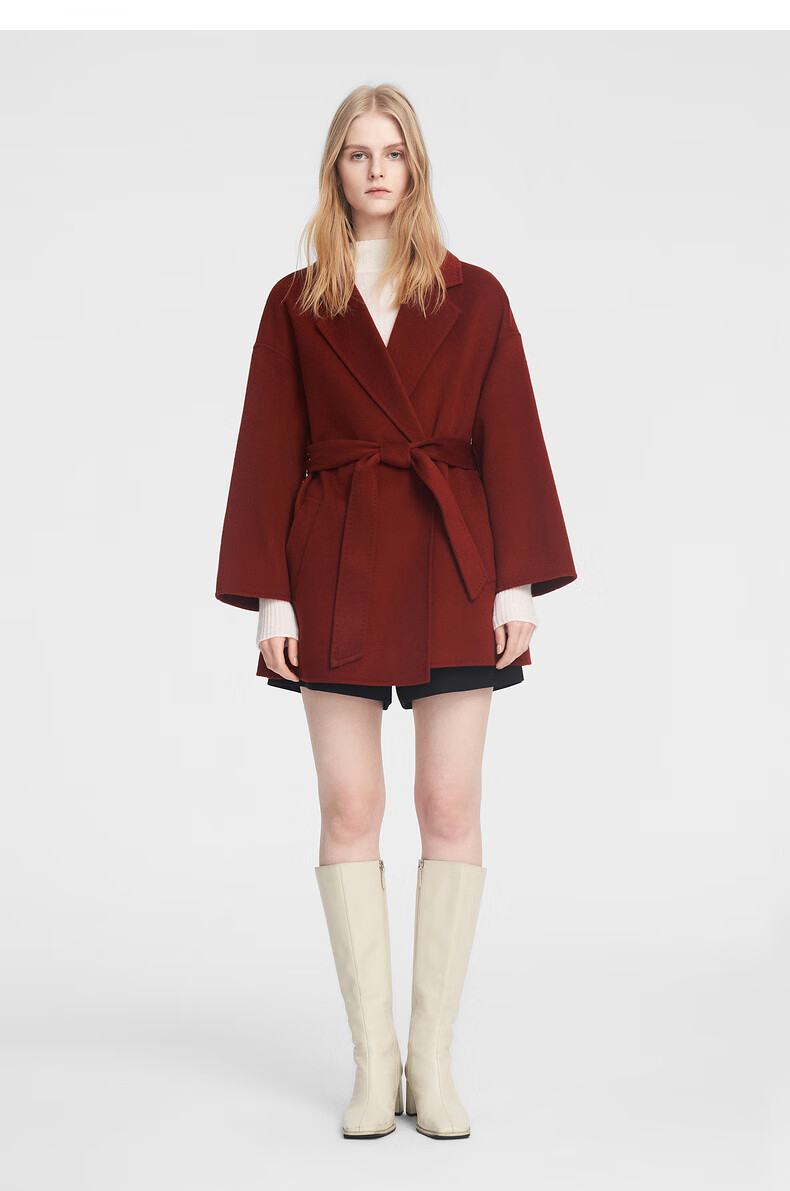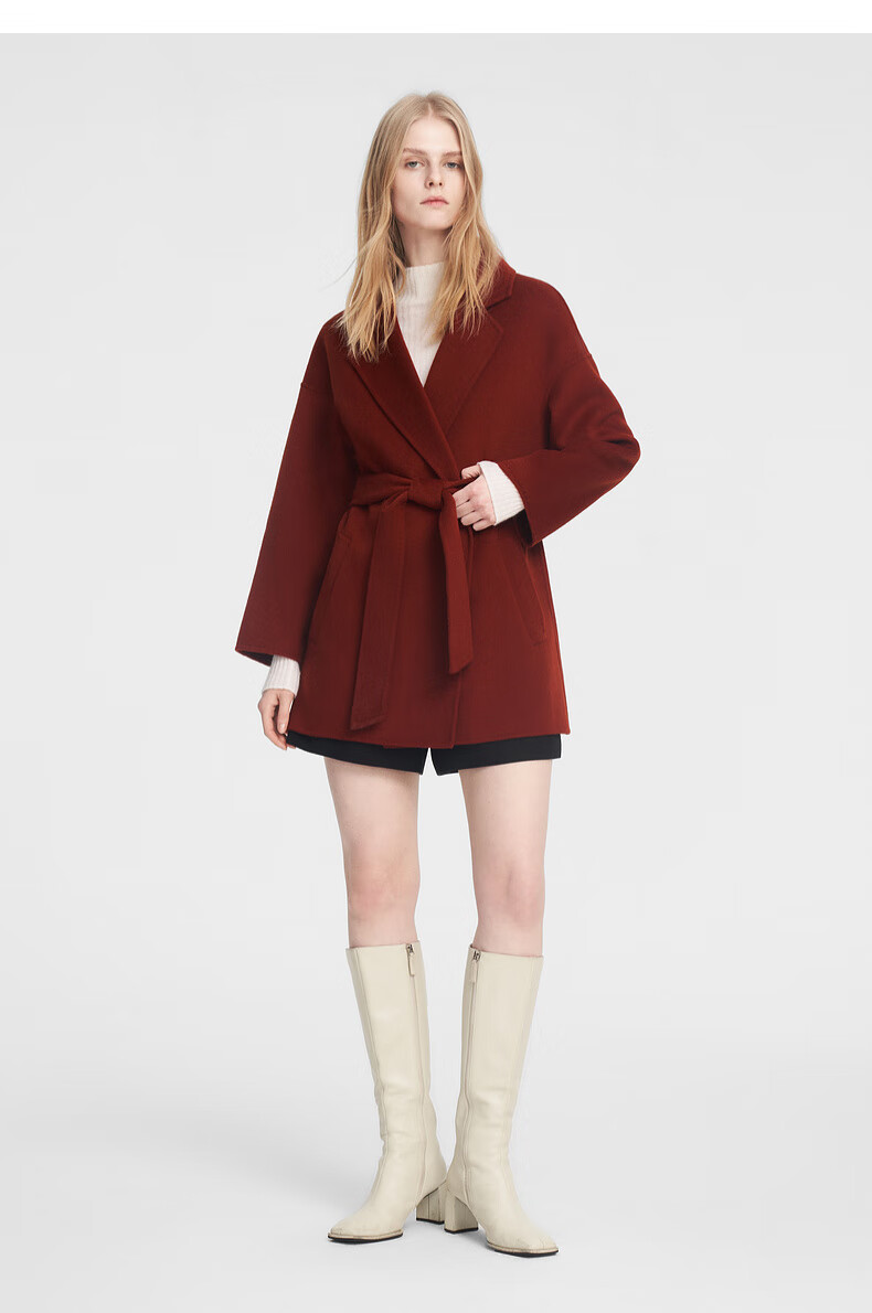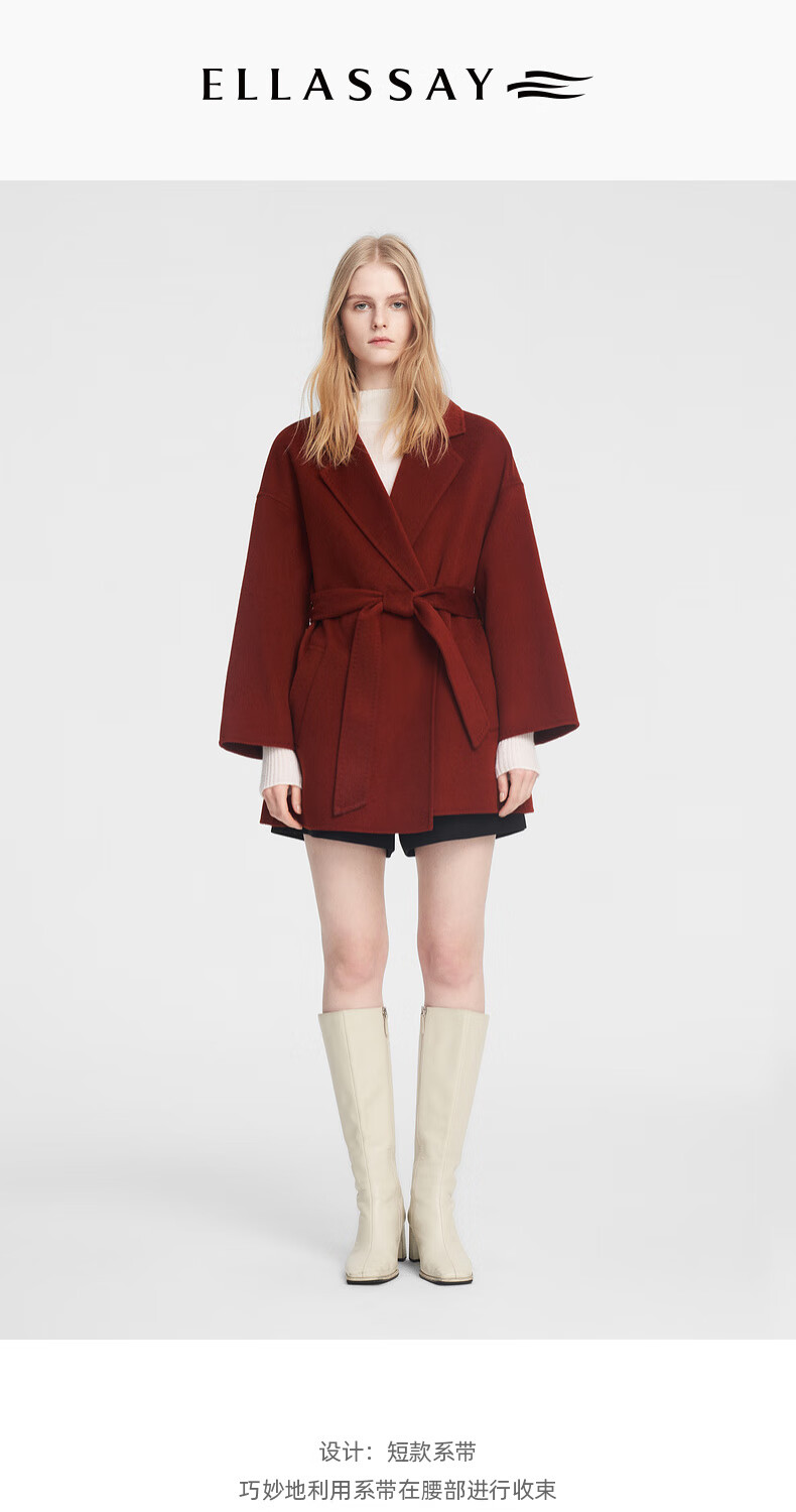 ELLASSAY autumn and winter new style sheep wool elegant temperament lace-up waist suit collar woolen coat for women EWB354D00500