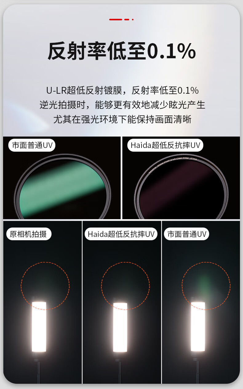 Haida Haida's new UV mirror 67mm filter NanoPro U-LR 1% refractive index 99.9% light transmittance 52-layer nano-coated protective mirror SLR micro-single suitable for Nikon and Sony