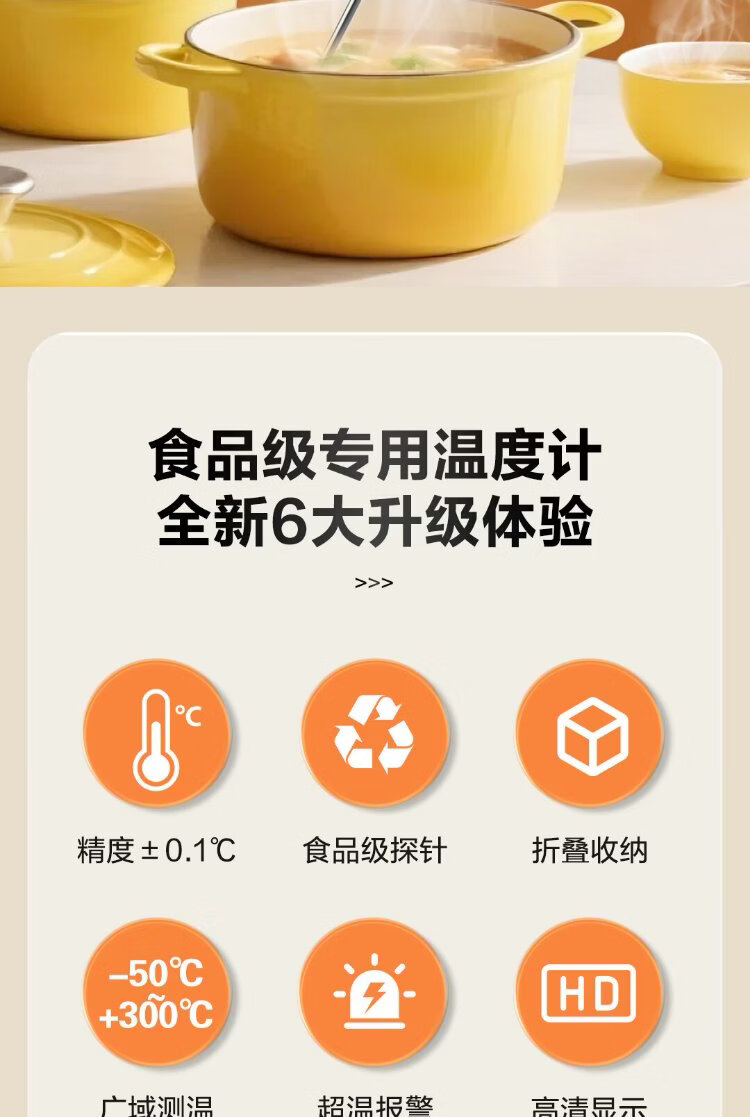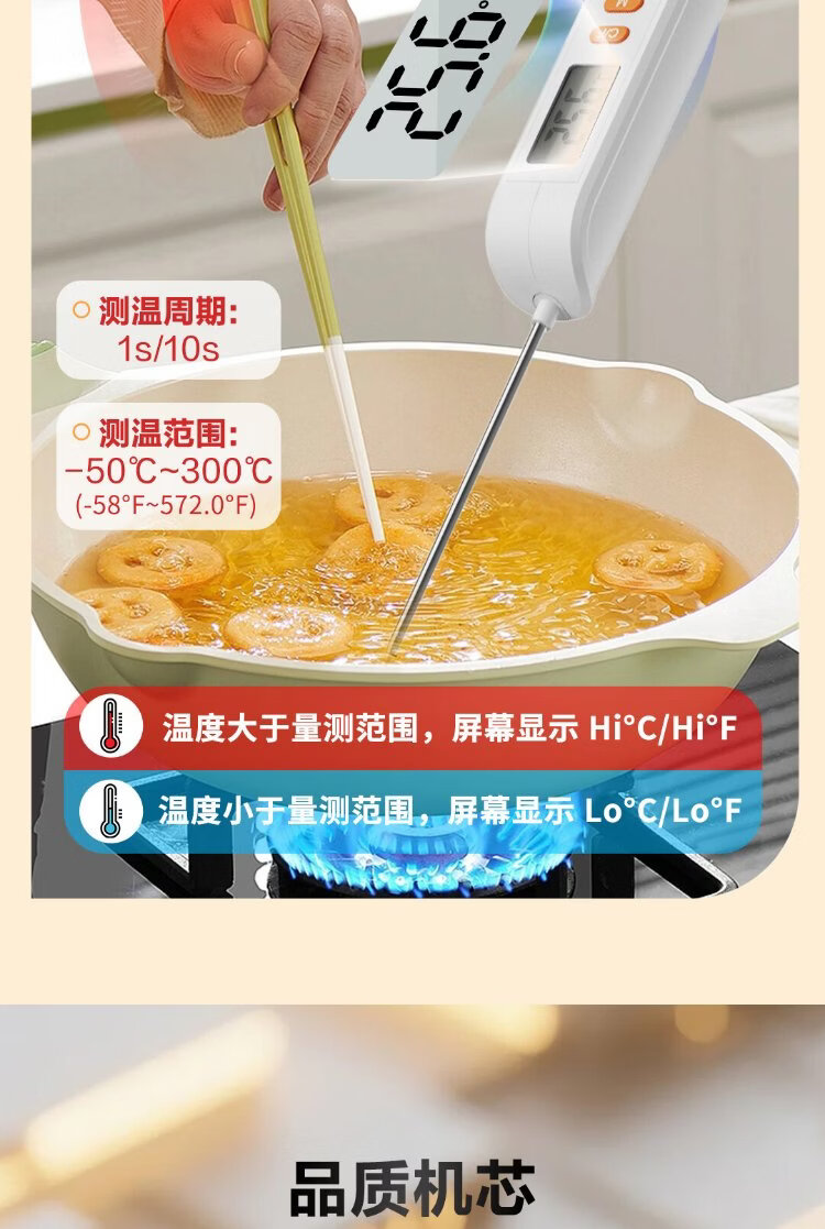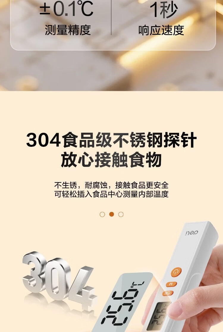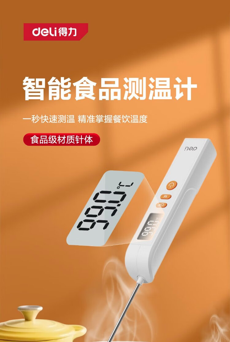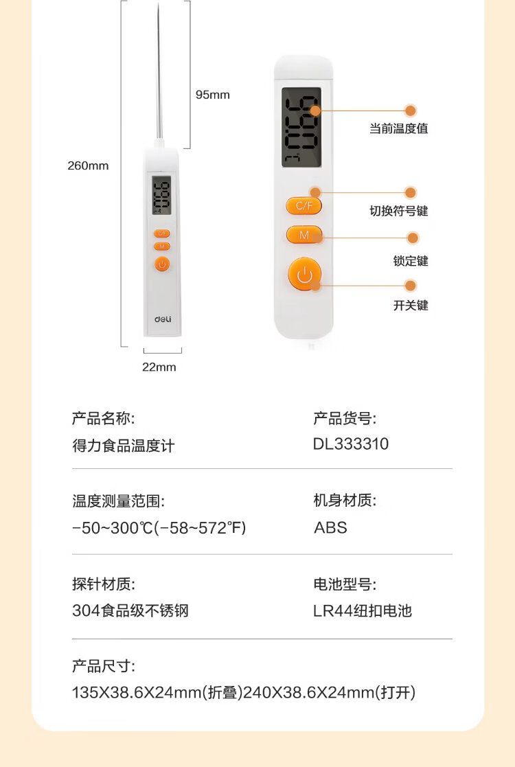 Deli Food Thermometer Thermometer Thermometer Gun Stainless Steel High-Precision Probe Contact Foldable Kitchen Baking